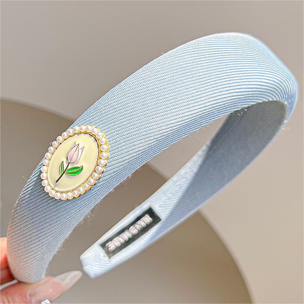小清新发箍蓝白高颅顶压发头箍时尚百搭格纹发卡子洗脸防滑头饰女