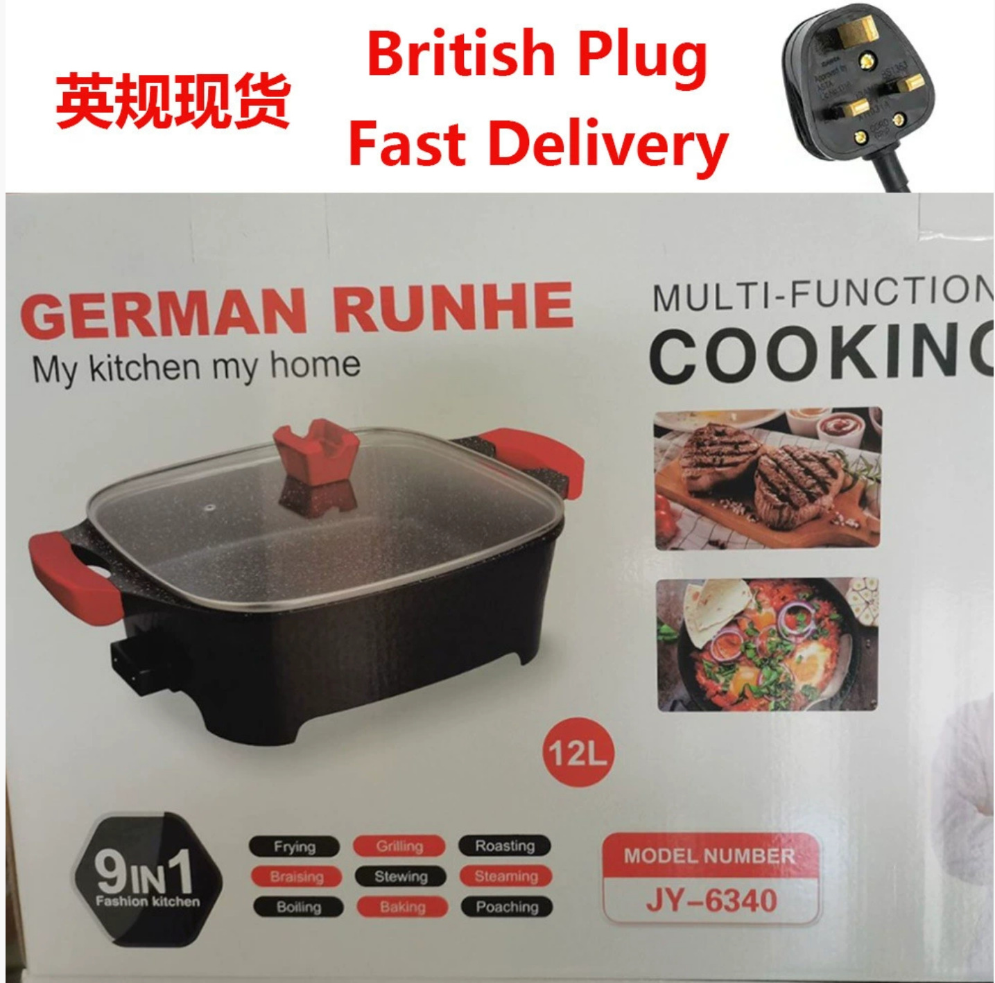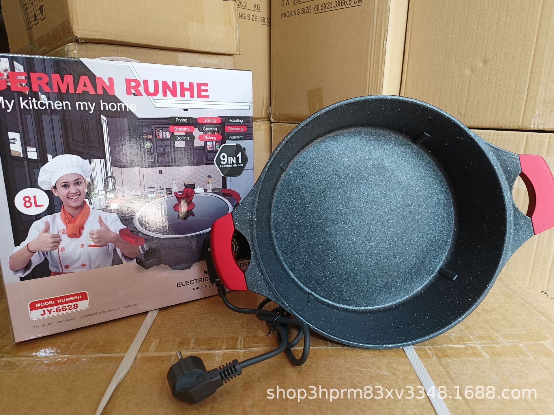 跨境欧规插头出口高质量家用商用多功能铝合金真麦饭石电火锅