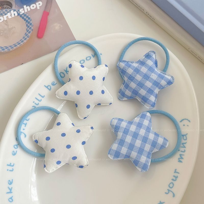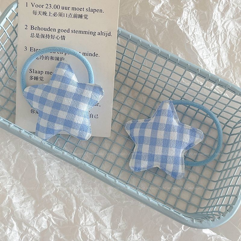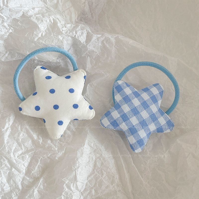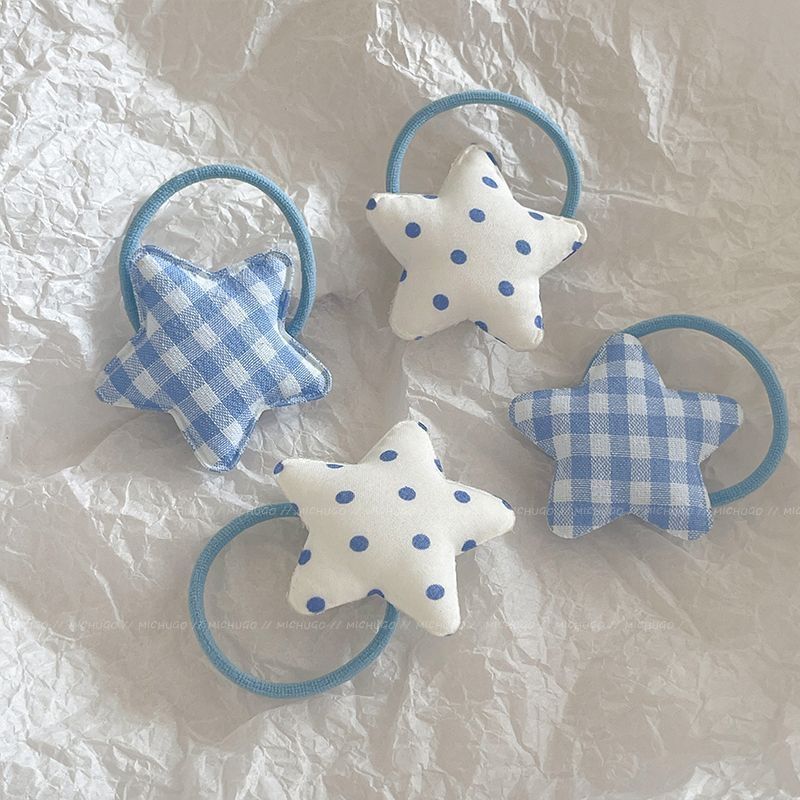 夏日清凉~格纹波点星星发绳小清新高弹力耐用橡皮筋少女甜美发饰