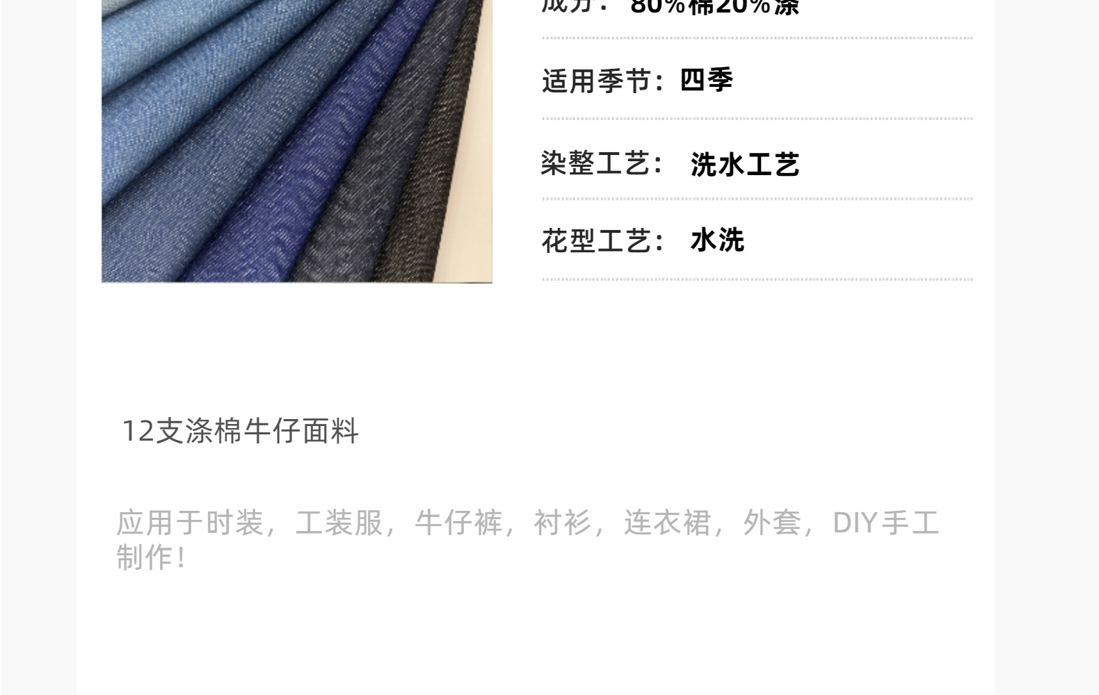现货10×10支涤棉洗水牛仔面料 290G斜纹多色可选 裤装外套牛仔布