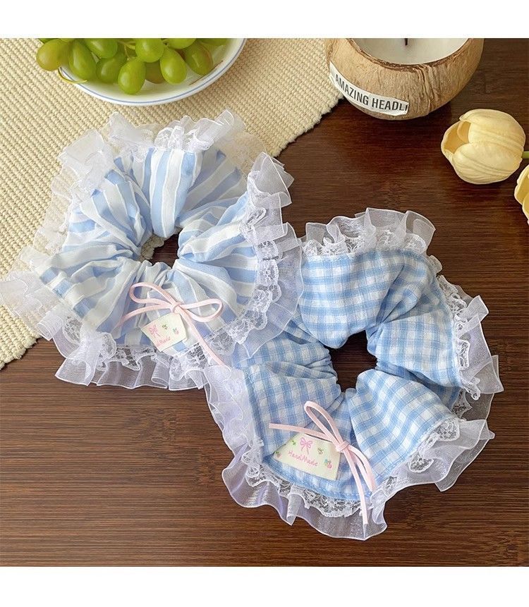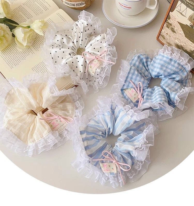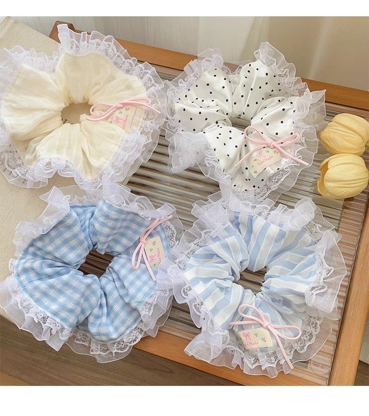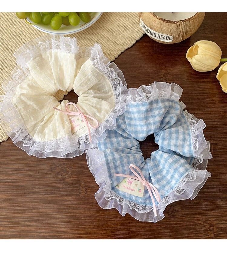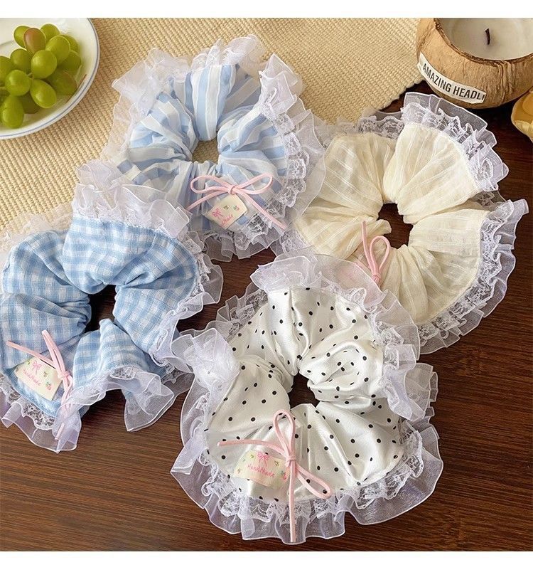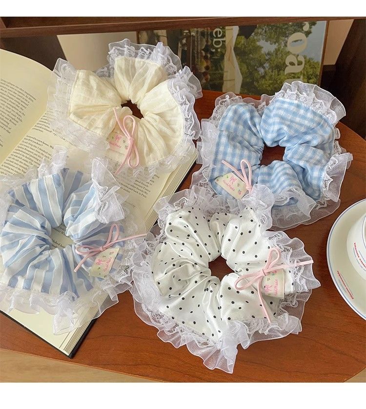 法式蕾丝花边蝴蝶结大肠发圈女扎头发绳甜美少女头绳皮筋发饰甜妹
