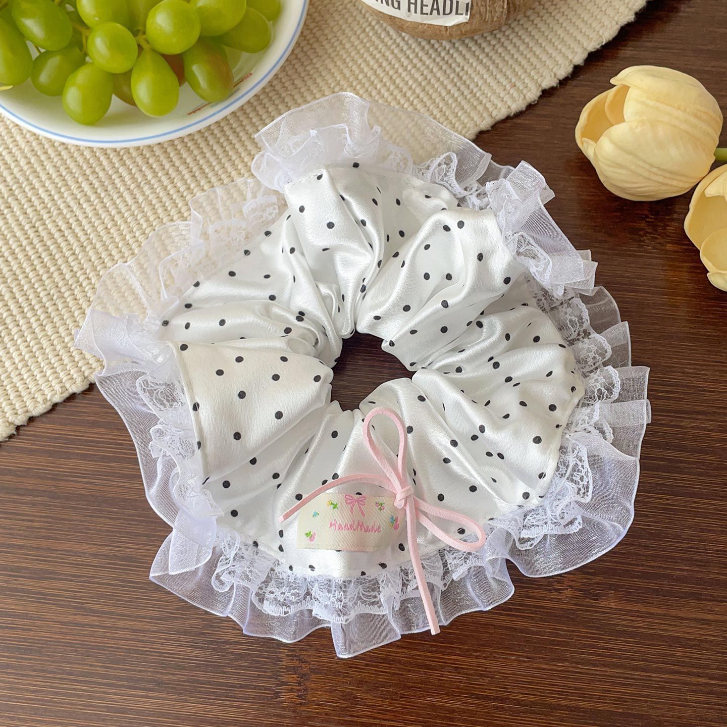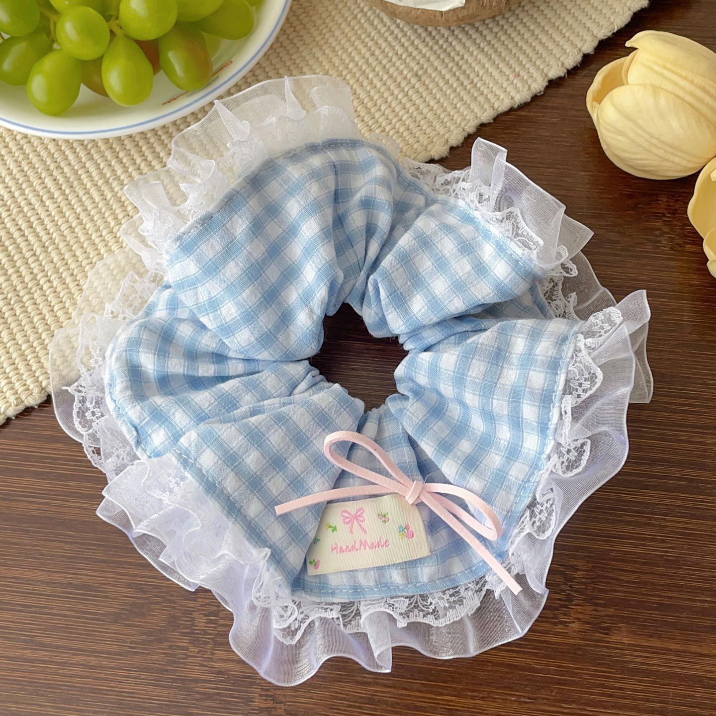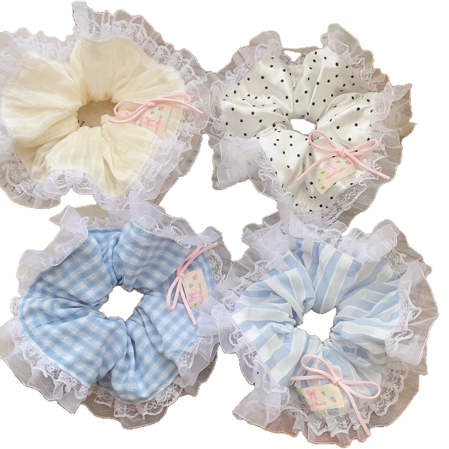 法式蕾丝花边蝴蝶结大肠发圈女扎头发绳甜美少女头绳皮筋发饰甜妹