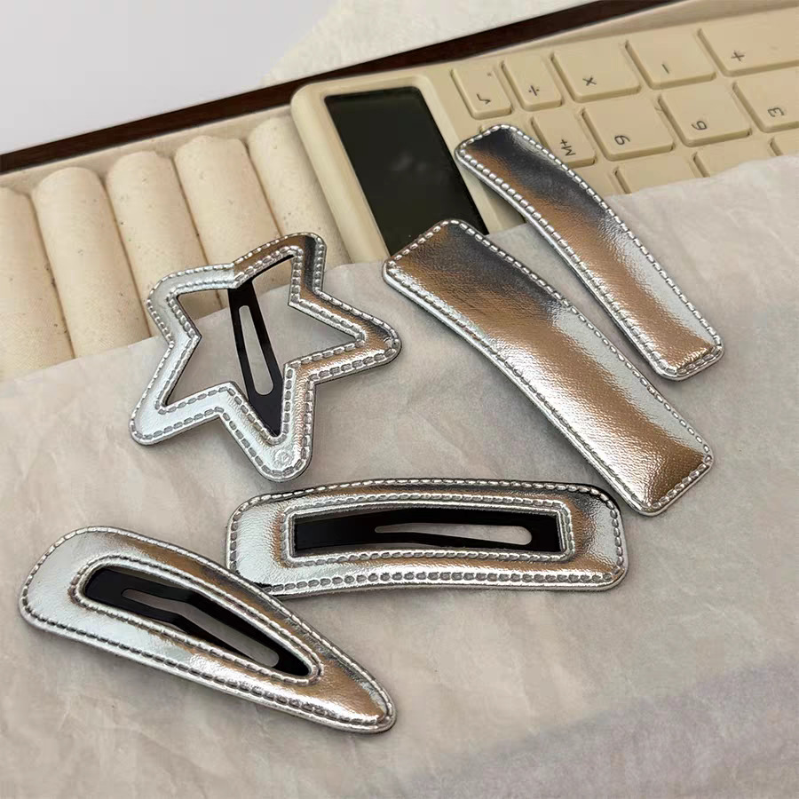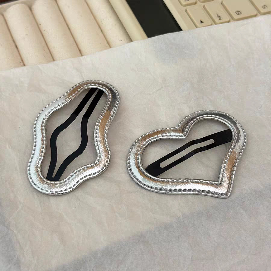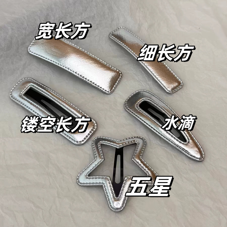 韩国银色云朵皮质bb夹侧边夹边夹刘海夹百搭基础发夹发卡冷淡风