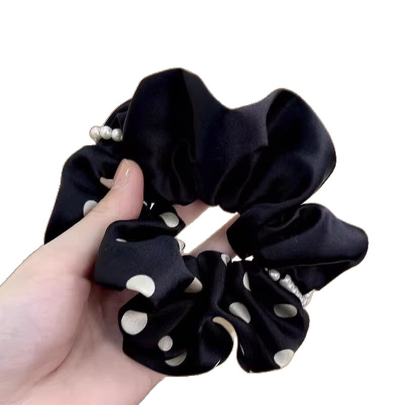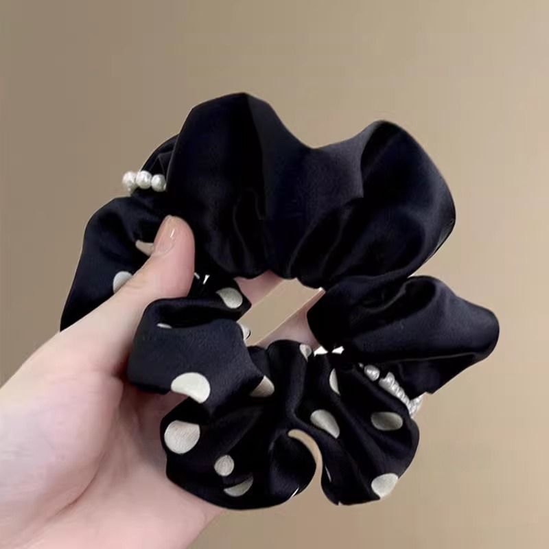 时尚撞色波点珍珠头花大肠发圈女高级感气质韩系丸子头发饰马尾发
