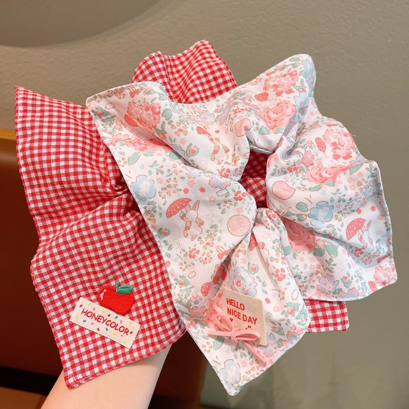 儿童碎花蝴蝶结格纹方巾发圈女童2025发绳蝴蝶结新款甜美公主头饰