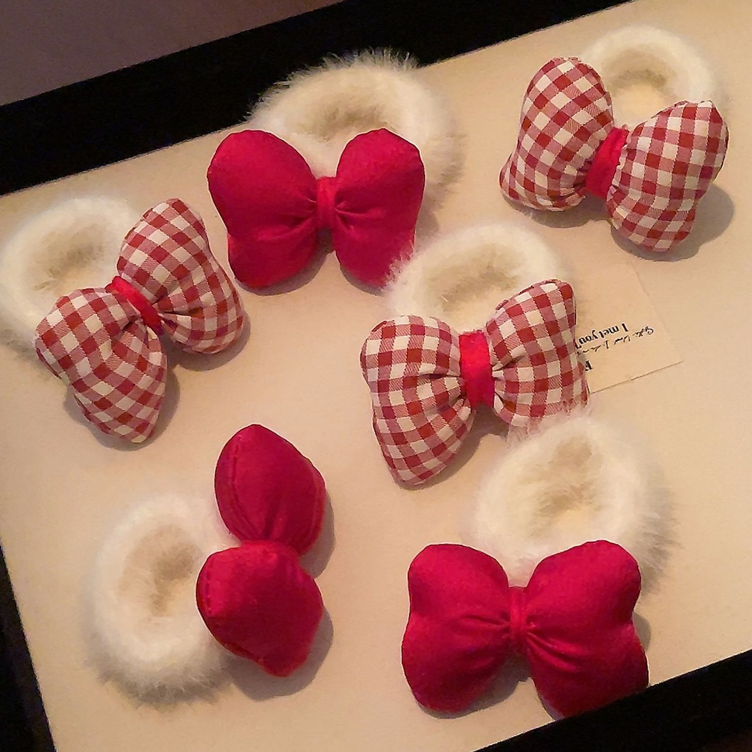 红色蝴蝶结毛绒发圈不伤发可爱高弹力女孩儿童头绳马尾辫公主皮筋