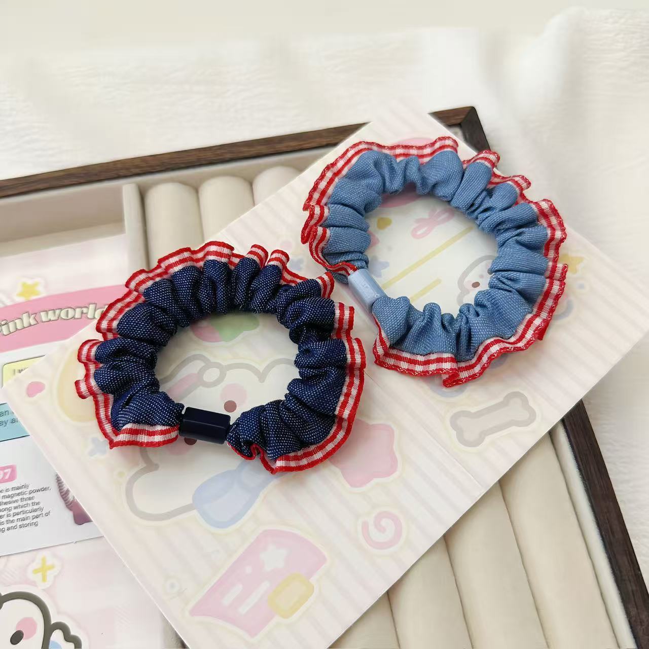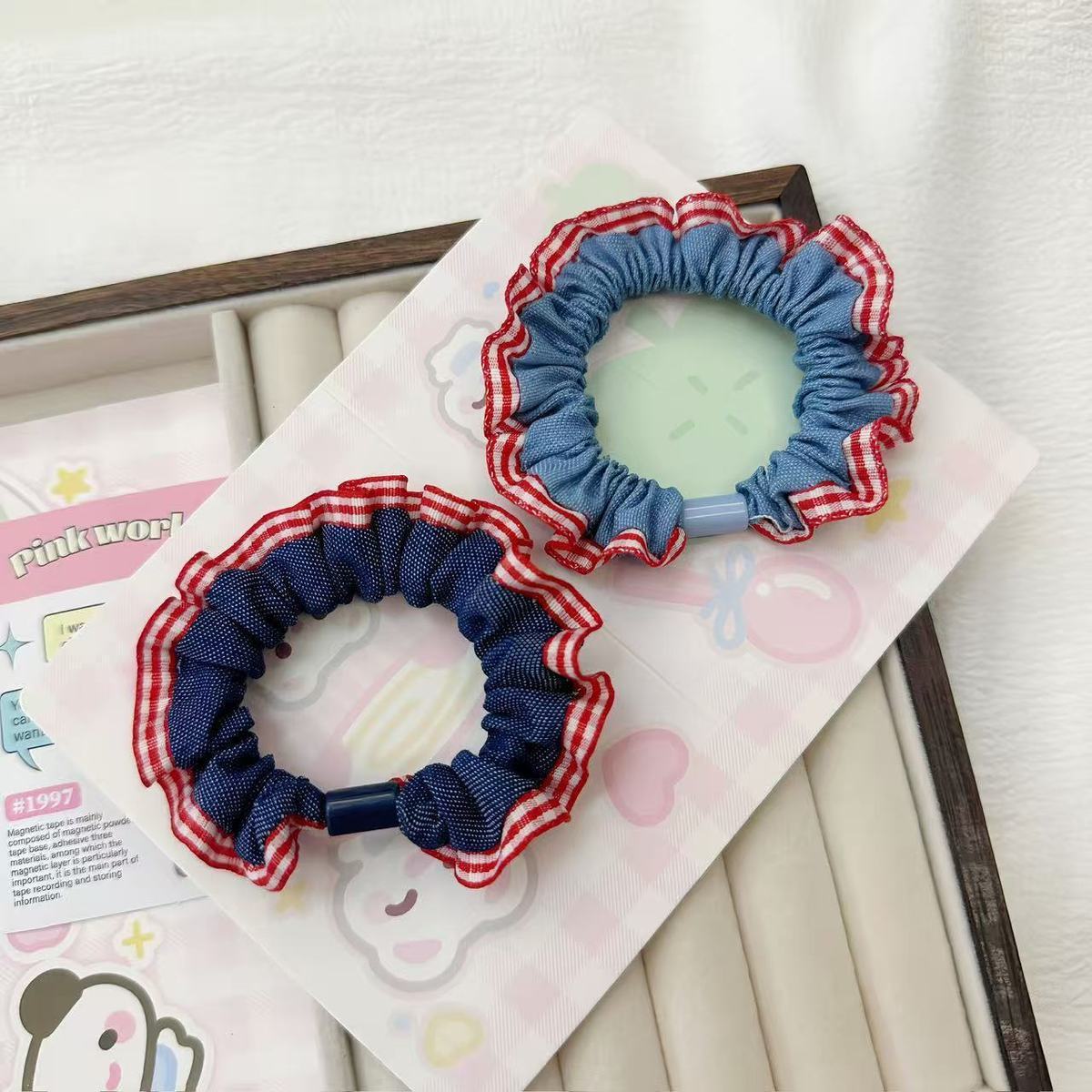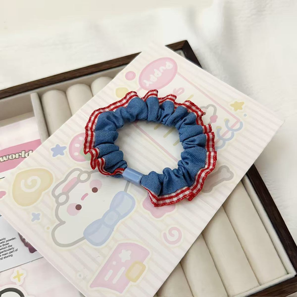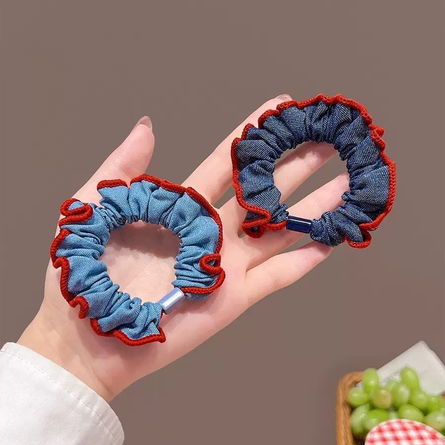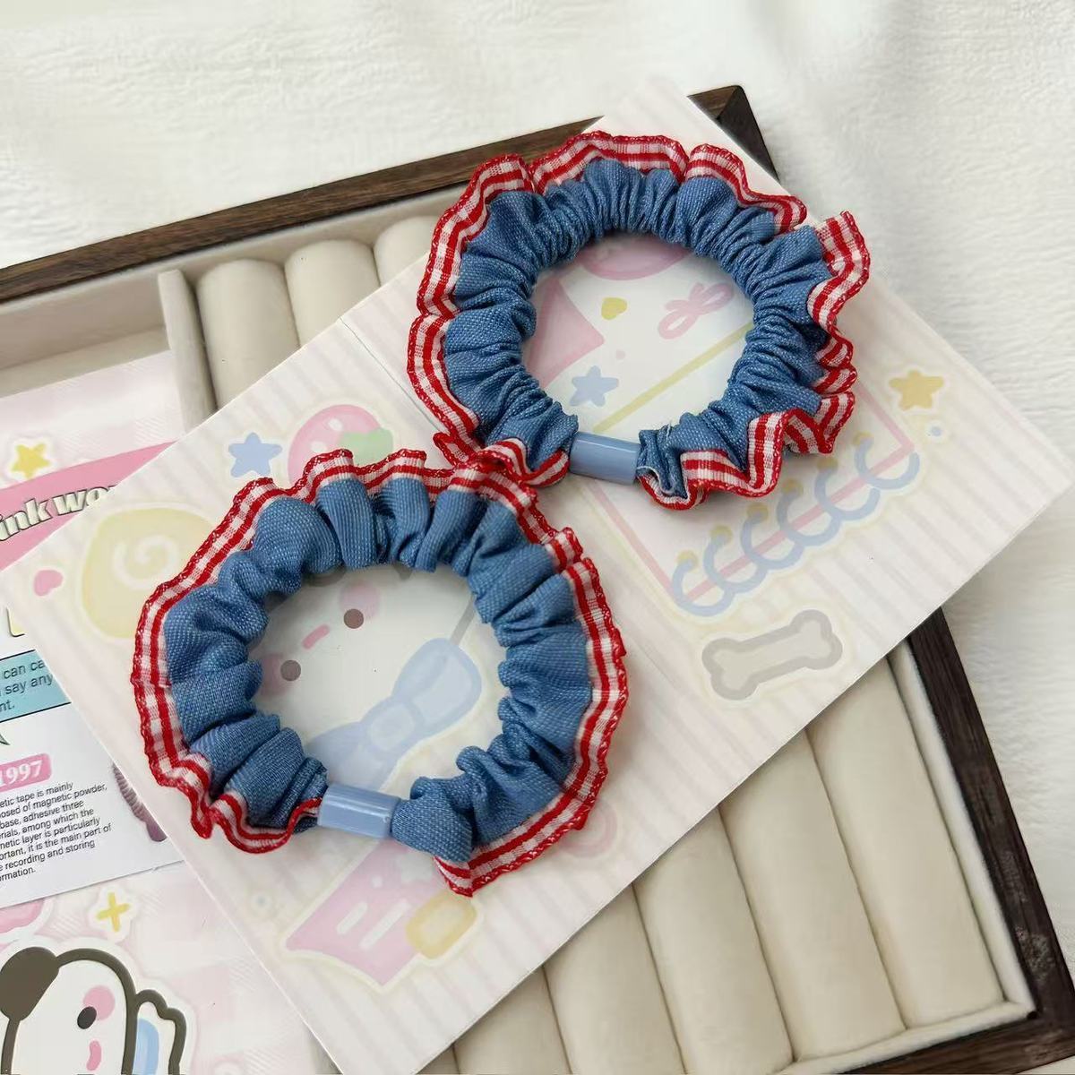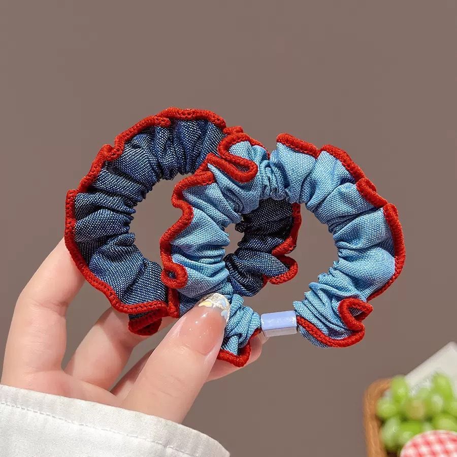 红色花边牛仔小肠发圈布艺甜美马尾百搭丸子头发绳气质头绳发饰女