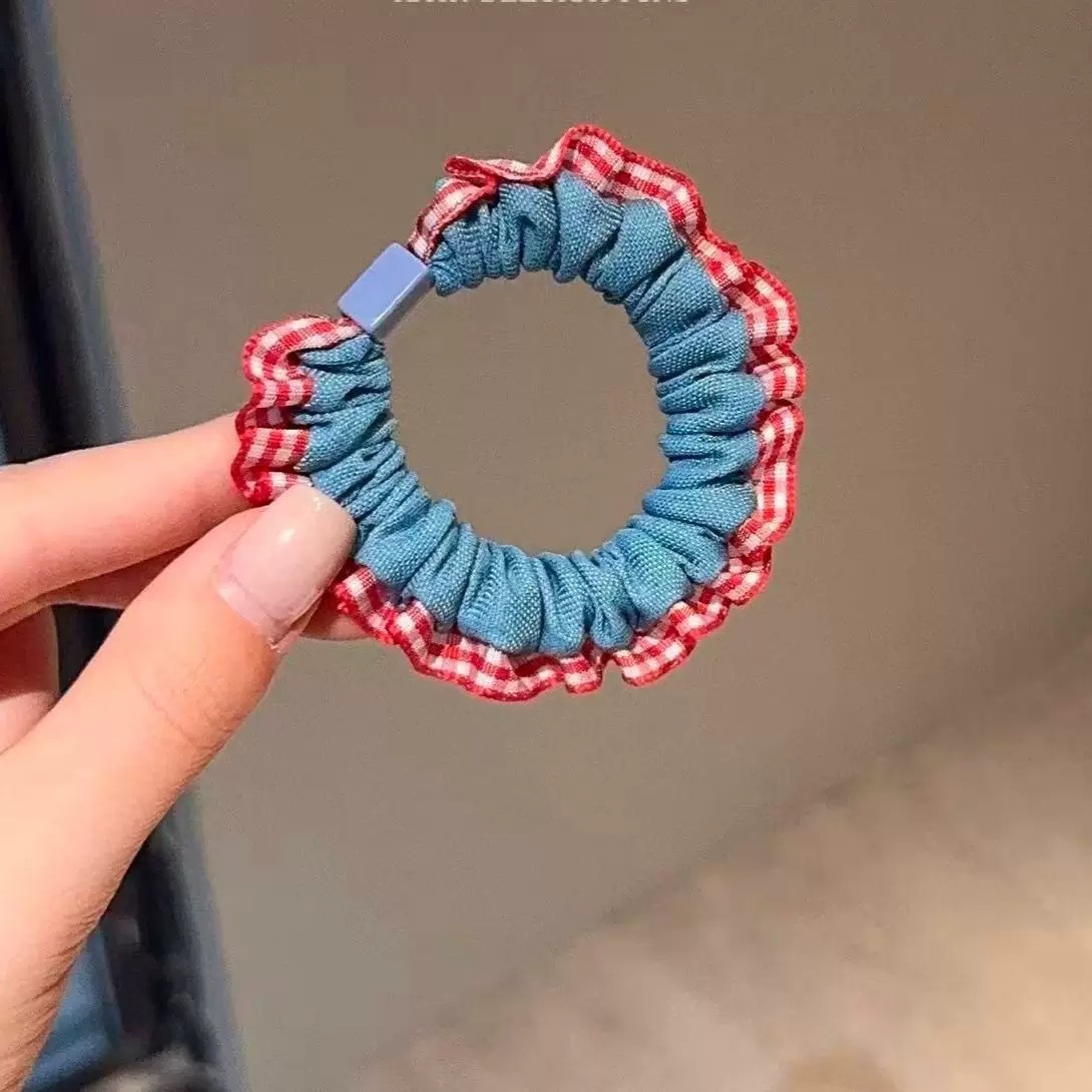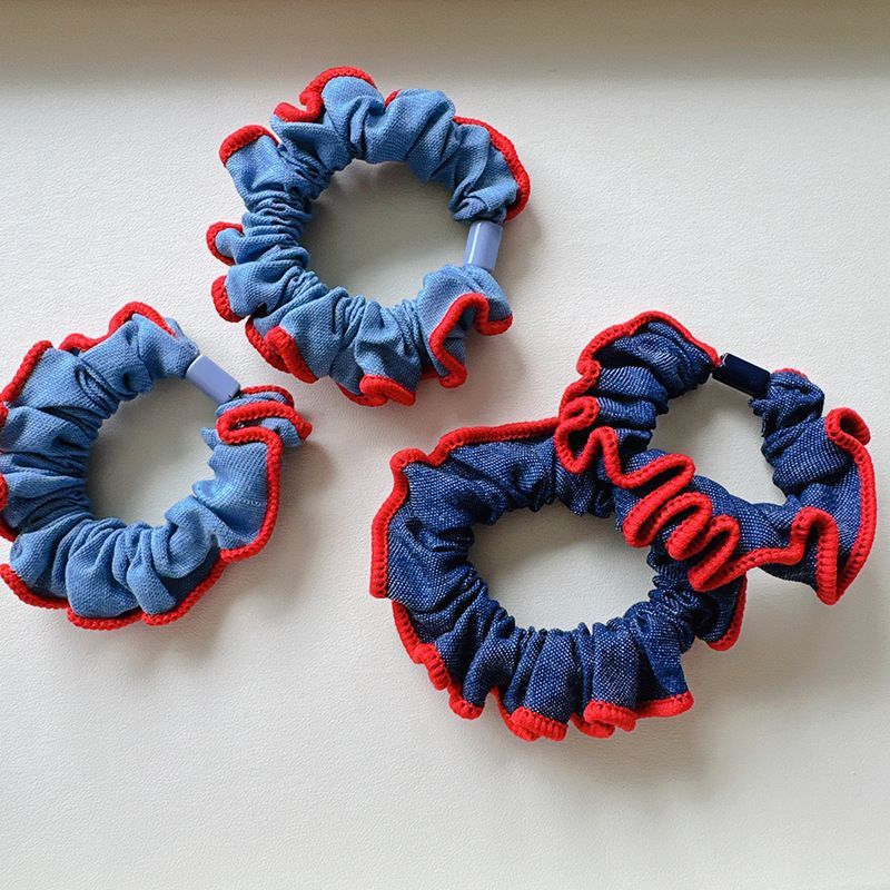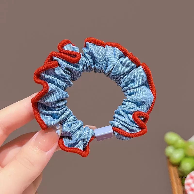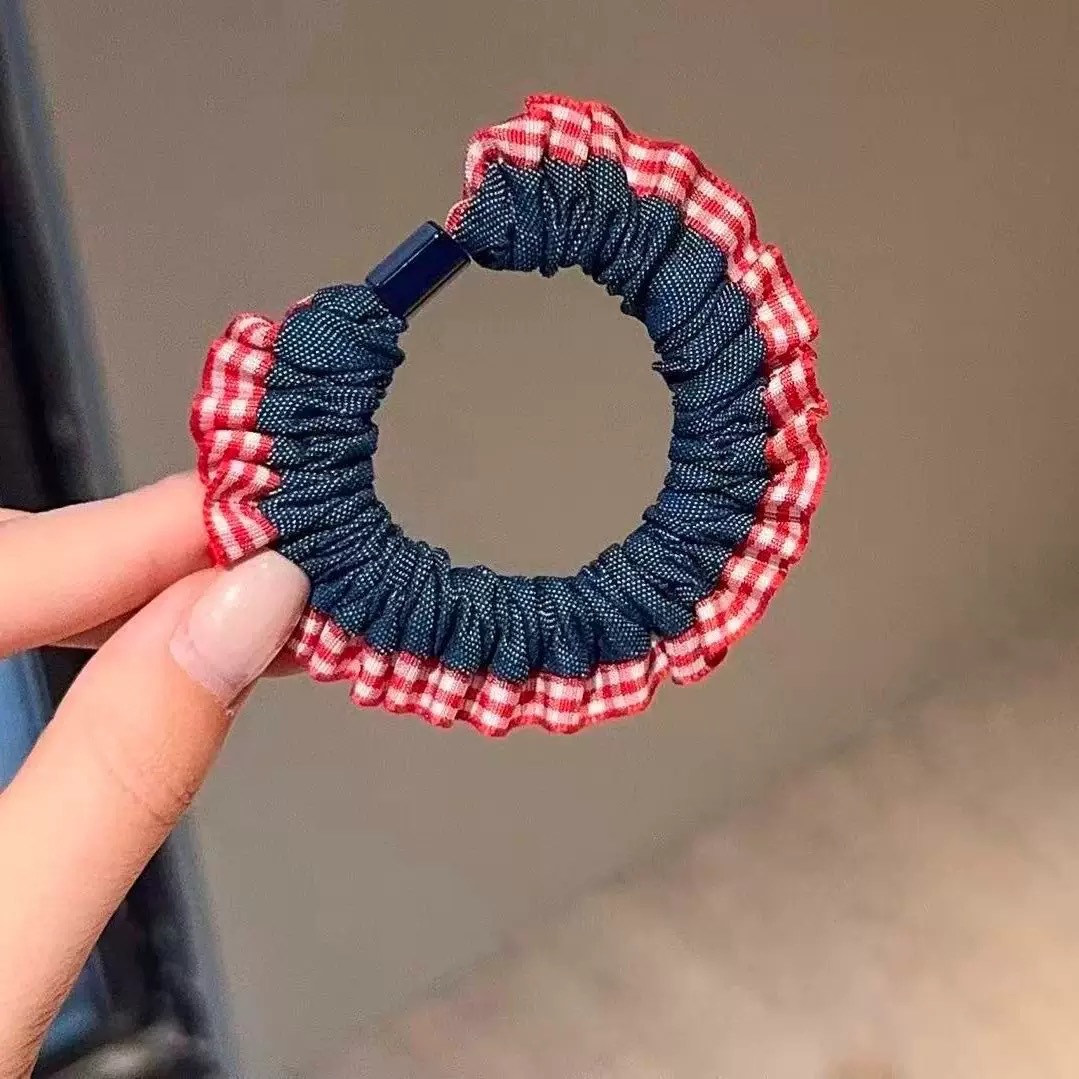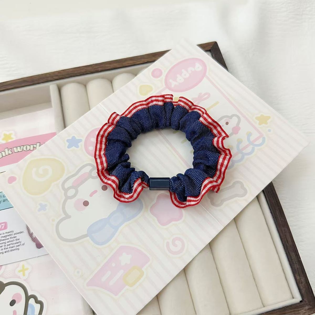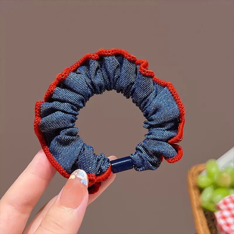 红色花边牛仔小肠发圈布艺甜美马尾百搭丸子头发绳气质头绳发饰女