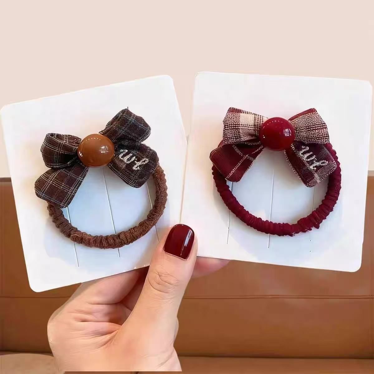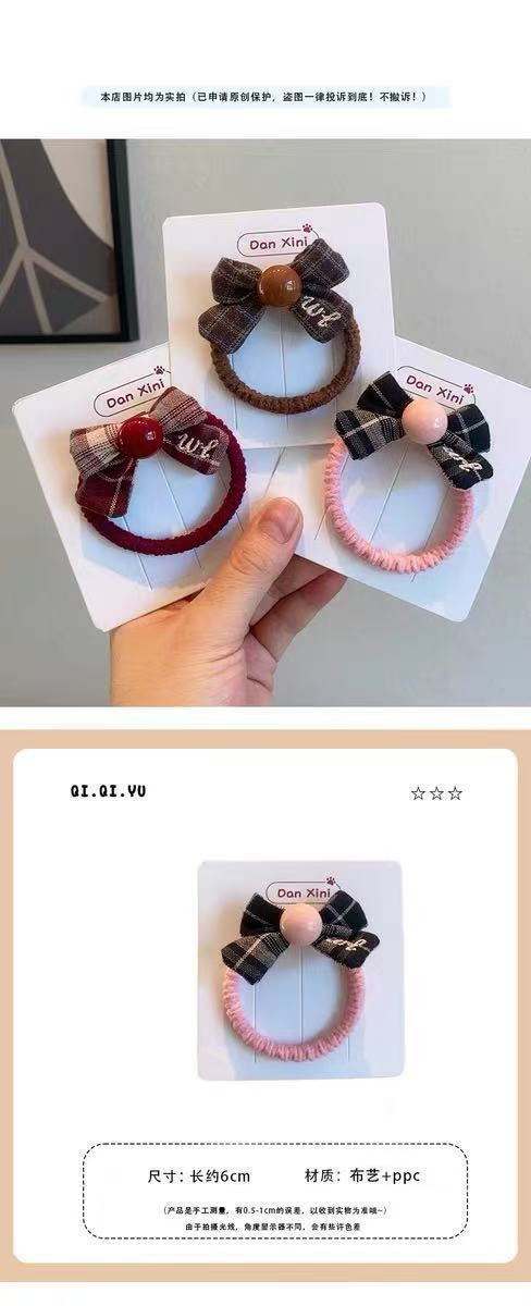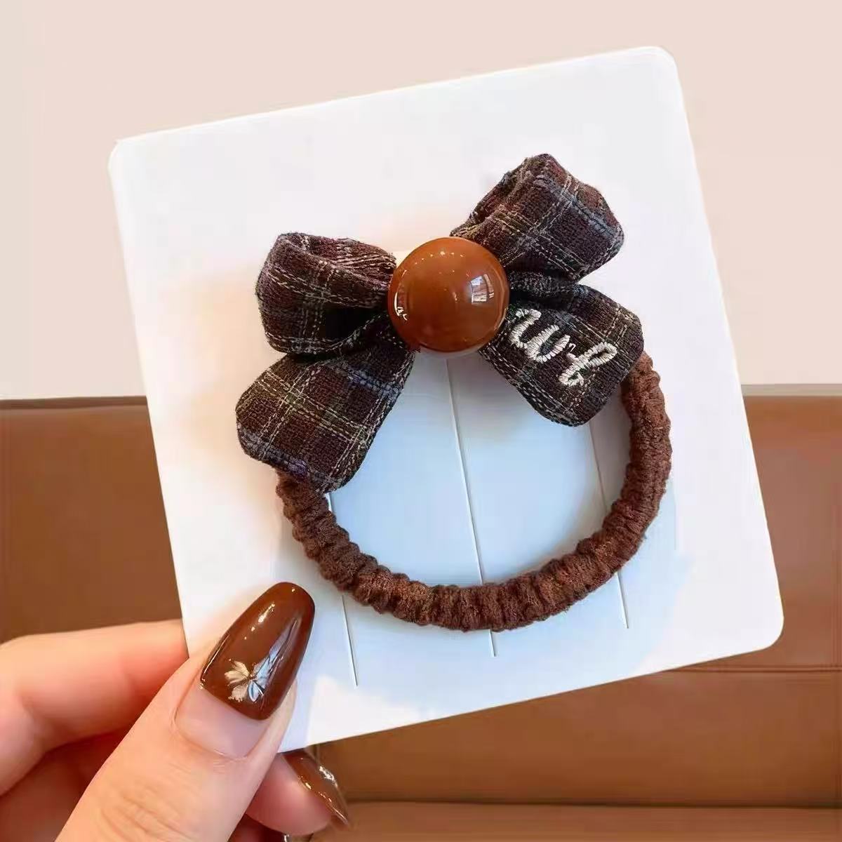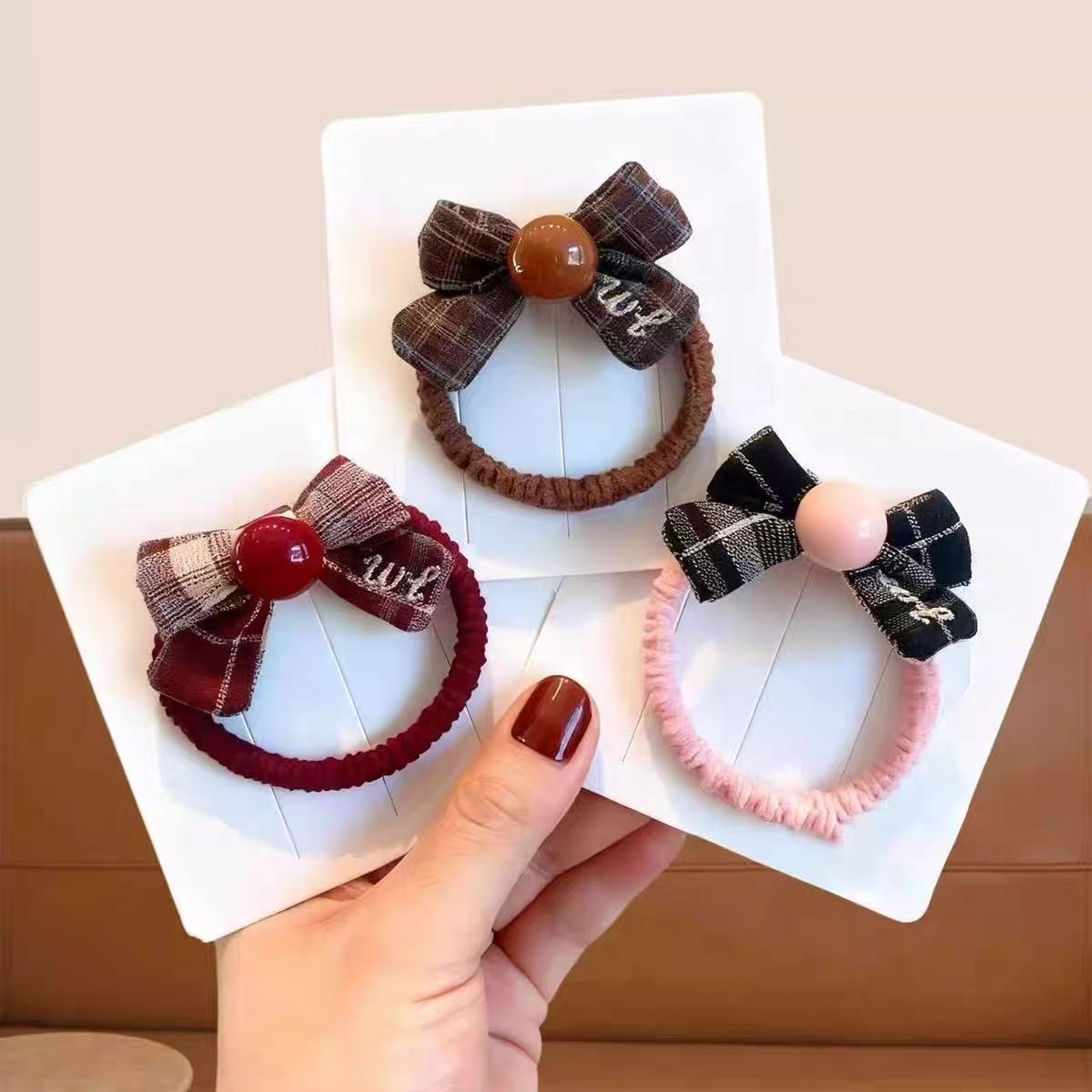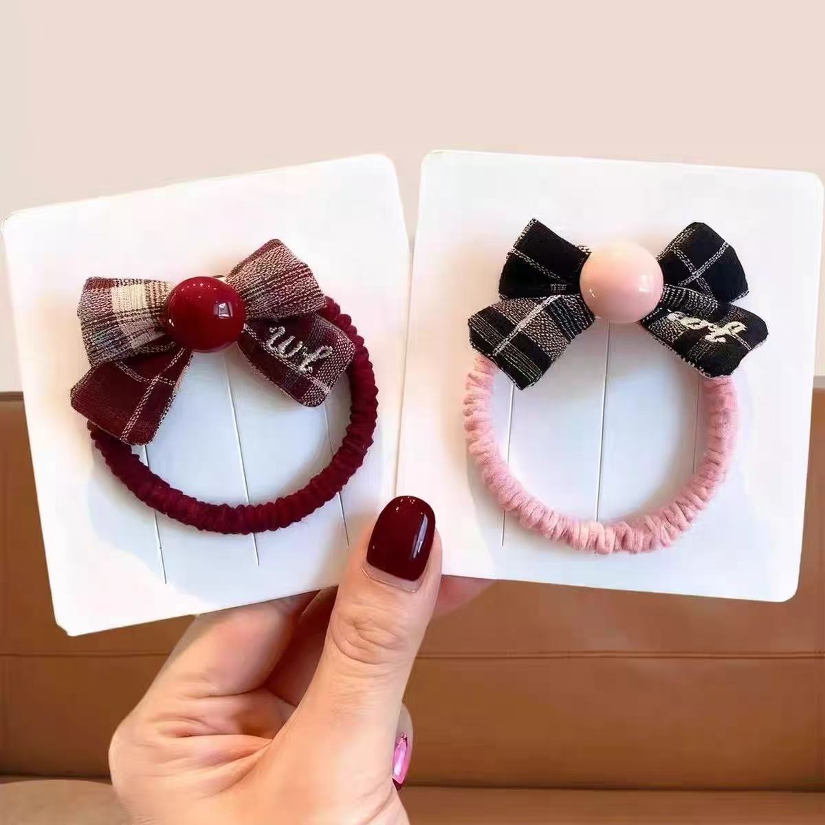 新款秋冬氛围韩版复古蝴蝶结小肠发圈儿童可用纹格时尚高级感发绳