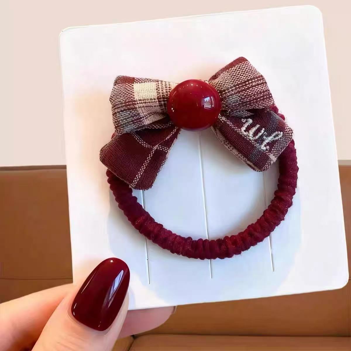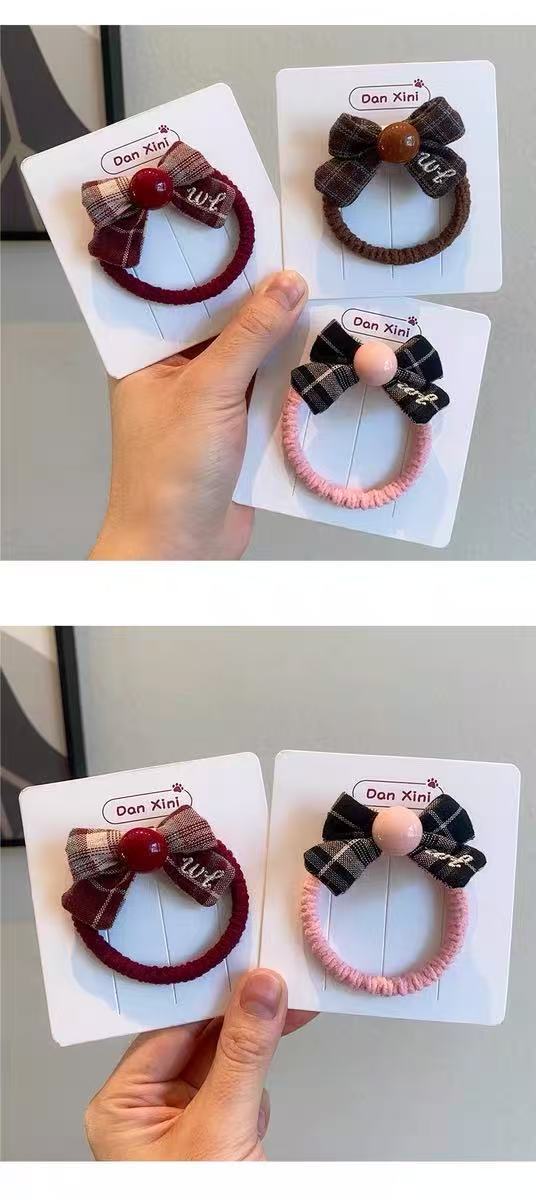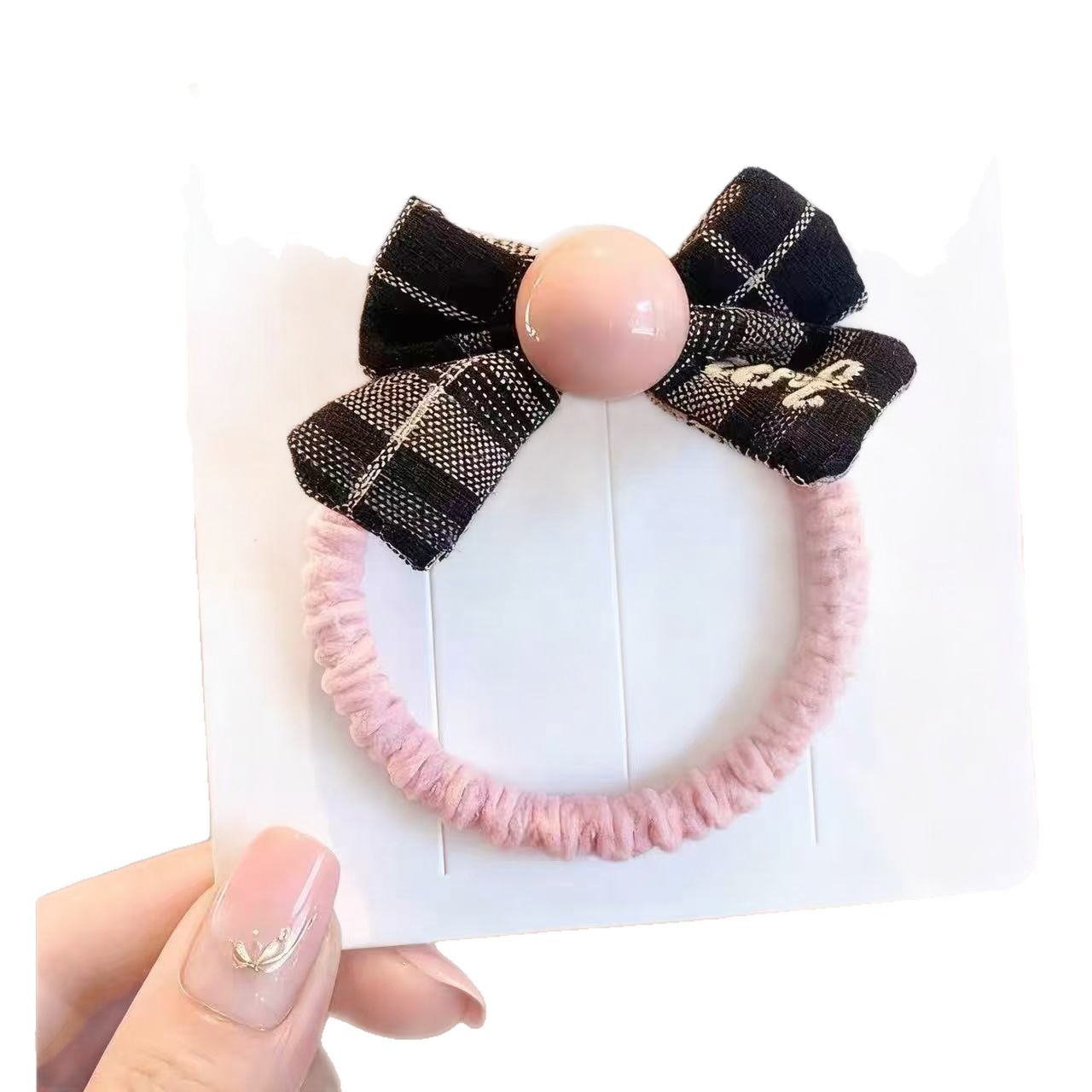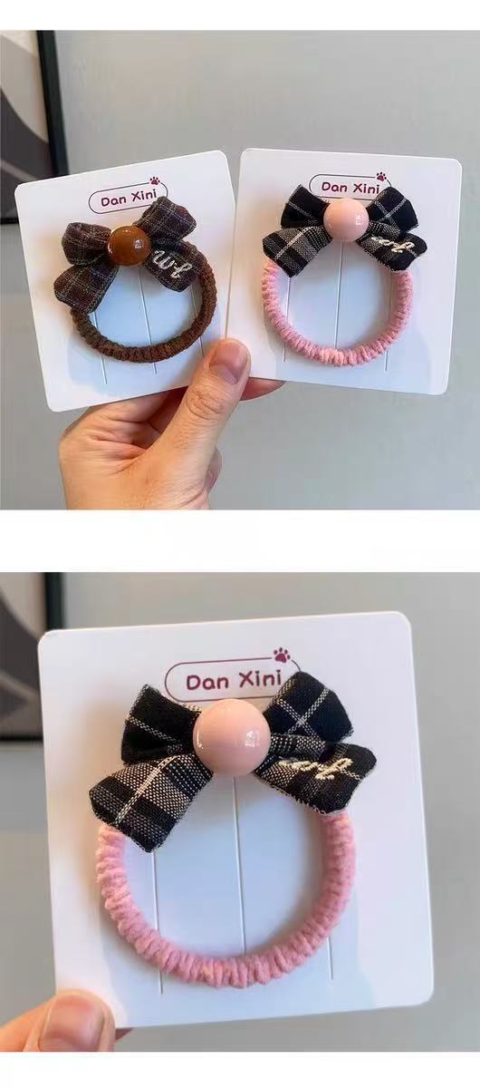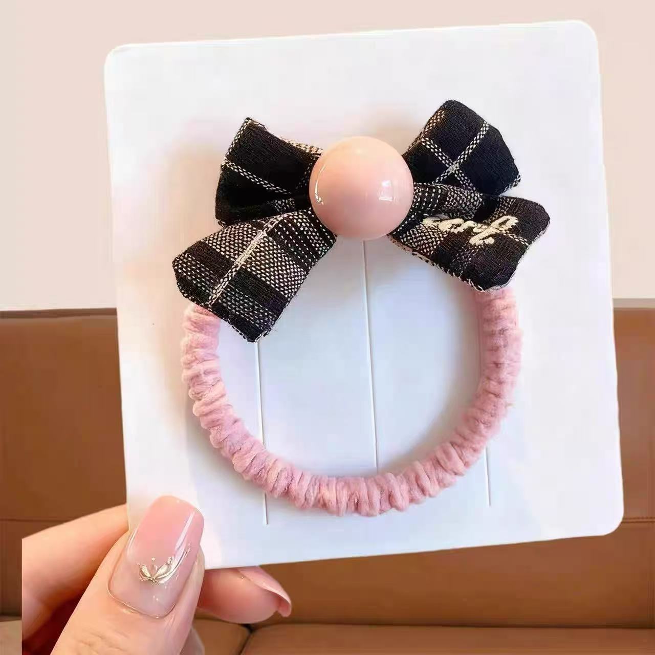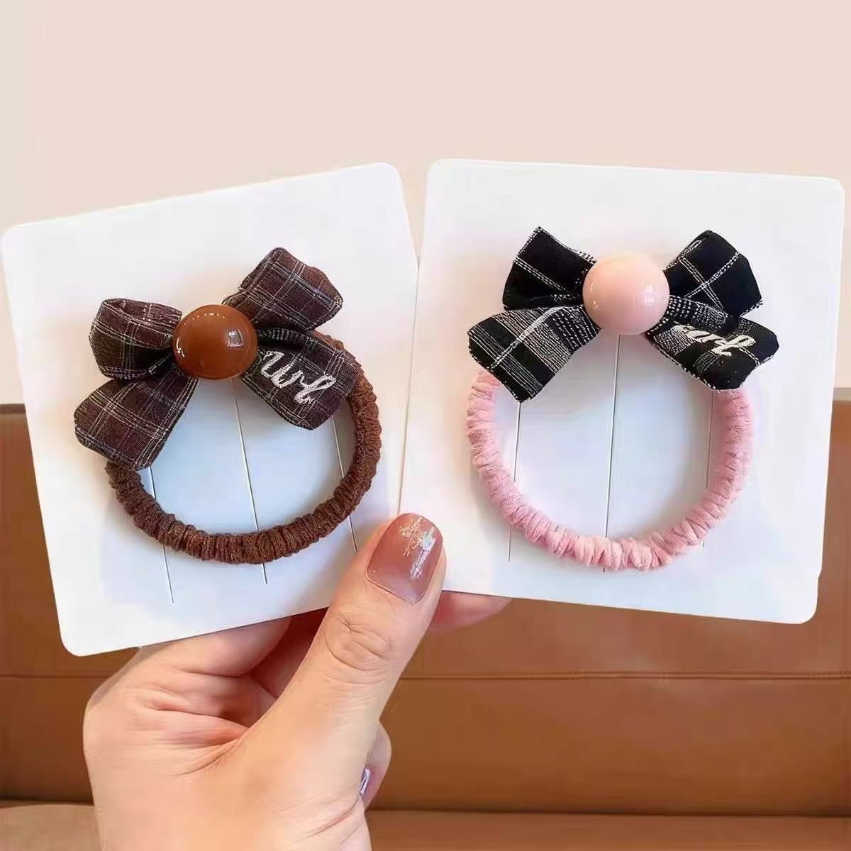 新款秋冬氛围韩版复古蝴蝶结小肠发圈儿童可用纹格时尚高级感发绳