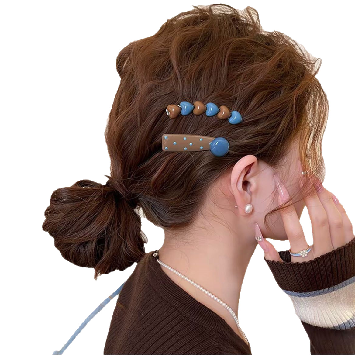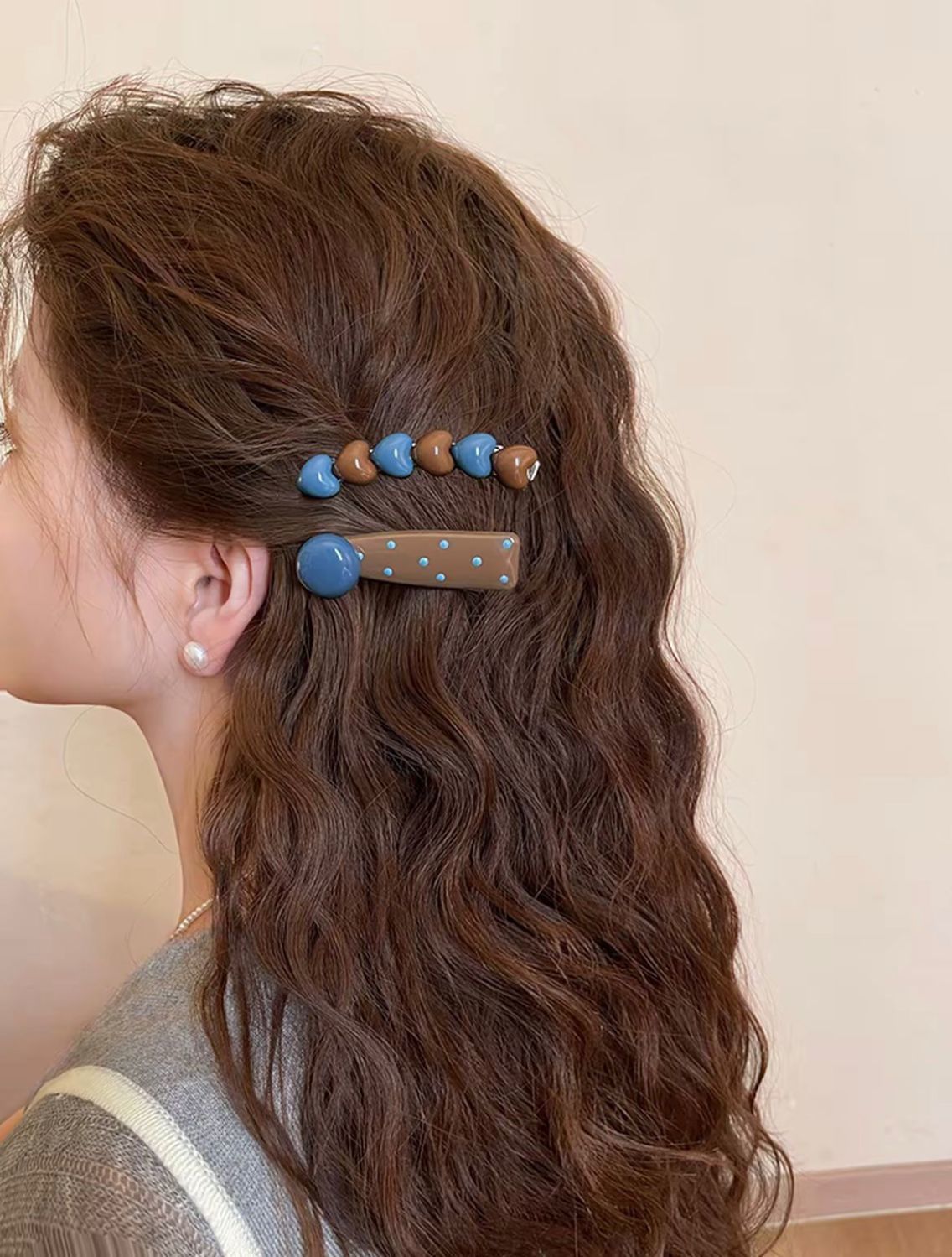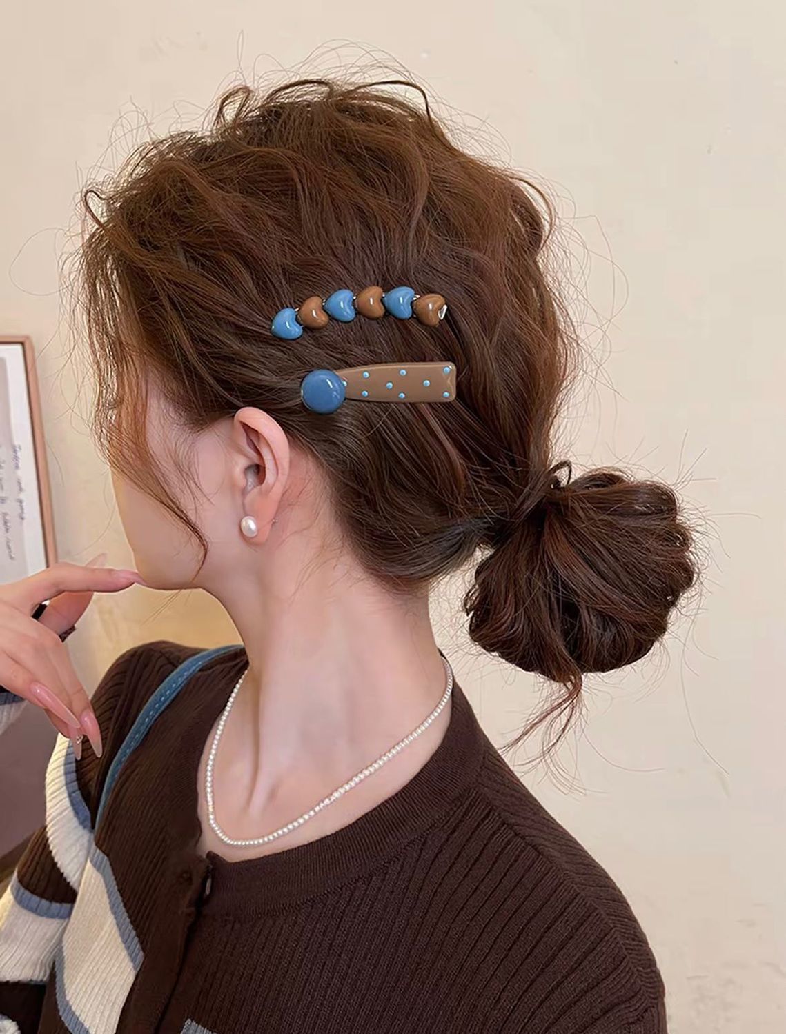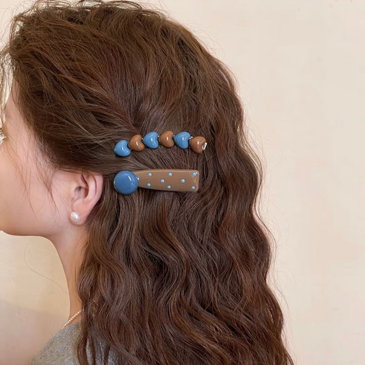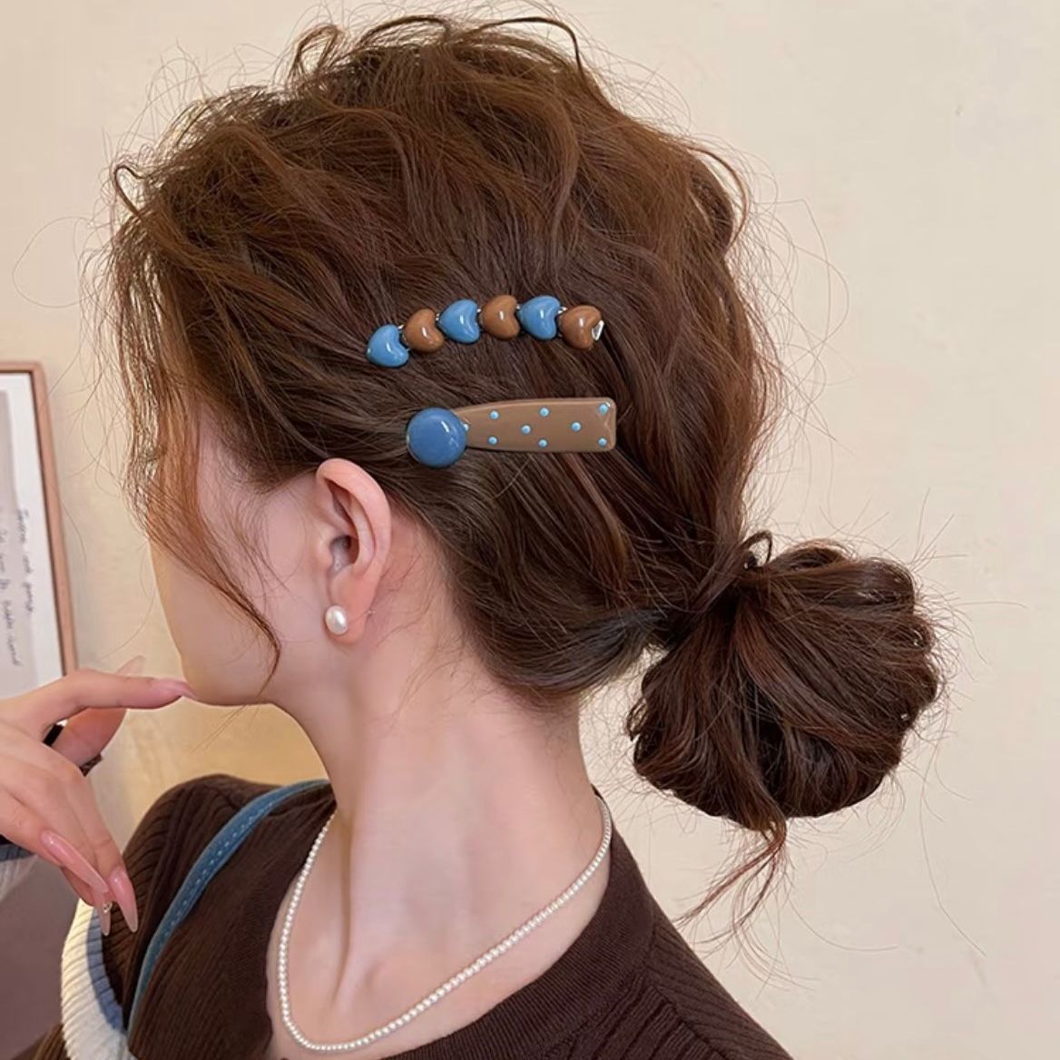 爱心奶咖发夹女边夹前额弧形甜美一字发卡碎发刘海夹子头饰2025新