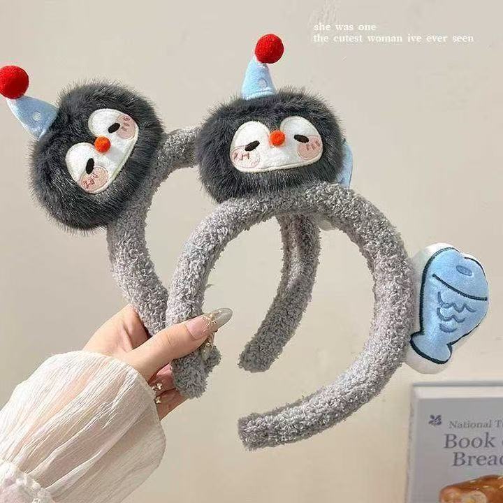 企鹅小鱼发箍可爱萌趣毛绒卡通头饰少女拍照洗脸发卡搞怪头箍发饰
