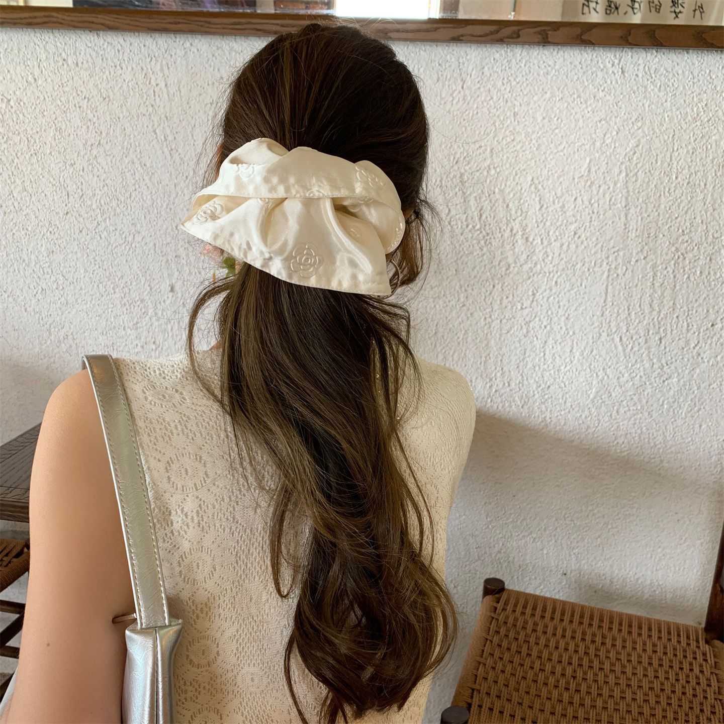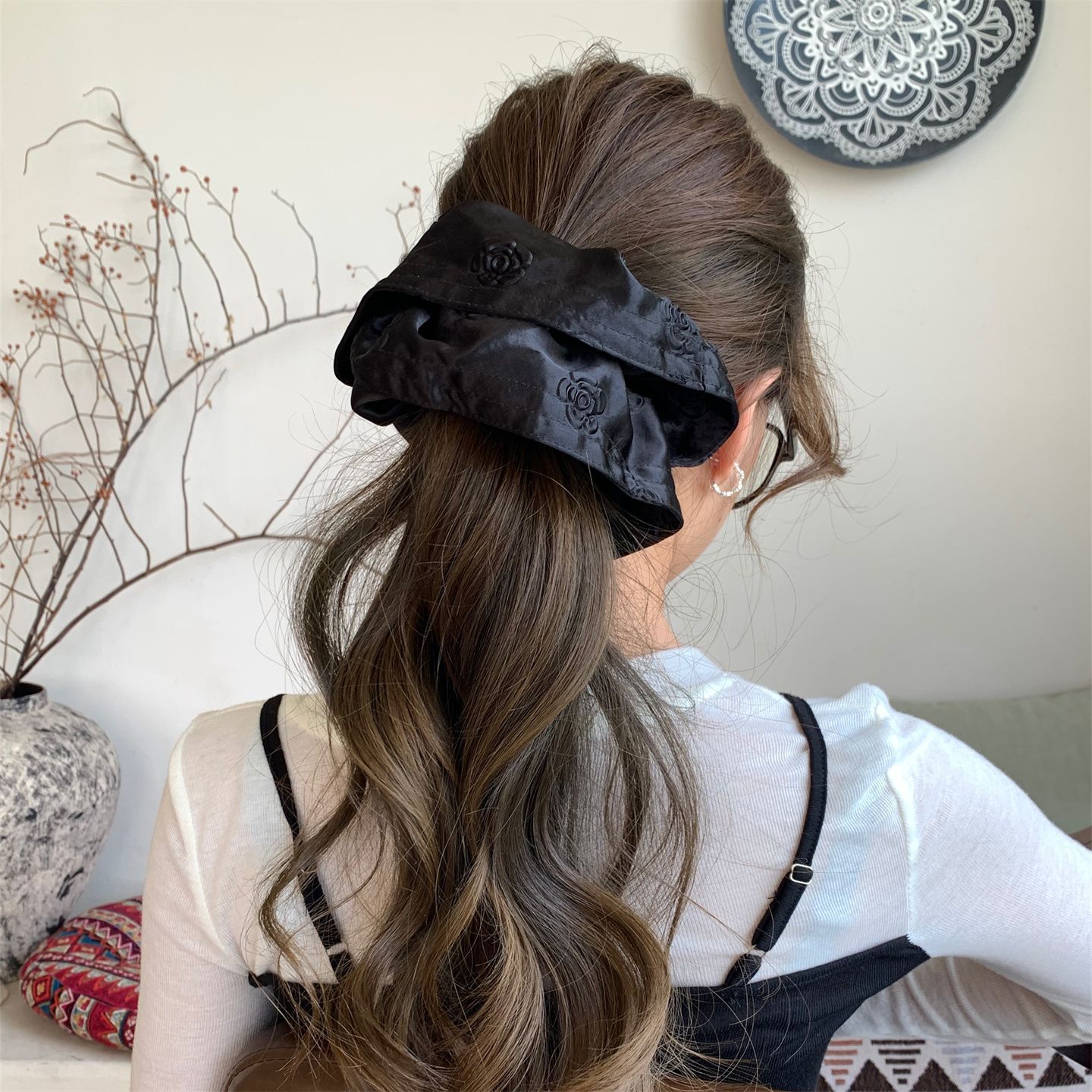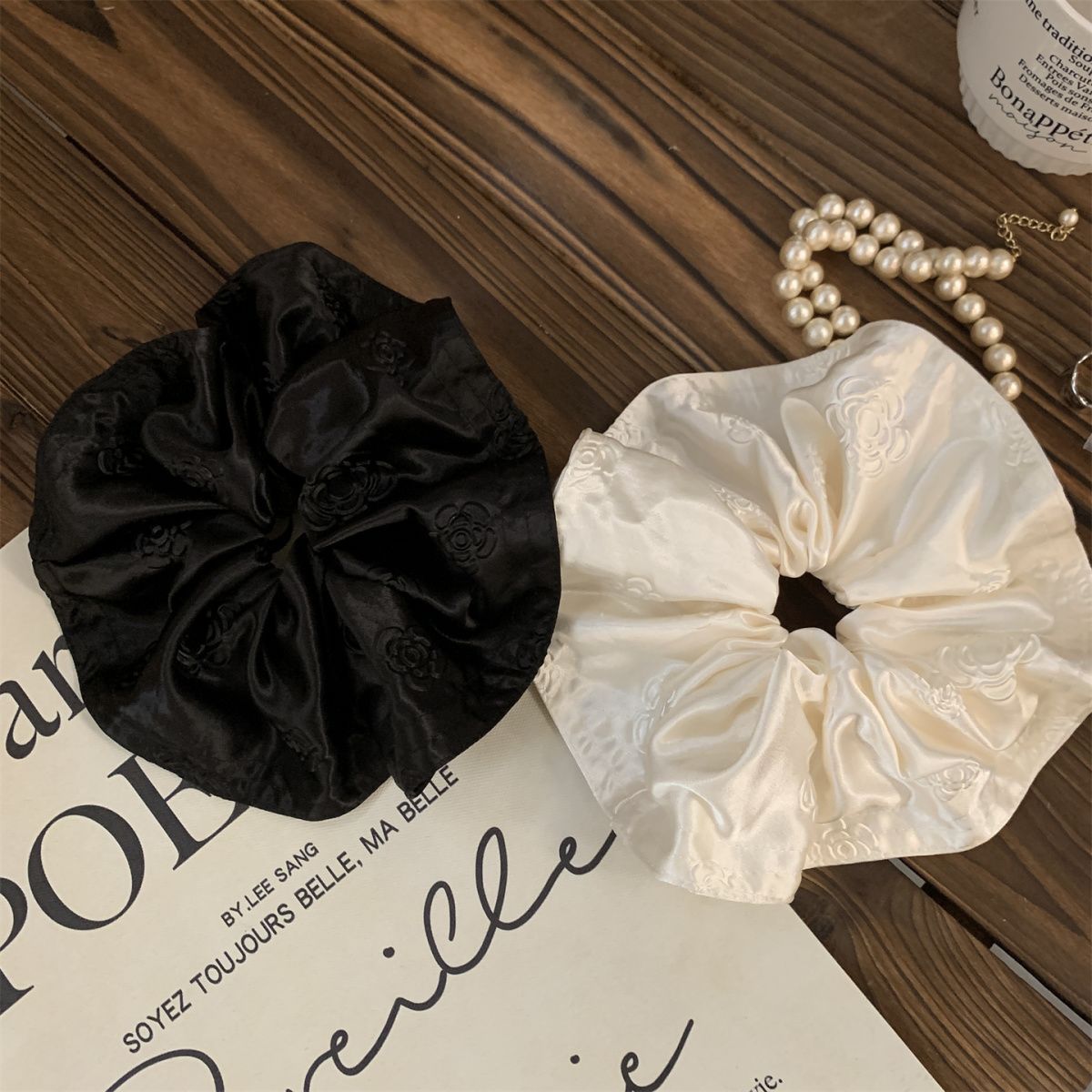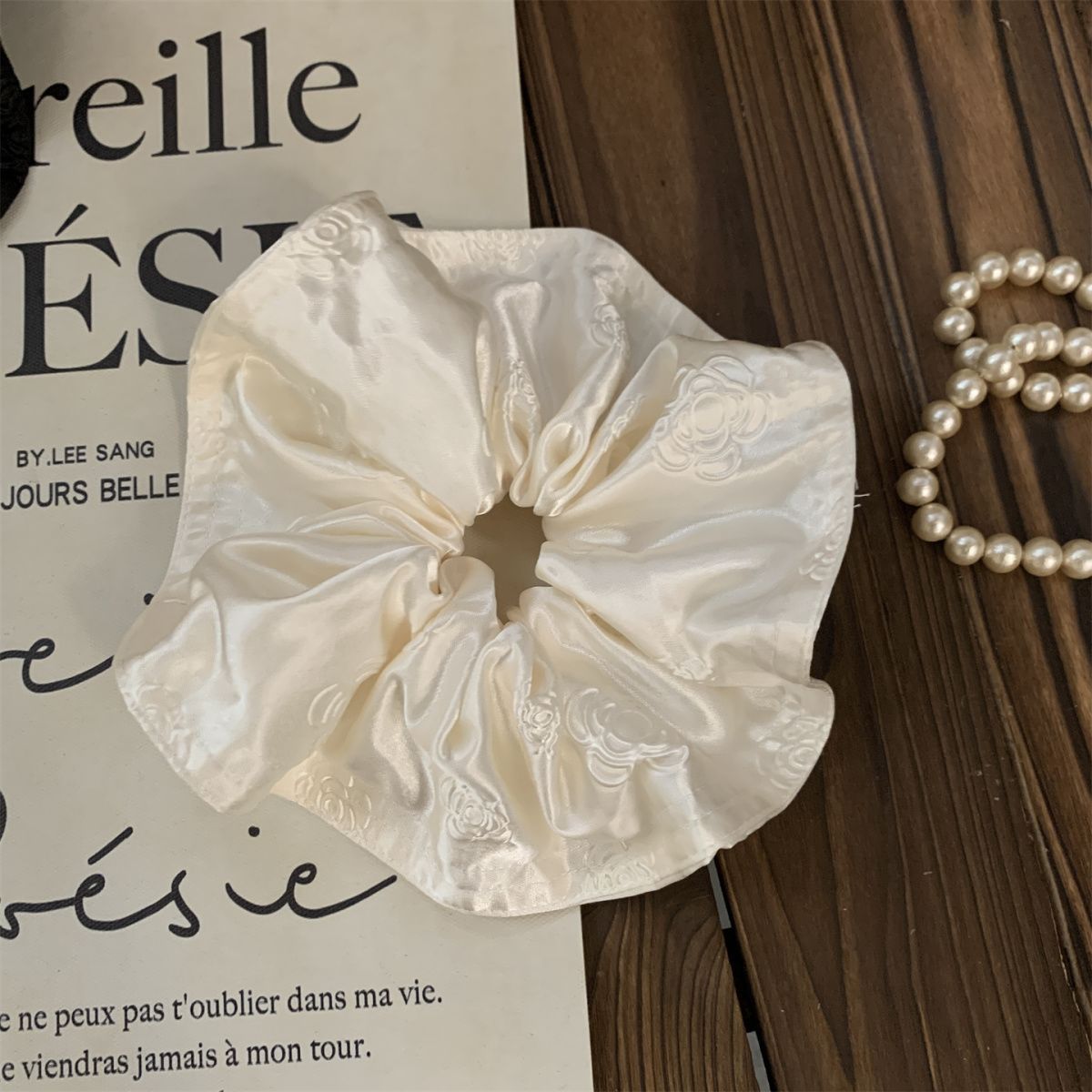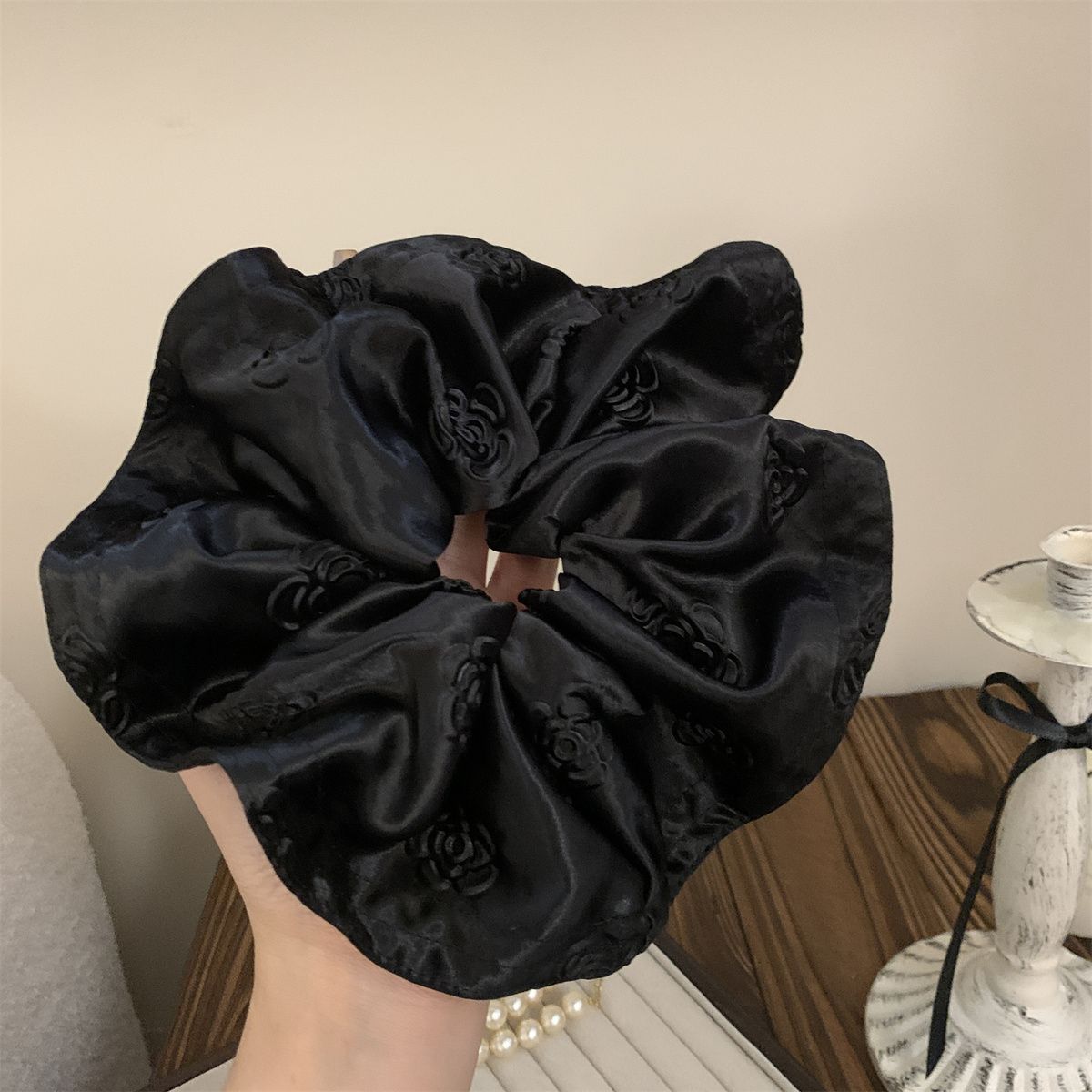 玫瑰浮雕印花高级感缎面大肠发圈发绳复古慵懒风头绳气质百搭头花