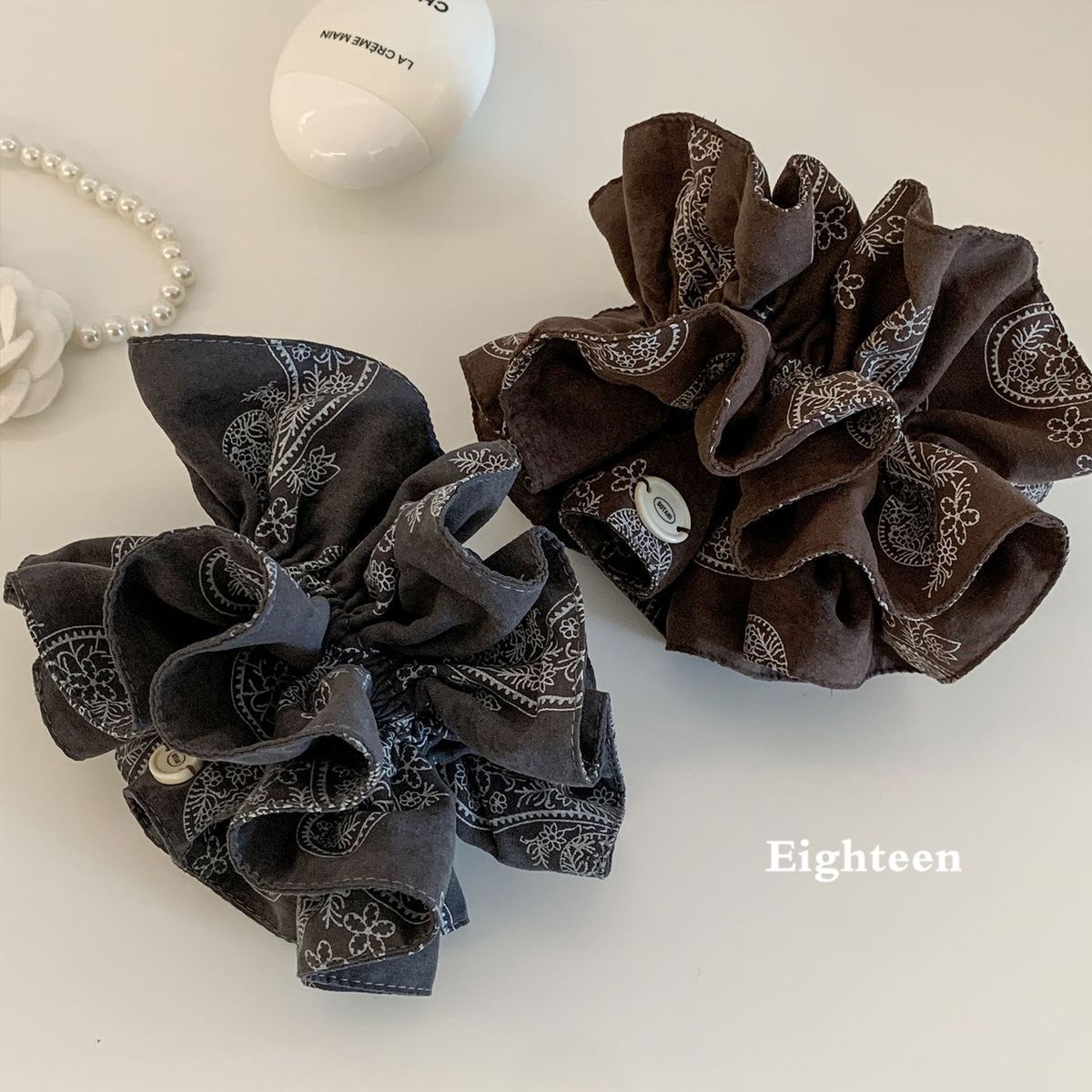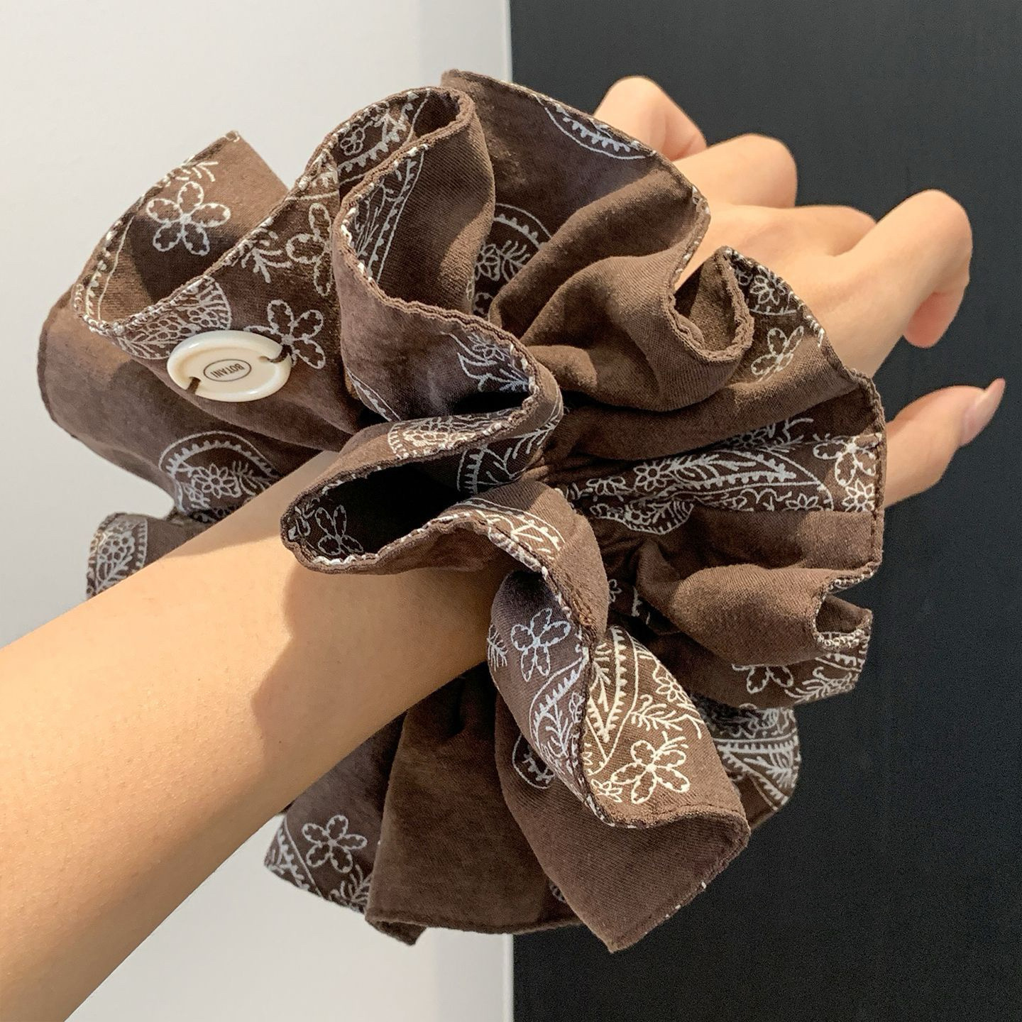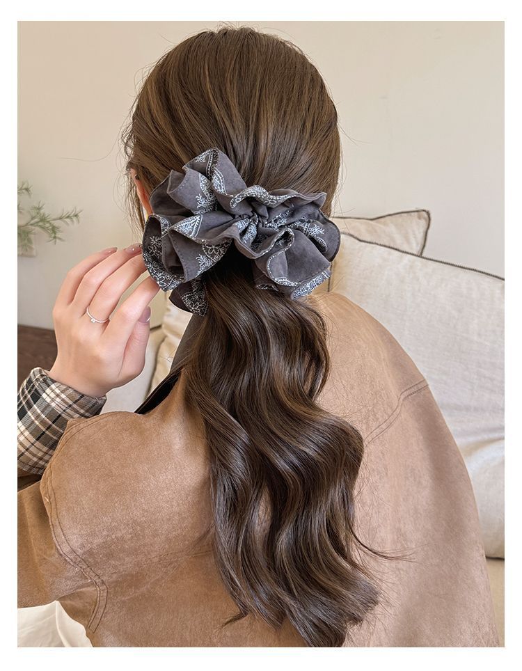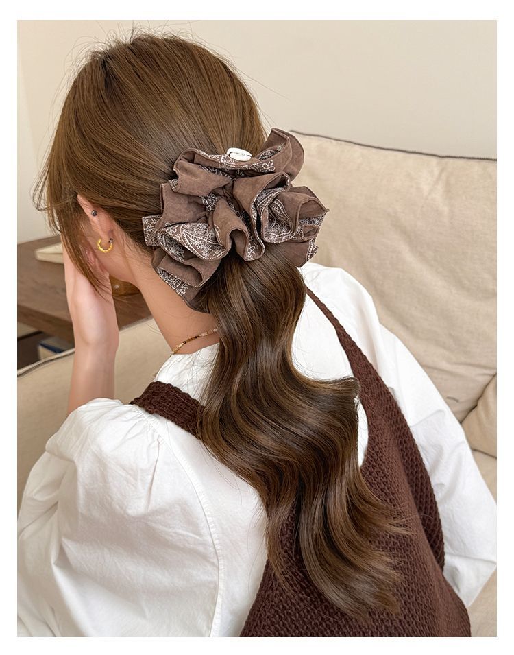 韩版复古腰果花双层大肠发圈气质感百搭发绳低马尾扎发头绳女头花