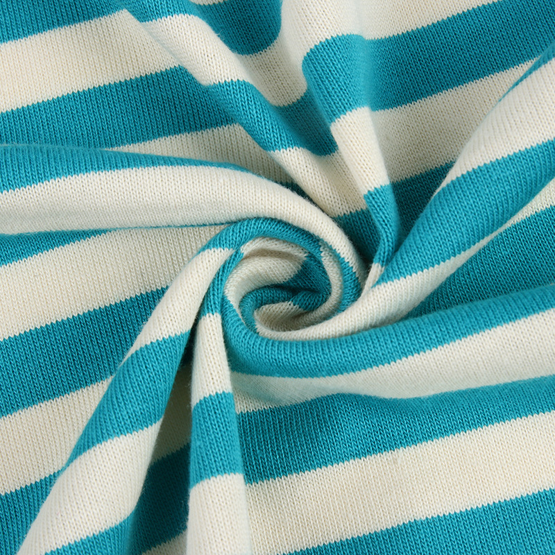 针织纯棉条纹T恤布料 【现货】230克潮牌色织汗布 32支横条纹面料