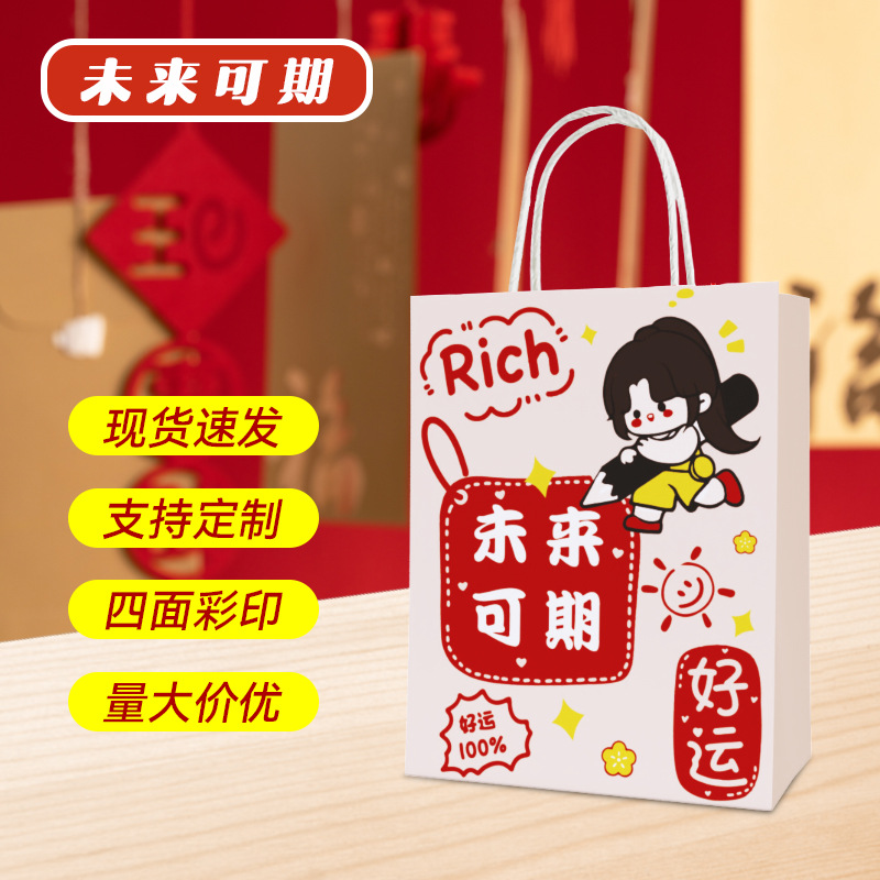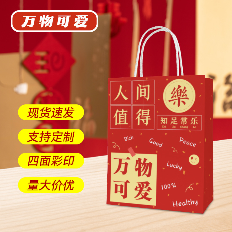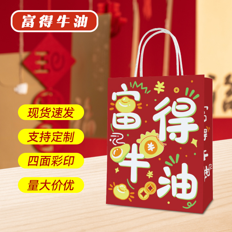 国潮喜庆礼品袋新年伴手礼手提袋奶茶外卖打包袋服装牛皮纸袋