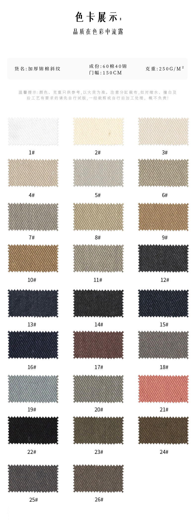 | thickened nylon cotton twill (note color number for order)(加厚锦棉斜纹(下单备注色号)) | USD $0.0 | 99745 m available |