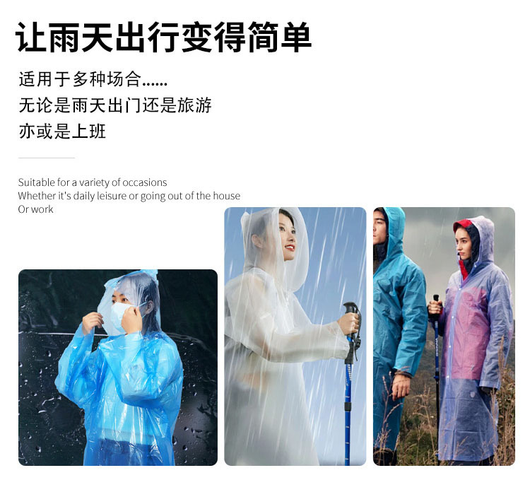 丽必政一次性雨衣雨披单人徒步雨衣套装男女通用便携户外用品厚款