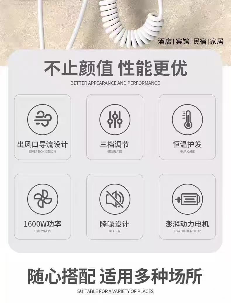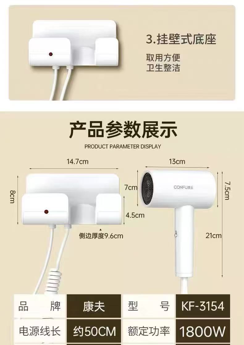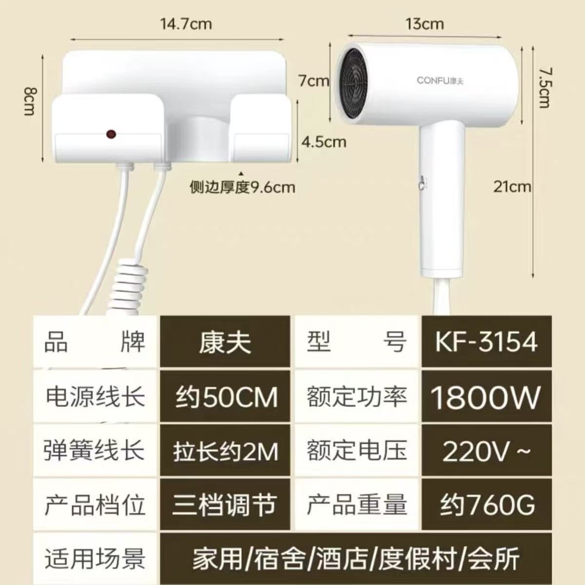 康夫挂壁式吹风机大功率1800w大风速干酒店电吹风机浴室家用 批发
