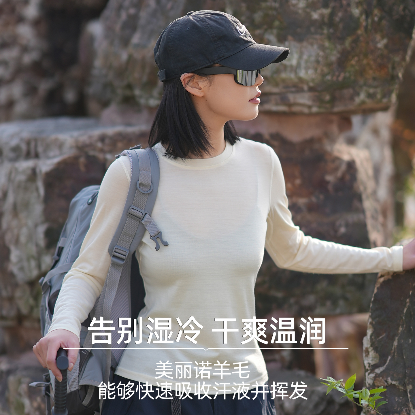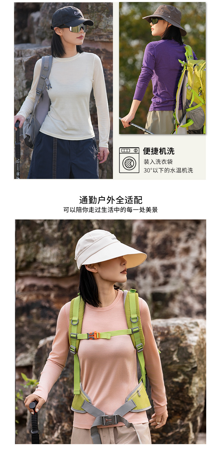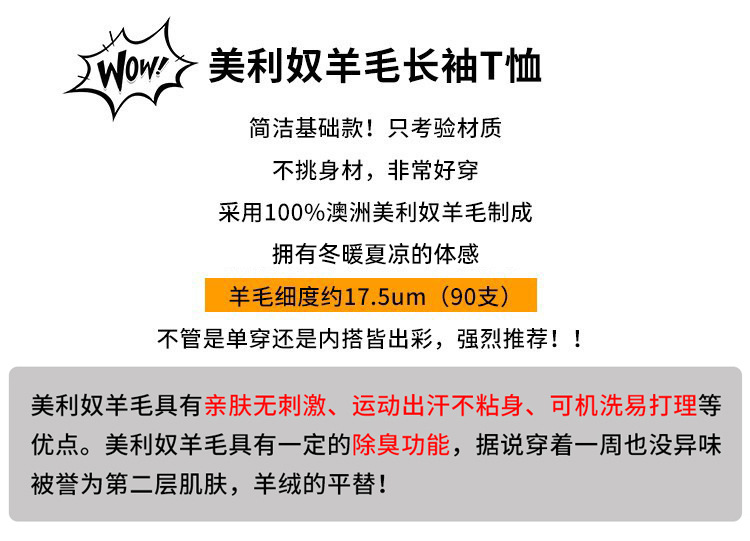 美利奴羊毛速干衣女户外长袖运动t恤美丽诺打底衫登山跑步上衣H16