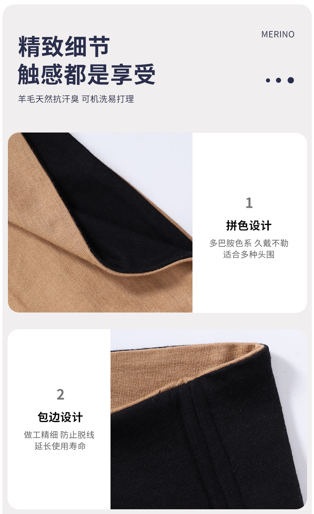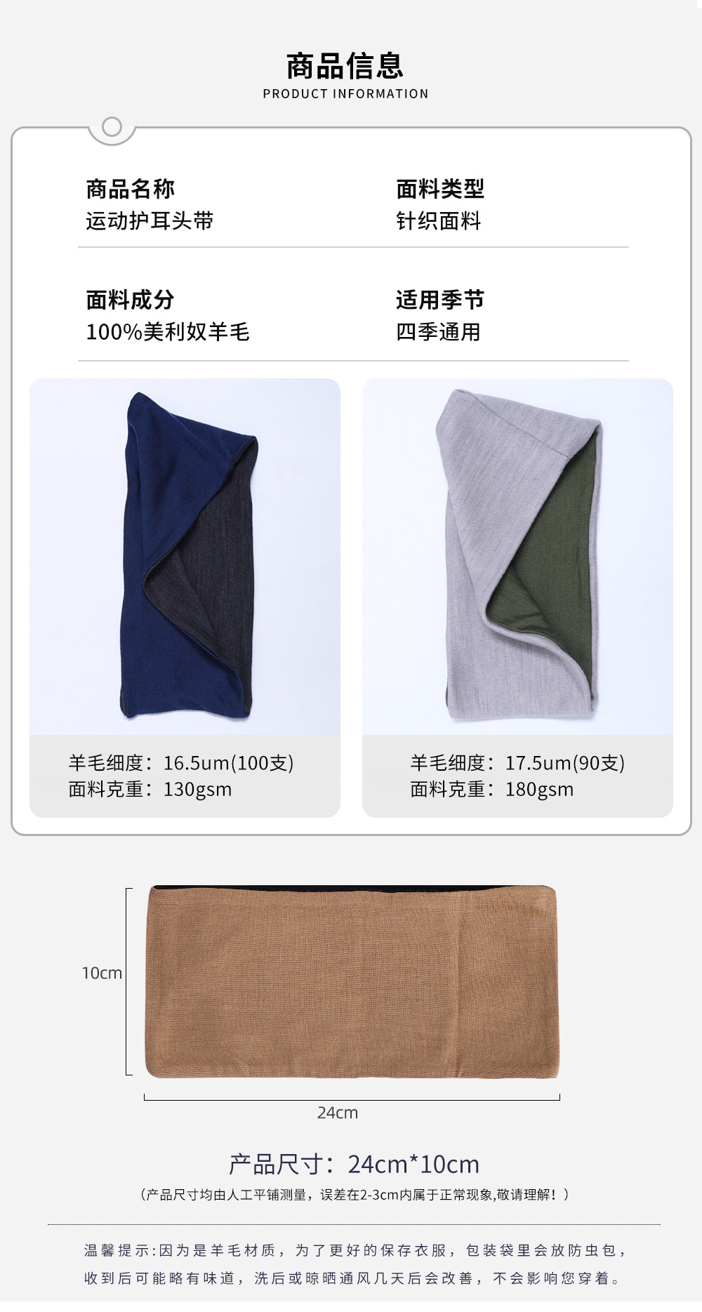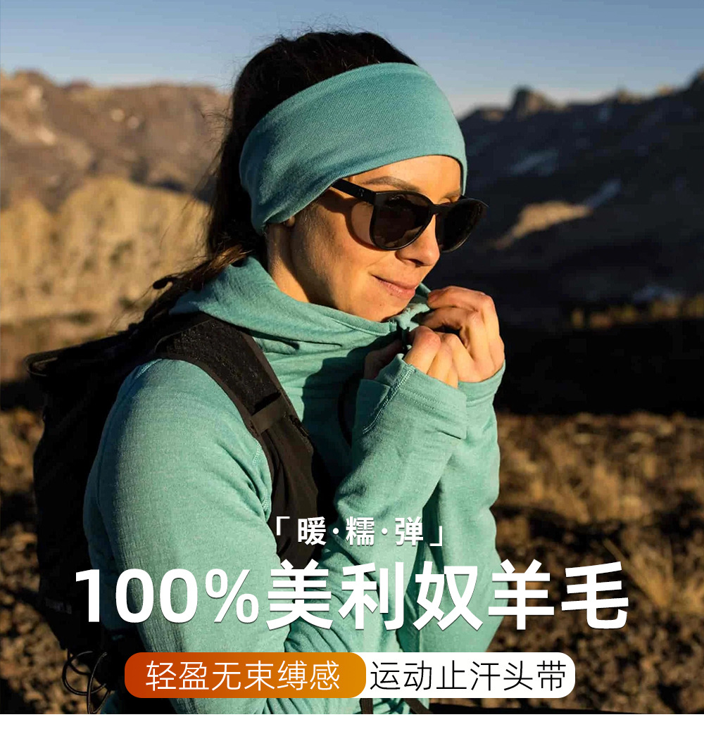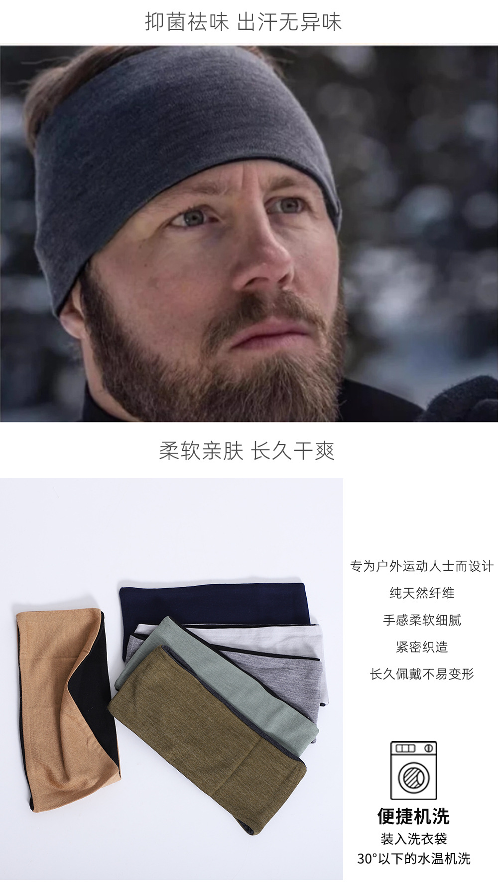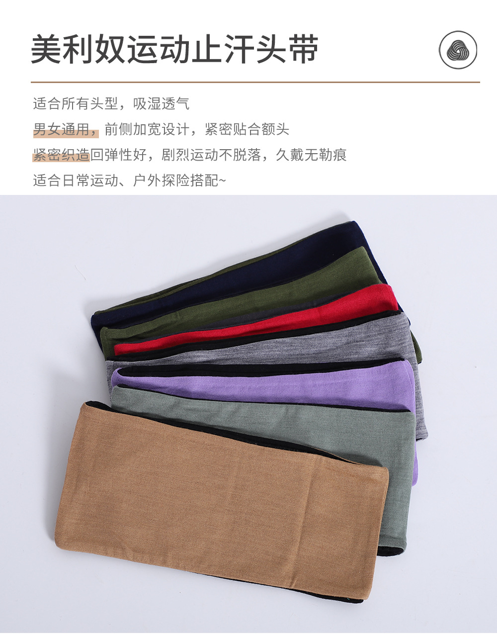 美利奴羊毛发带女运动吸汗户外骑行跑步头巾加宽登山止汗头带M29