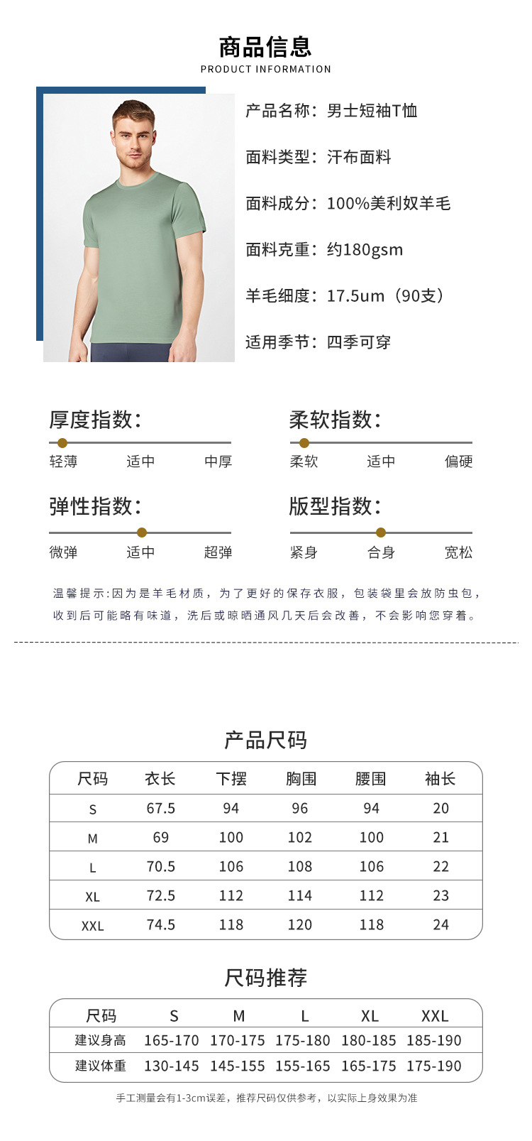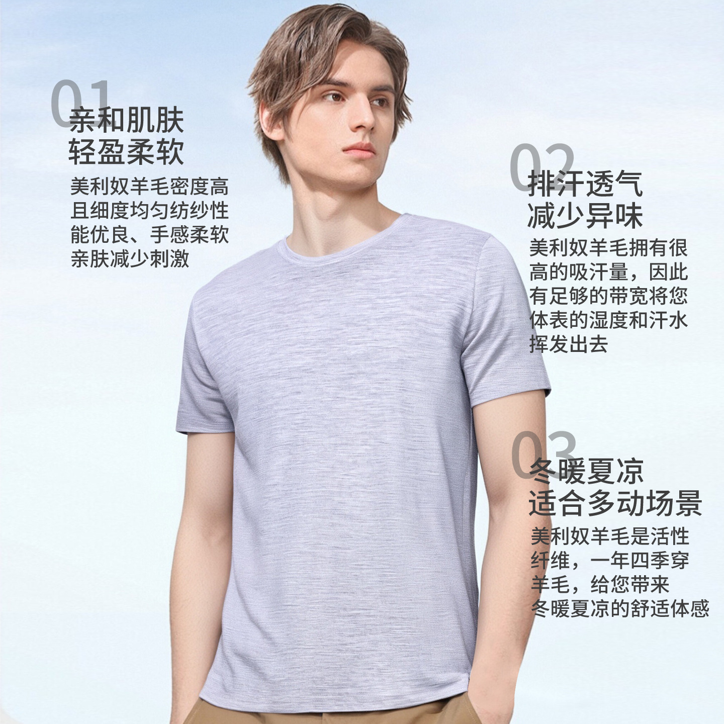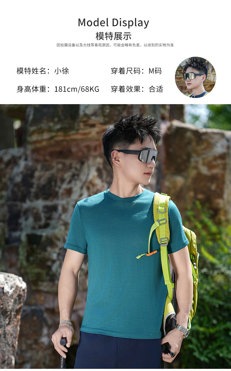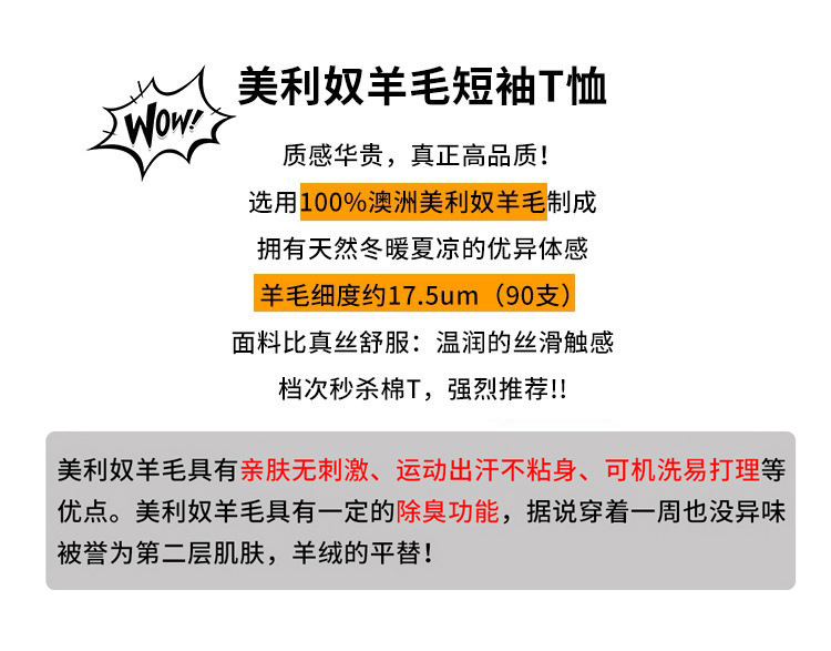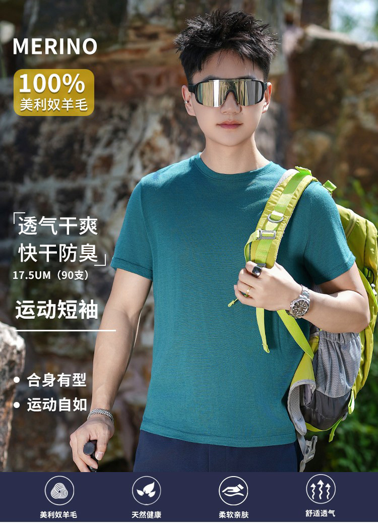 美利奴羊毛短袖t恤男户外速干衣夏季美丽诺跑步登山运动上衣H08