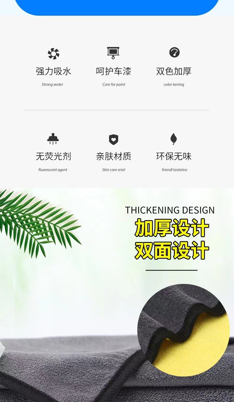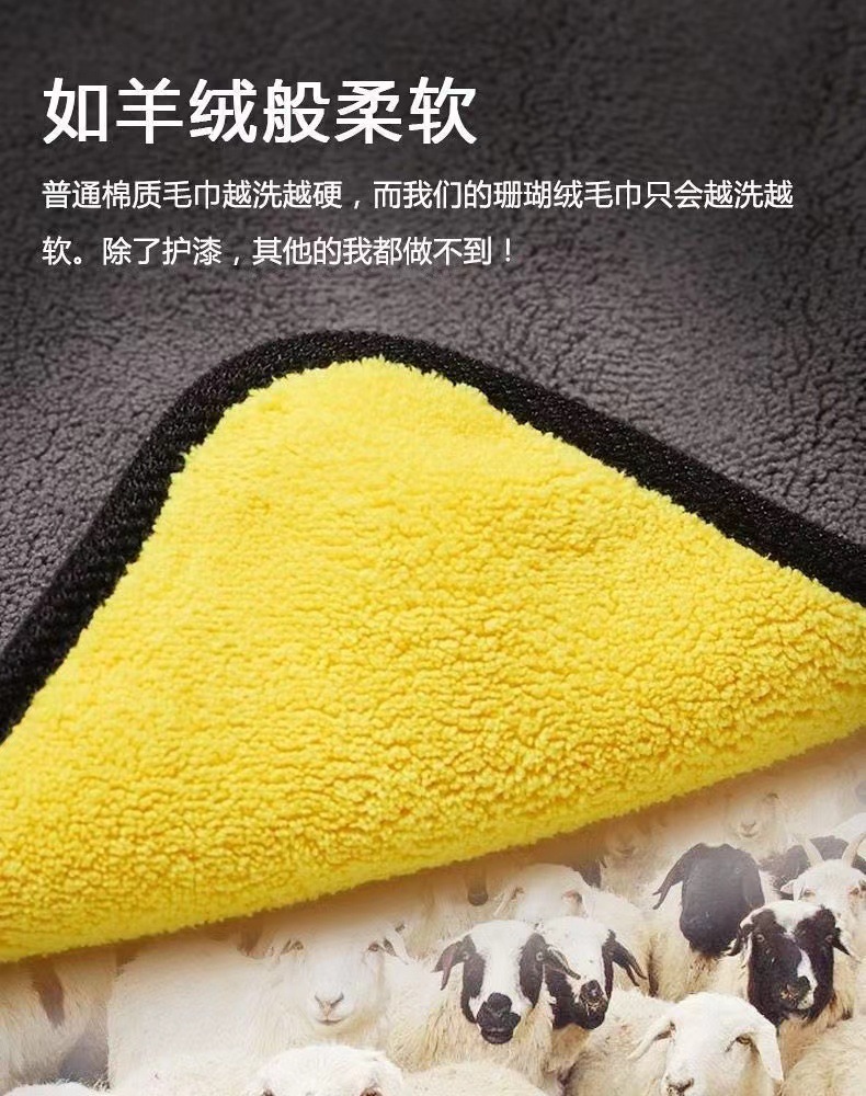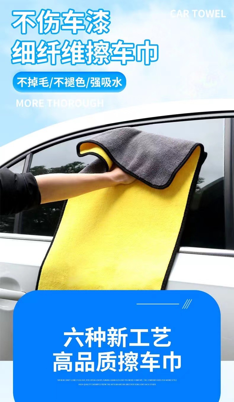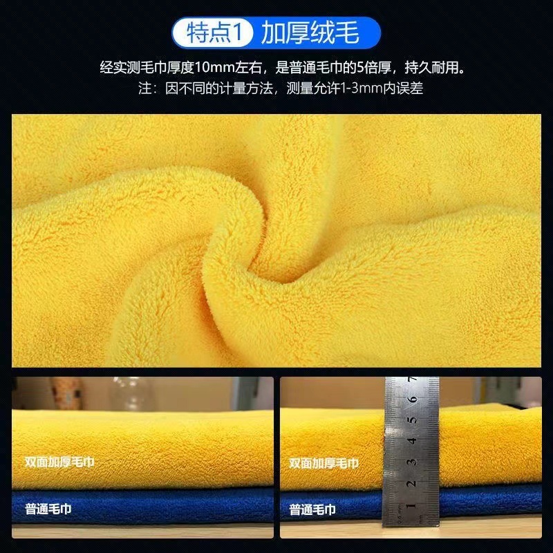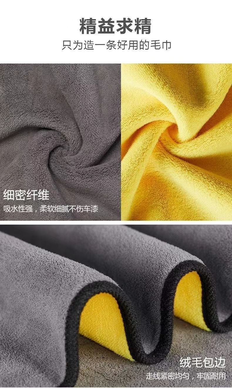 双色毛巾双面加厚吸水珊瑚绒擦车巾家用宠物巾汽车洗车巾一件批发