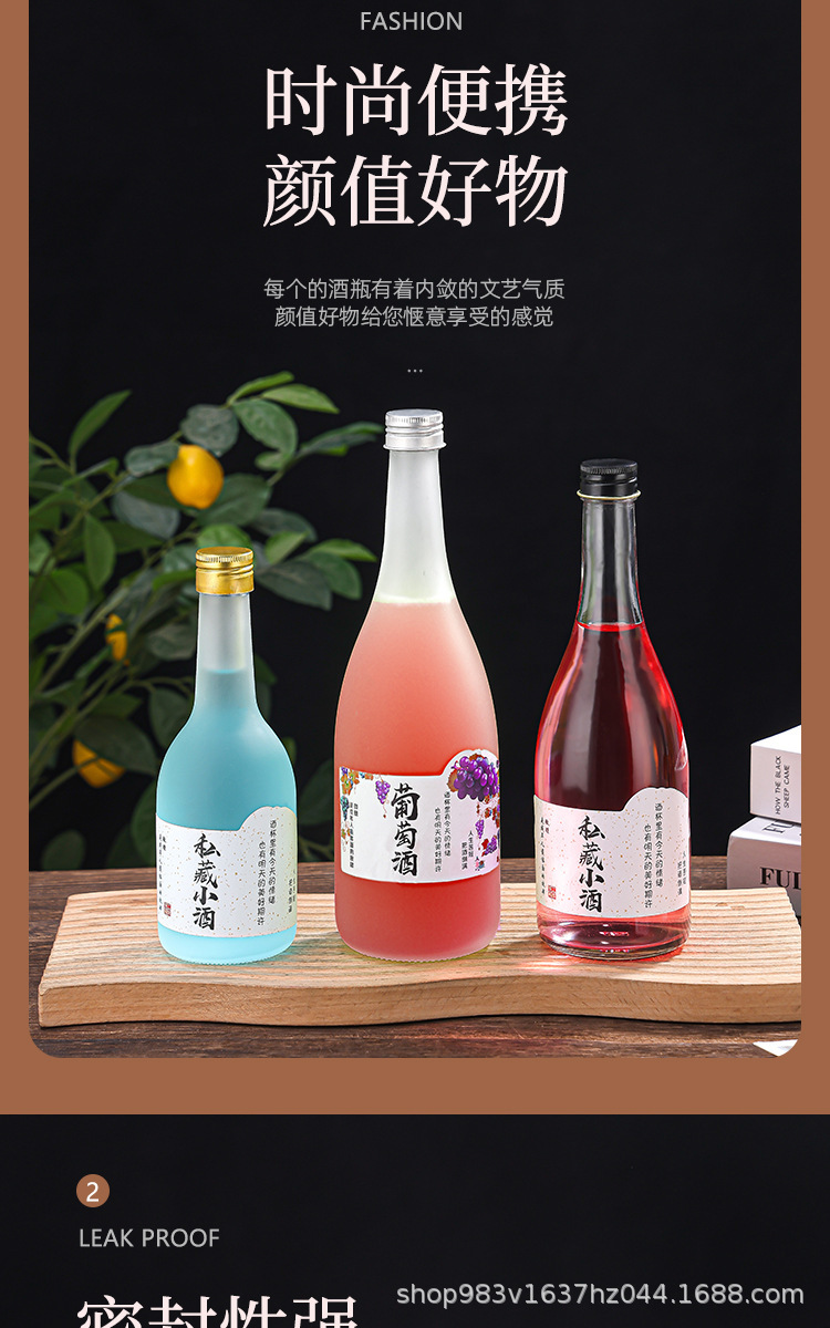 果酒瓶加厚饮料果酒玻璃磨砂空瓶自酿青梅酒瓶创意密封米酒分装瓶