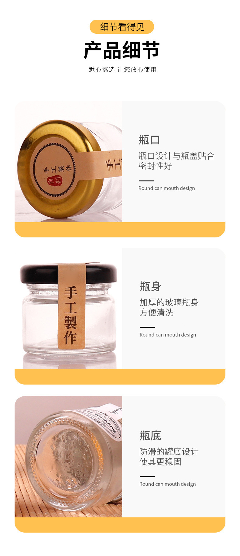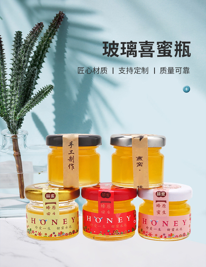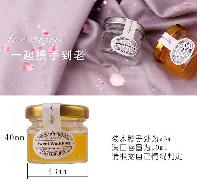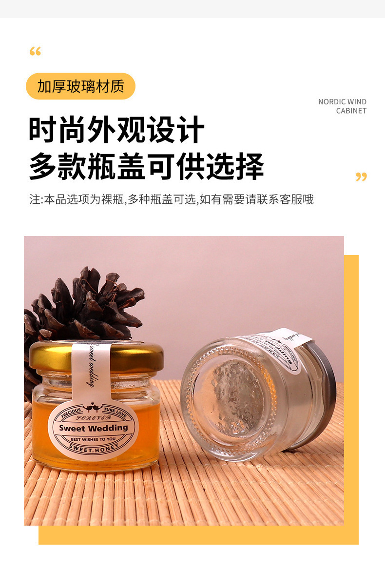 喜蜜瓶供应批发25ml透明玻璃耐高温小号广口蜂蜜瓶果酱分装空瓶子