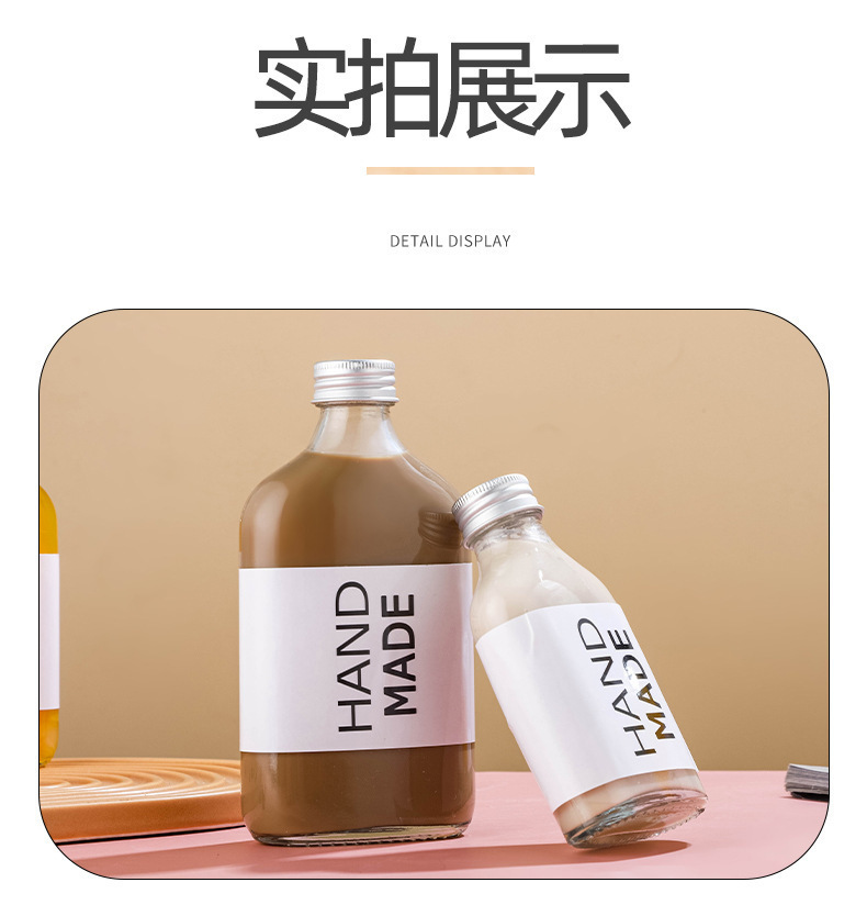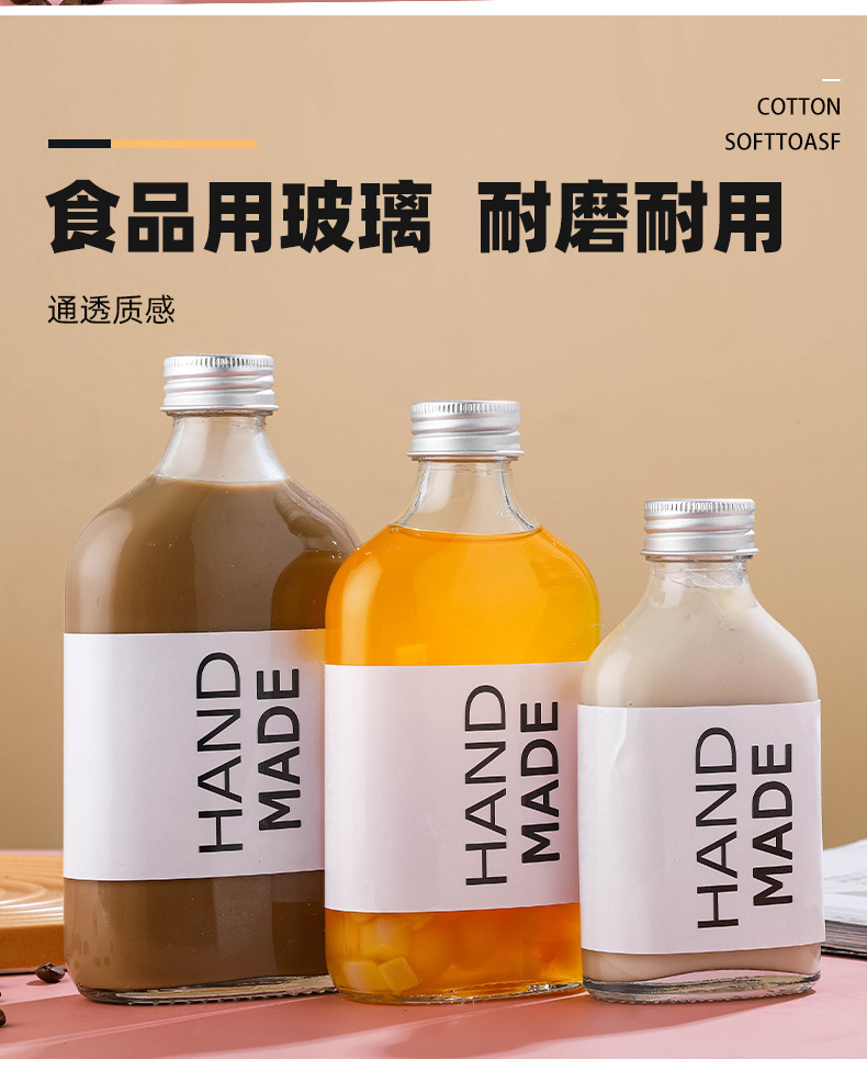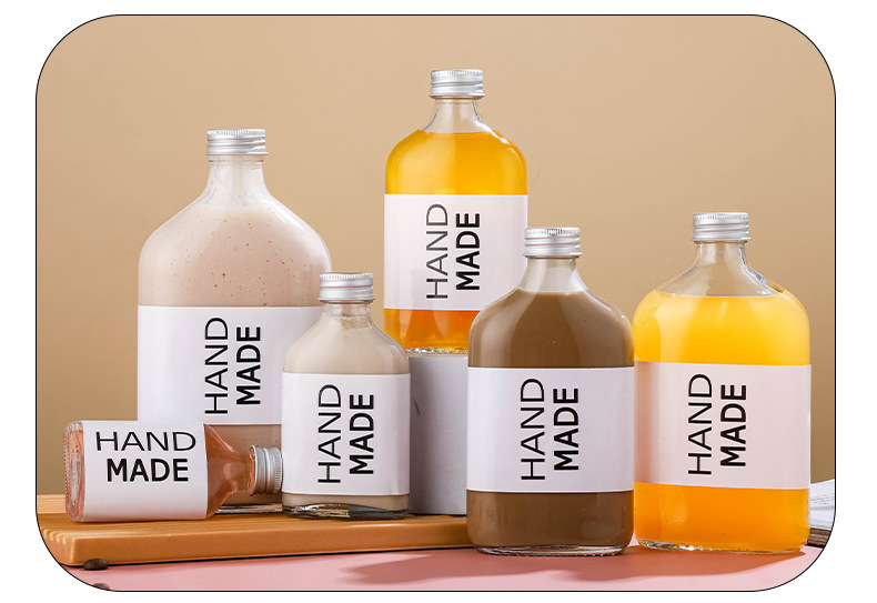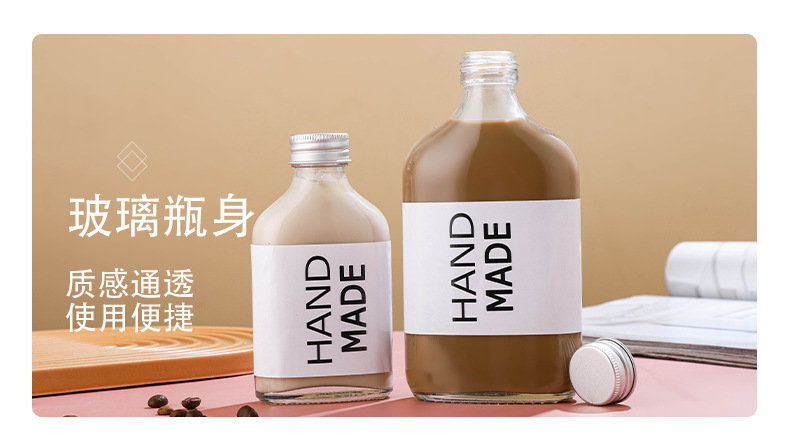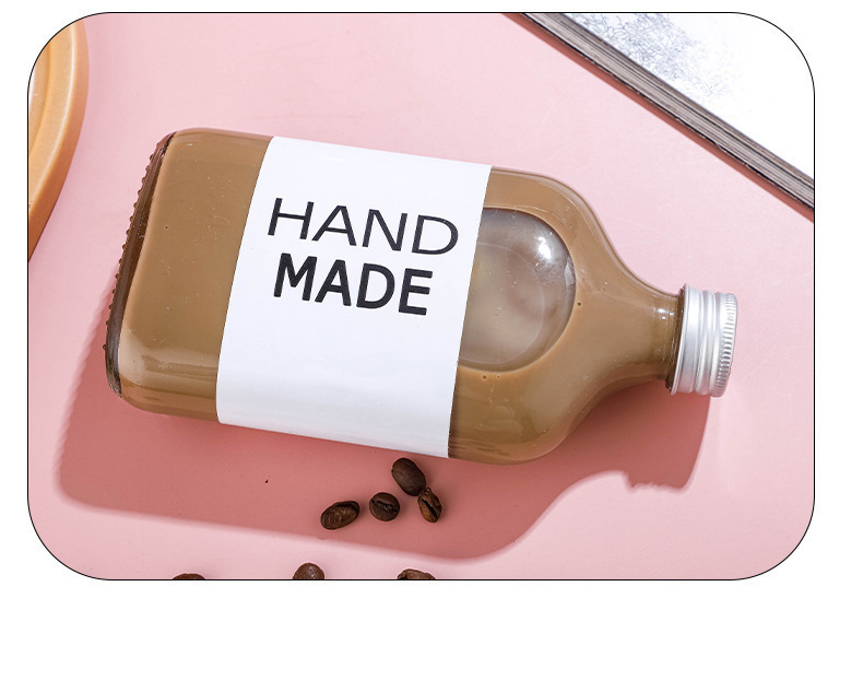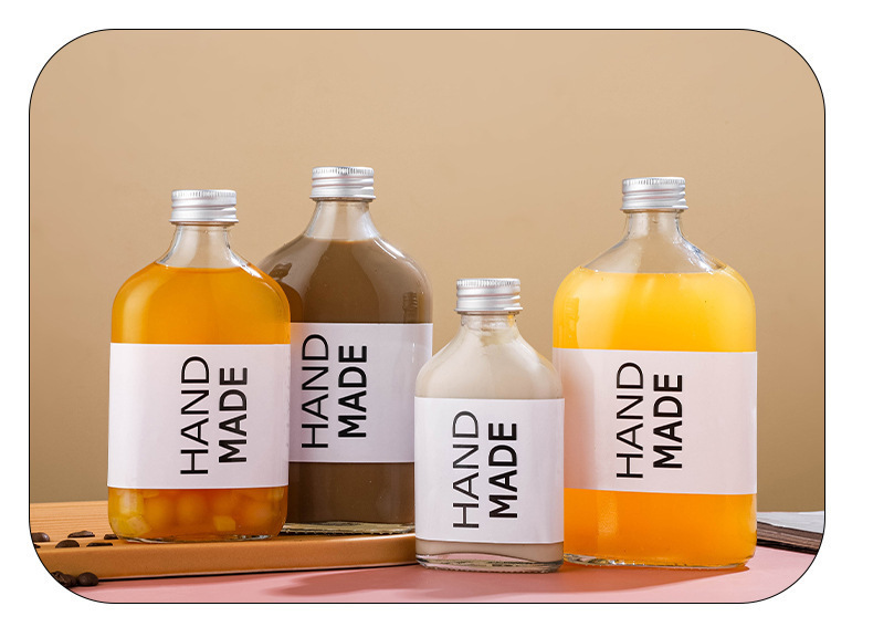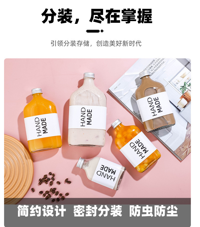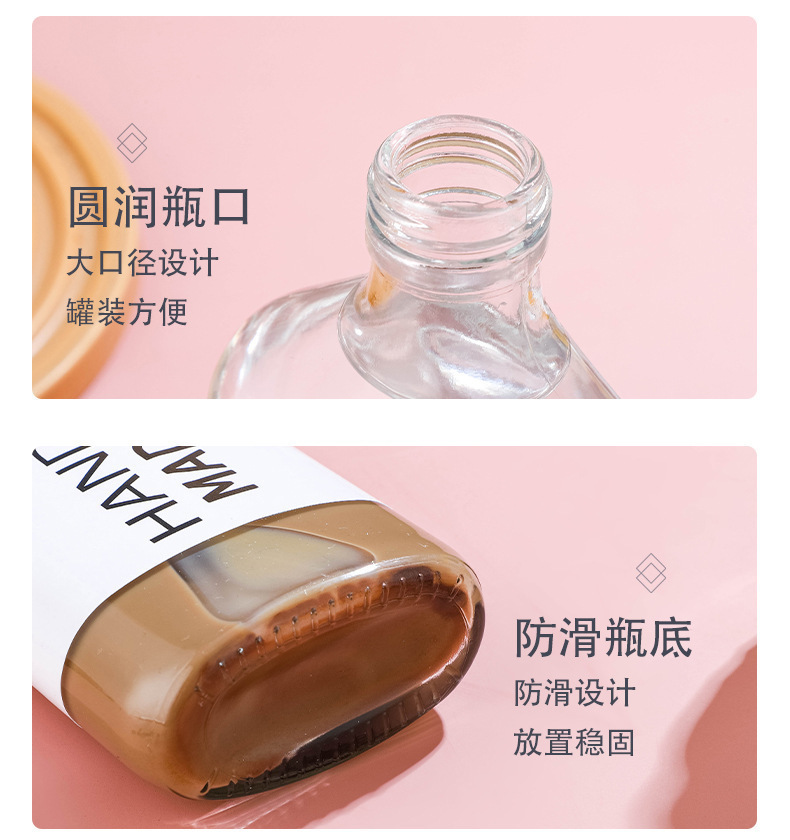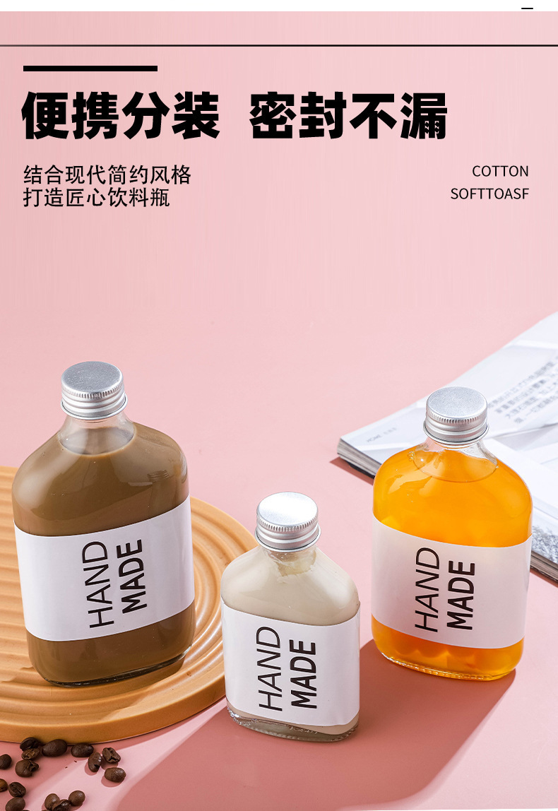 现货批发透明果酒瓶玻璃饮料瓶创意便携式扁果汁瓶咖啡奶茶瓶