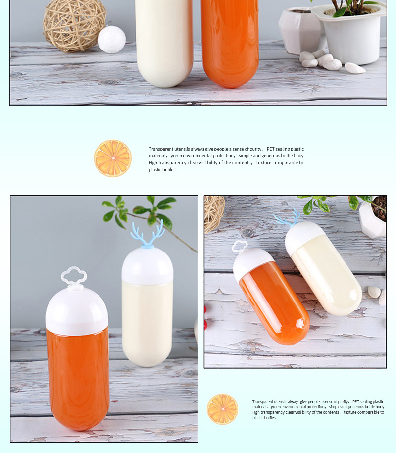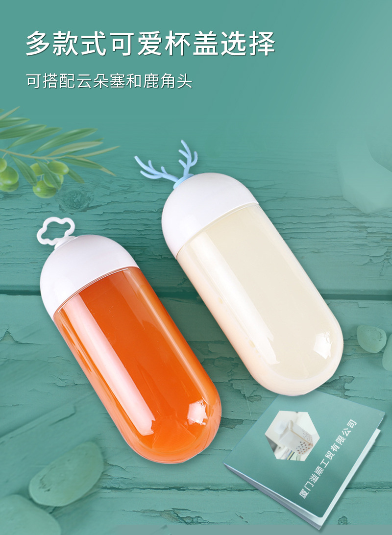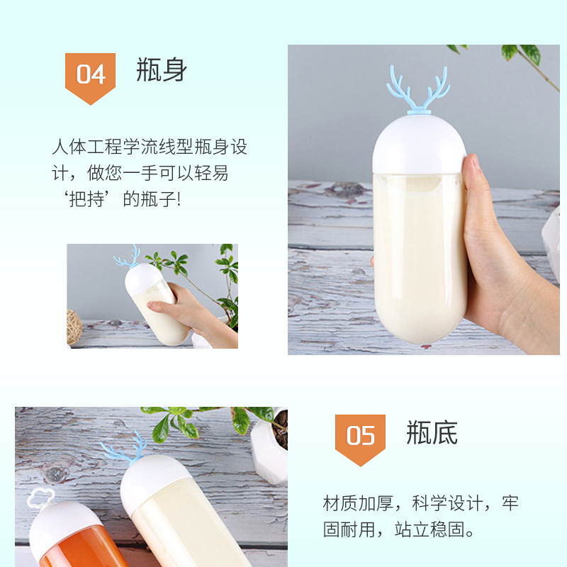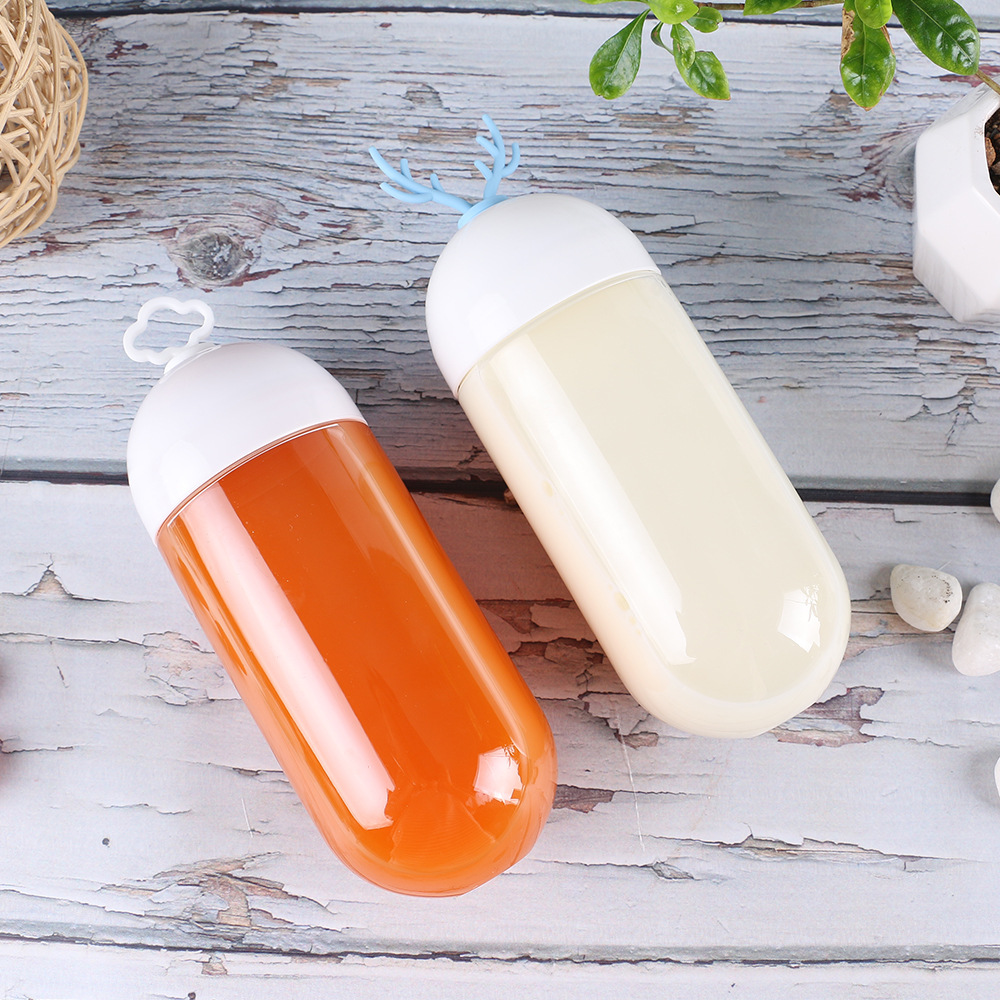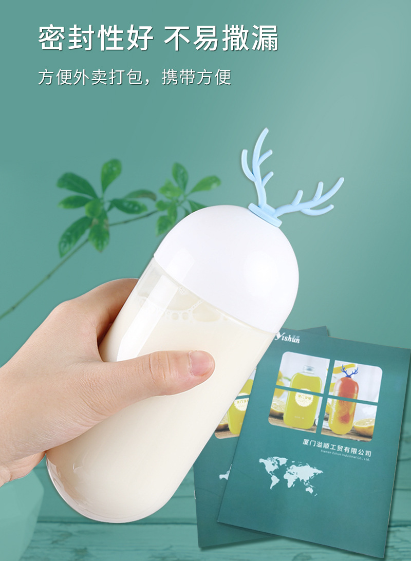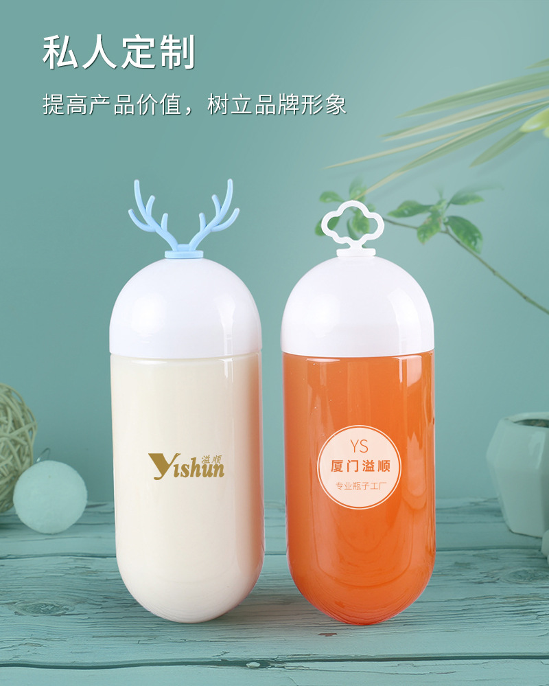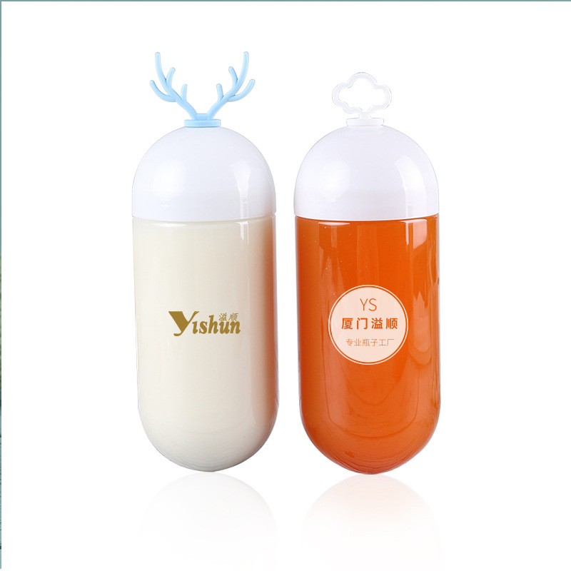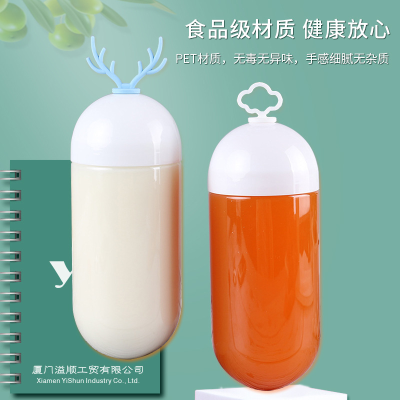 创意鹿角胶囊瓶透明一次性PET奶茶瓶外带饮料带盖网红塑料杯工厂