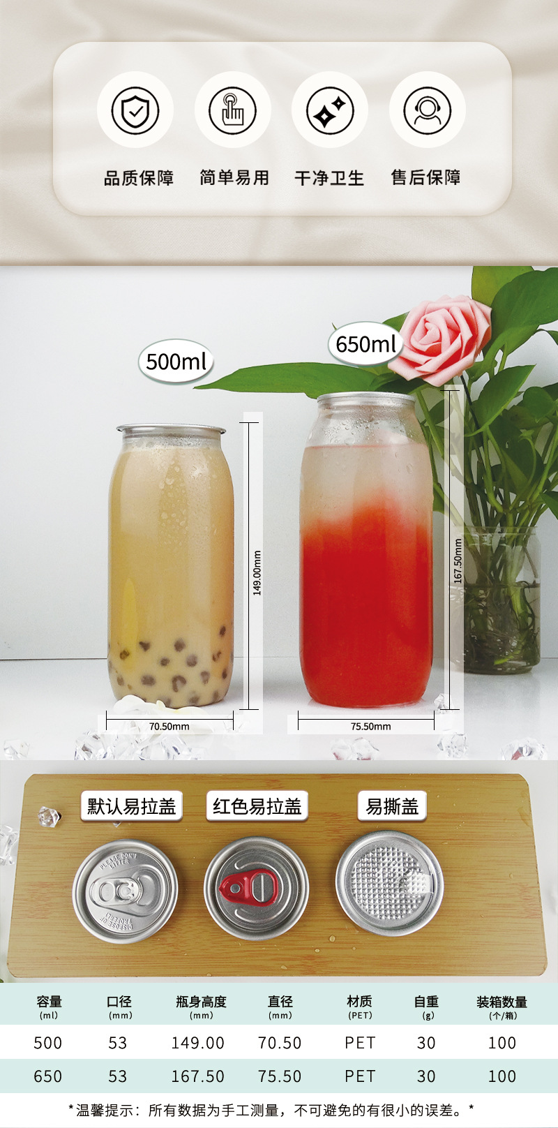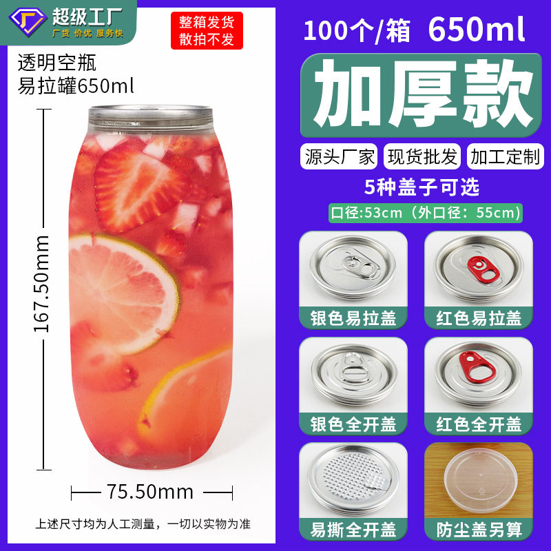 一次性PET易拉罐塑料食品罐 YS-650ml透明奶茶瓶饮料瓶密封罐工厂