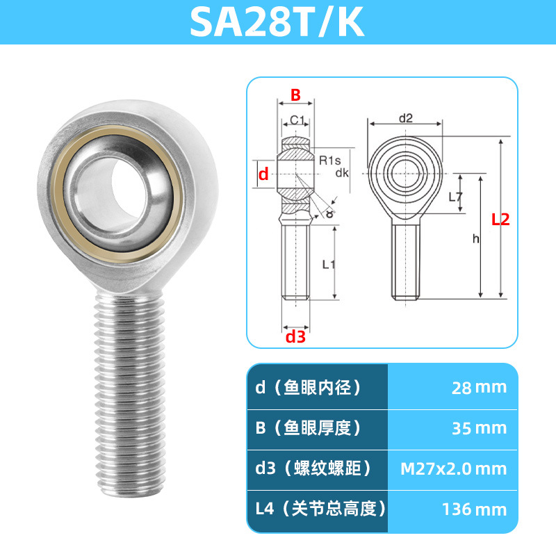 鱼眼杆端关节轴承高精度气缸接头SI SA 5 6 8 10 12 14 16 18 20