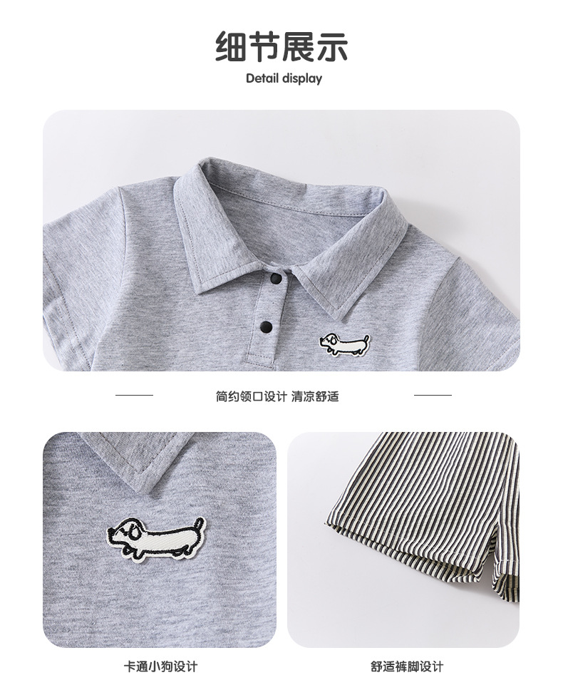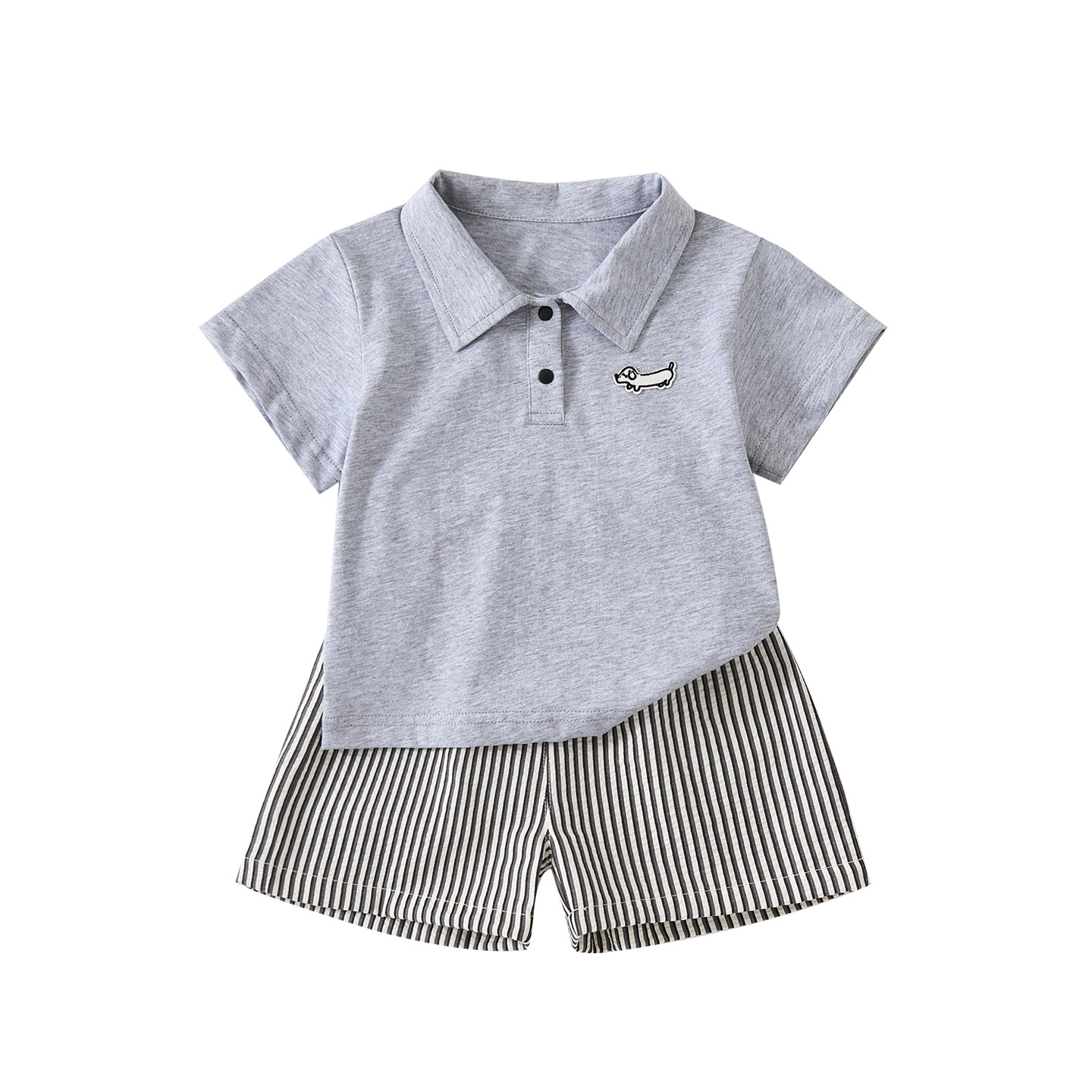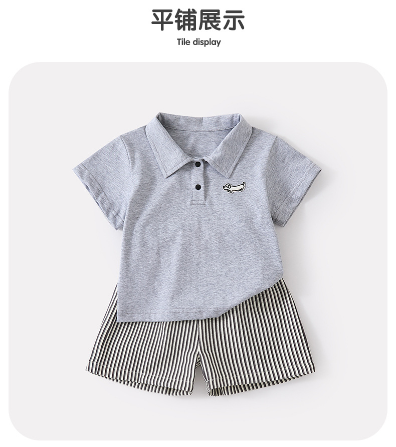 夏季新款婴幼儿韩版卡通小狗POLO衫短袖宝宝薄款休闲条纹短裤童装