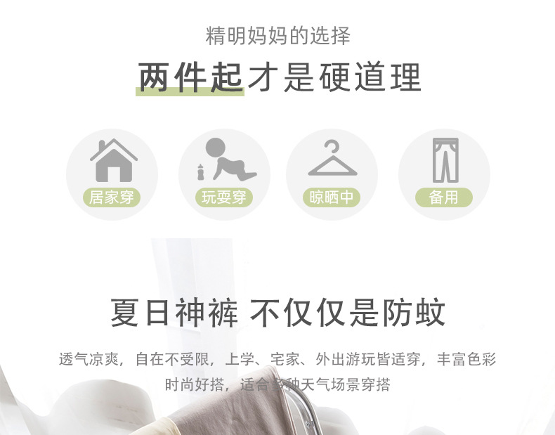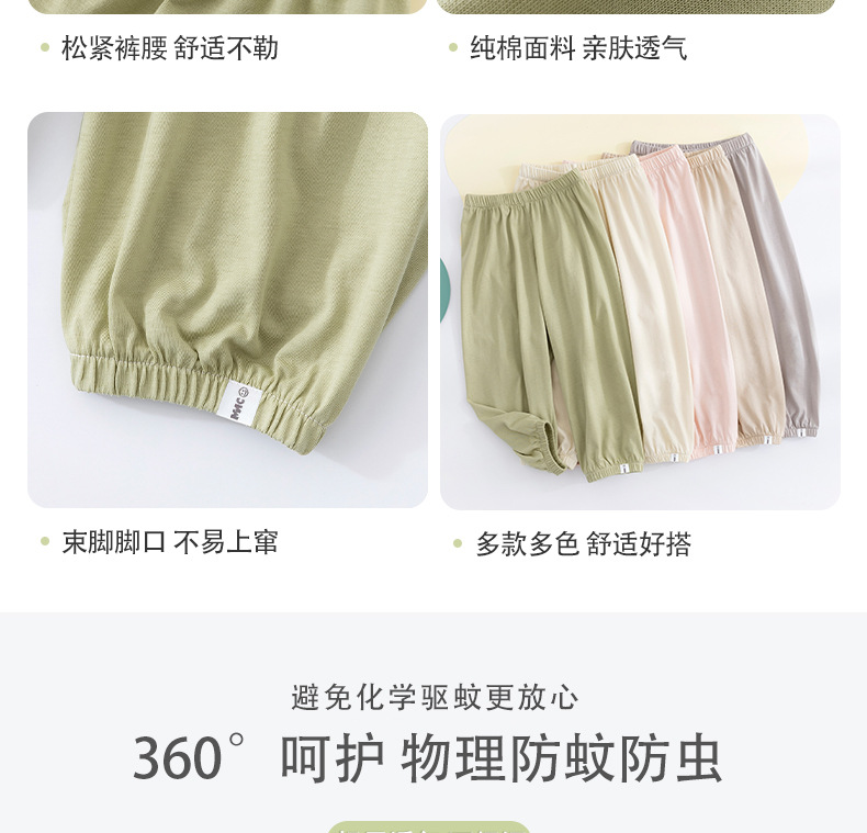 纯棉儿童防蚊裤夏季薄款男童女童夏天中小童裤裤子a类夏透气柔软