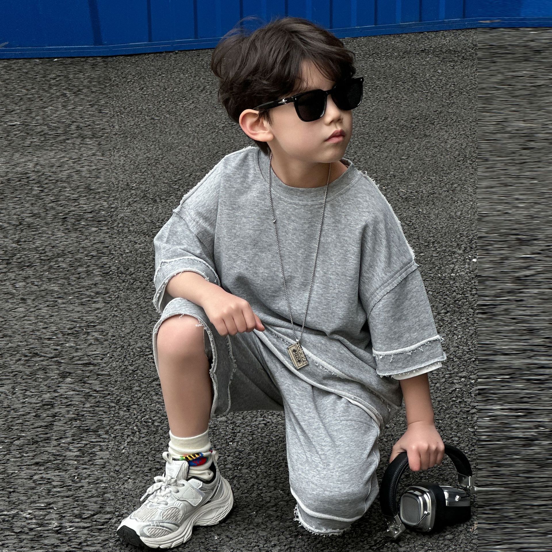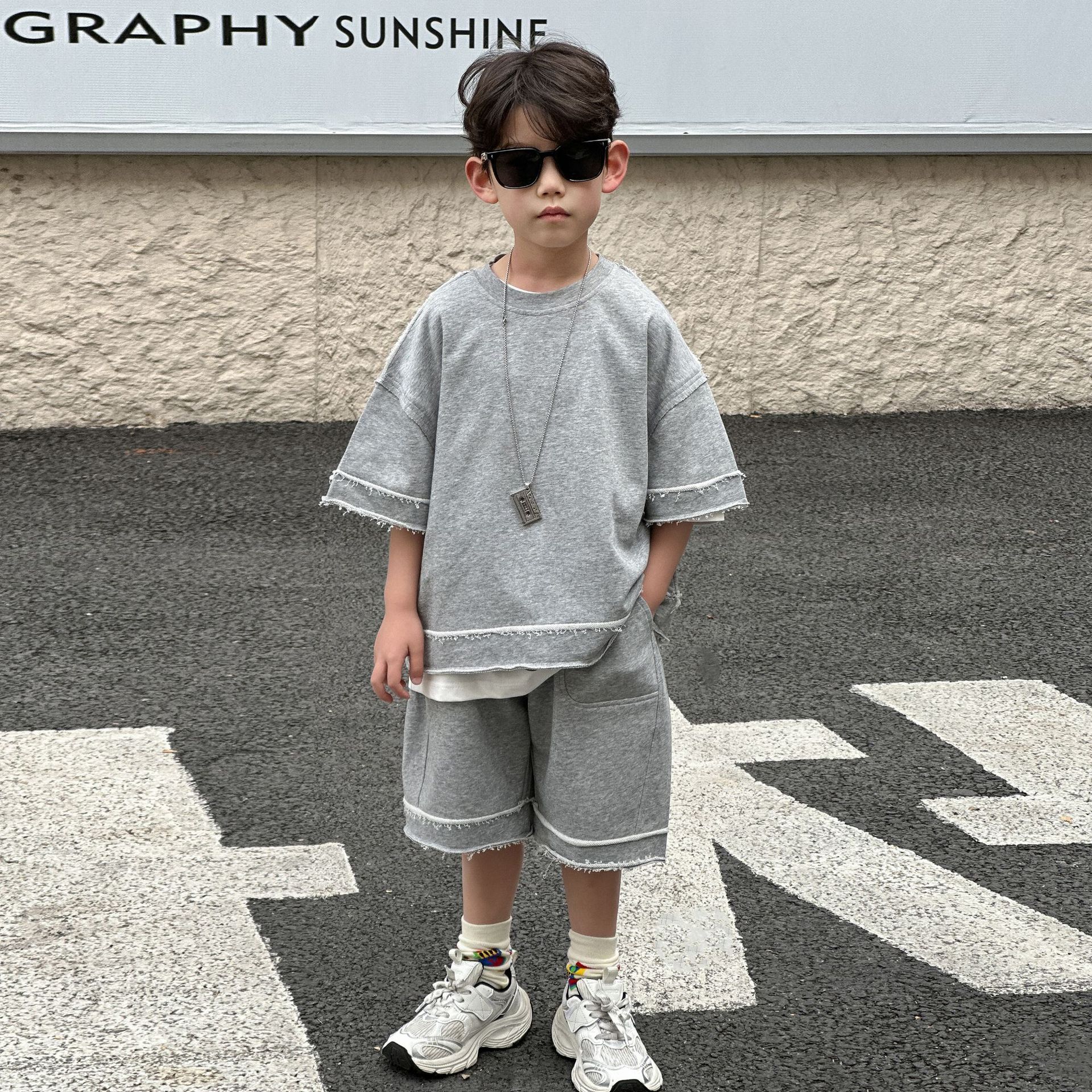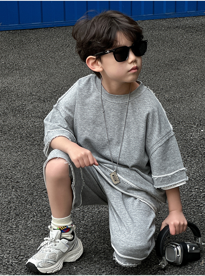 童装男童夏款短袖短裤套装2025新款夏季儿童韩版运动t恤两件套潮6