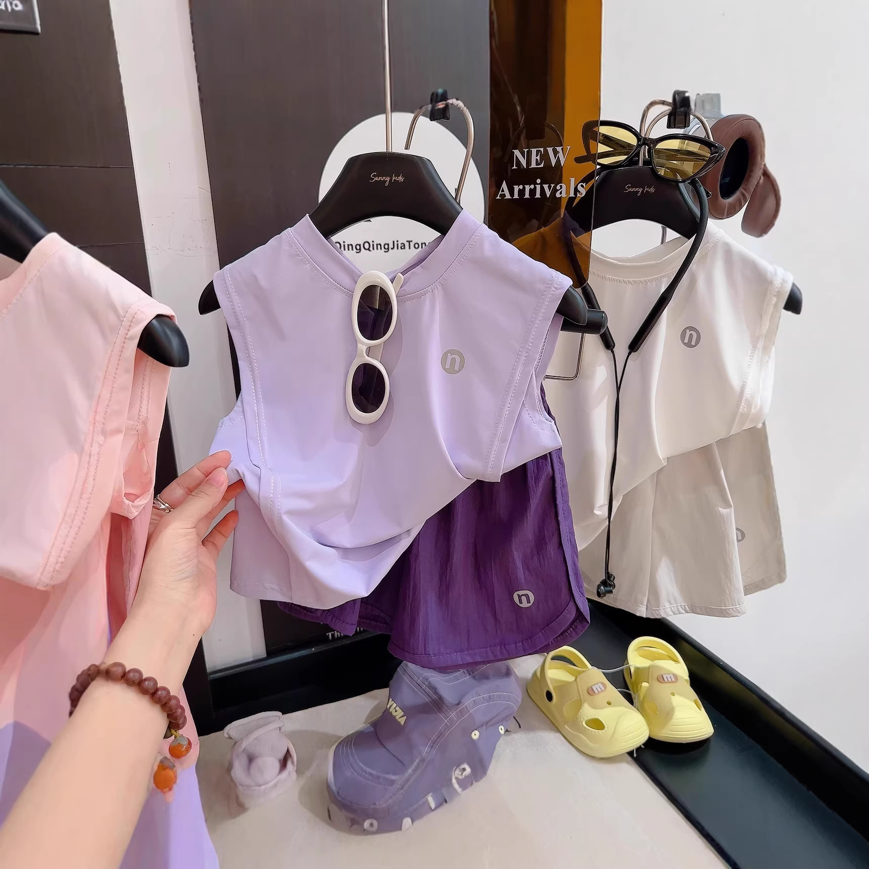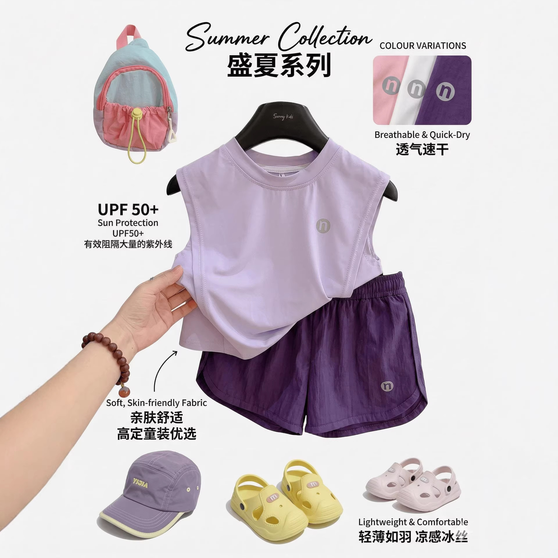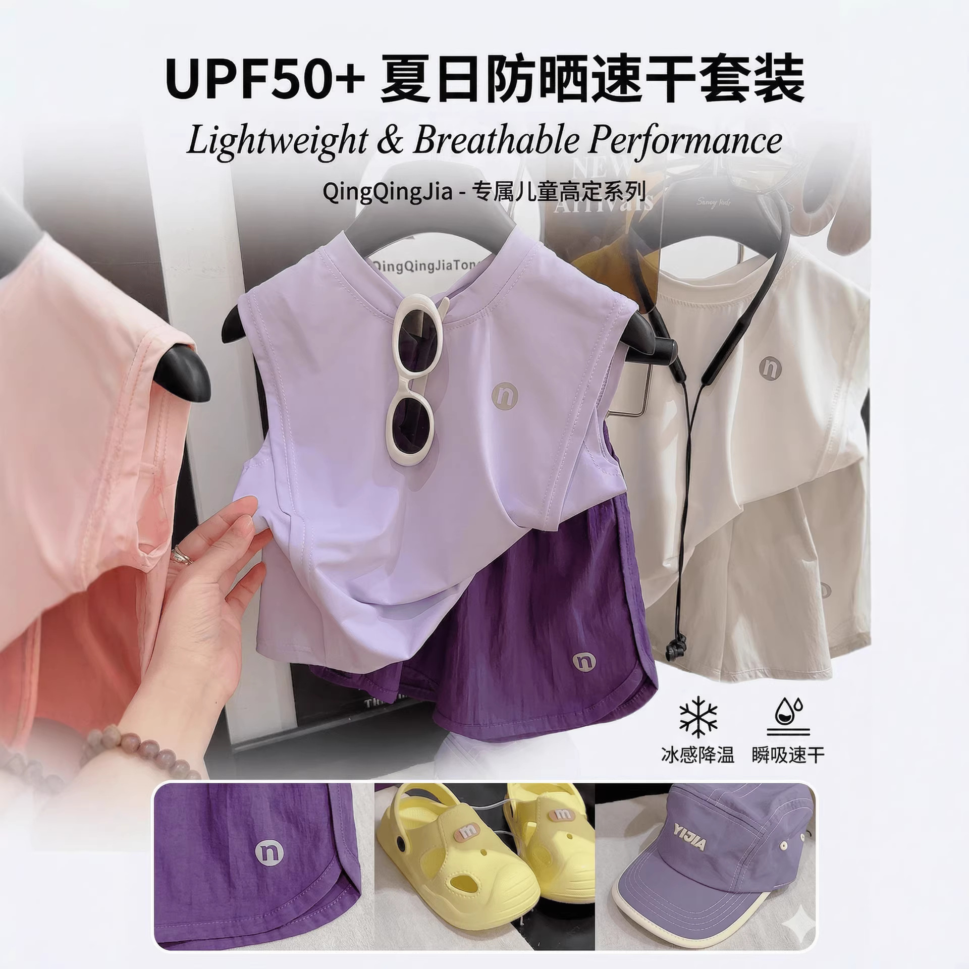 2026夏季新款儿童韩版爆款冰感防晒速干休闲运动宽松无袖背心套装