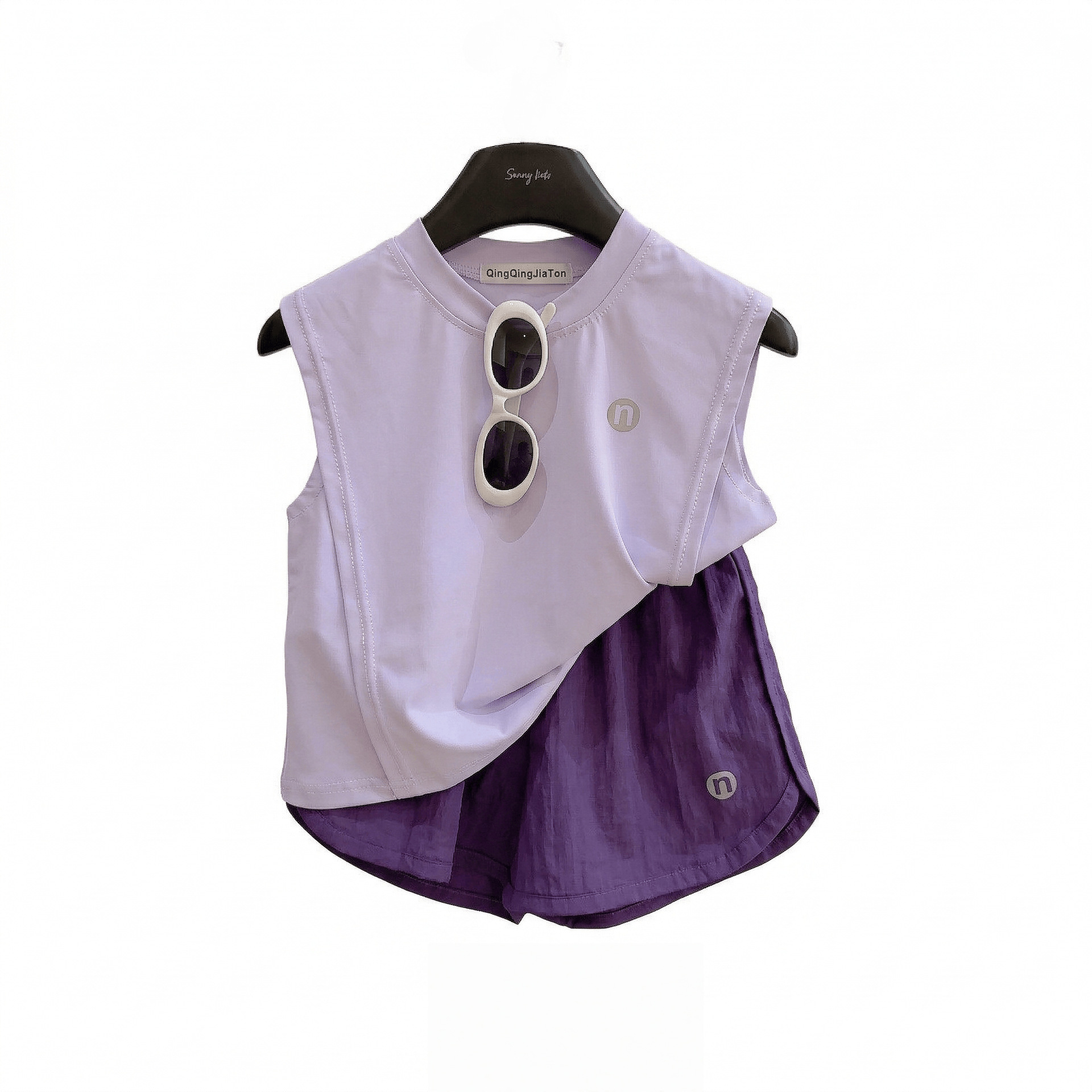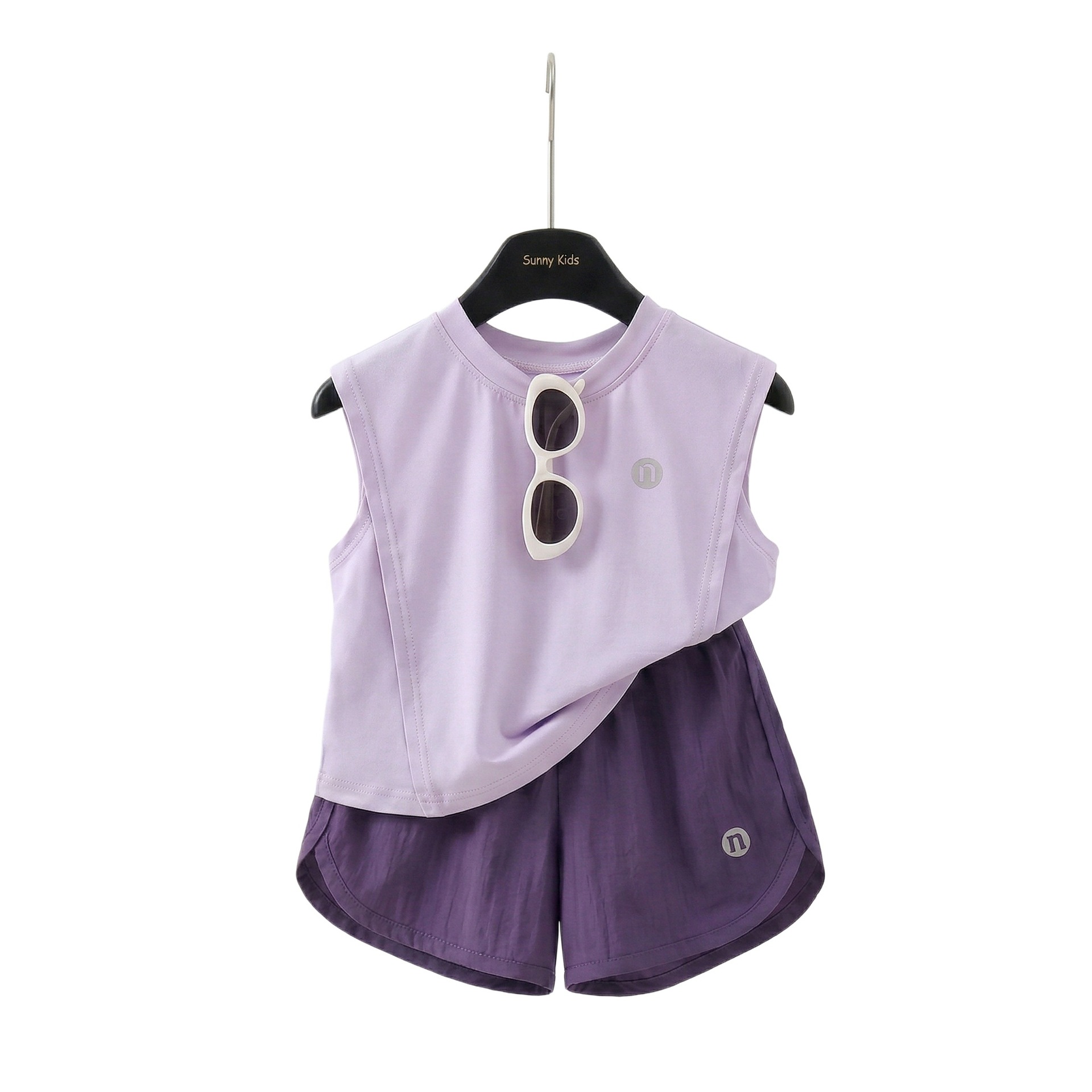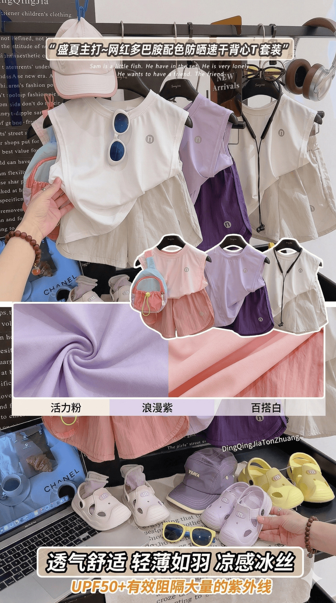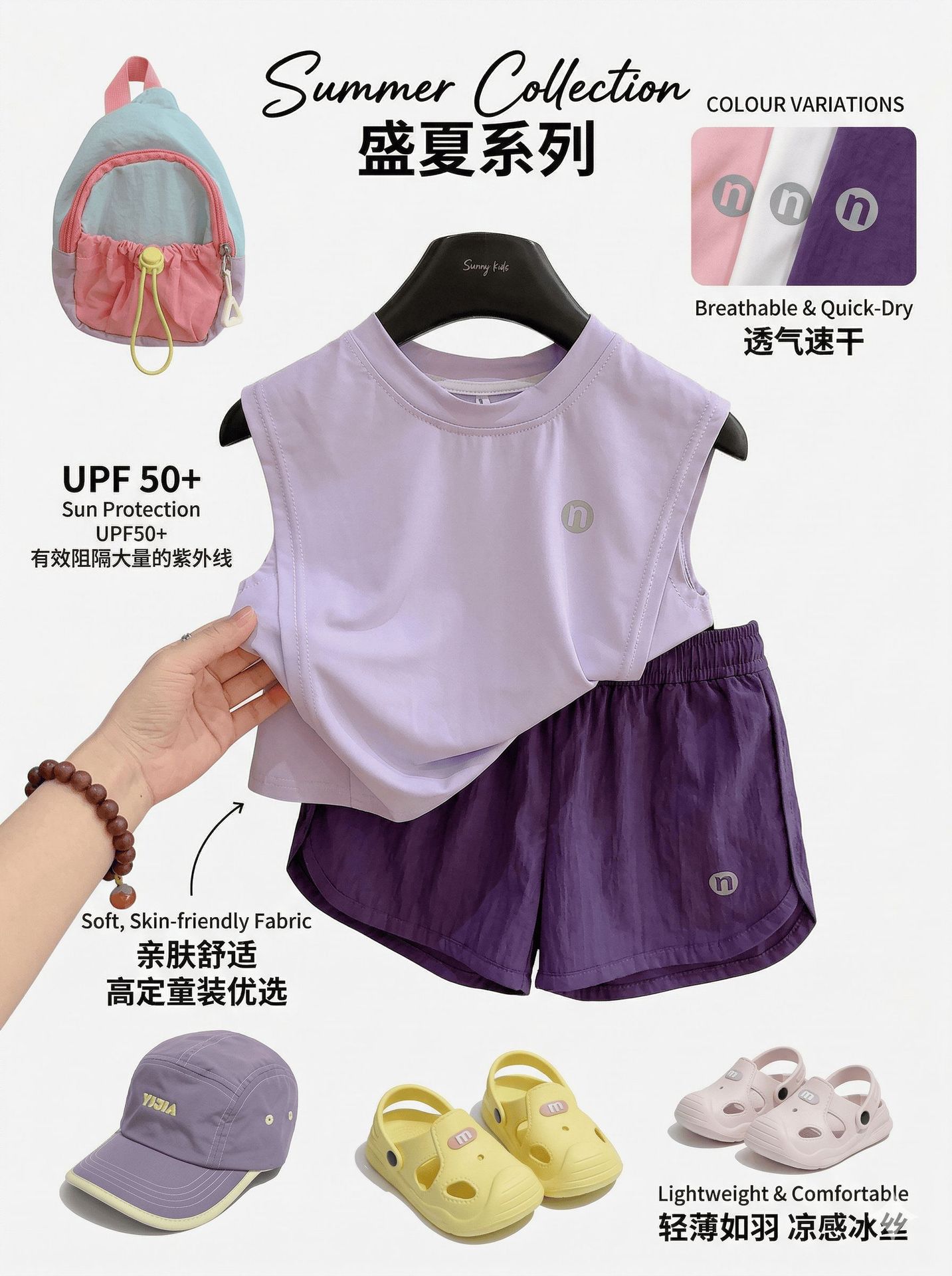2026夏季新款儿童韩版爆款冰感防晒速干休闲运动宽松无袖背心套装
