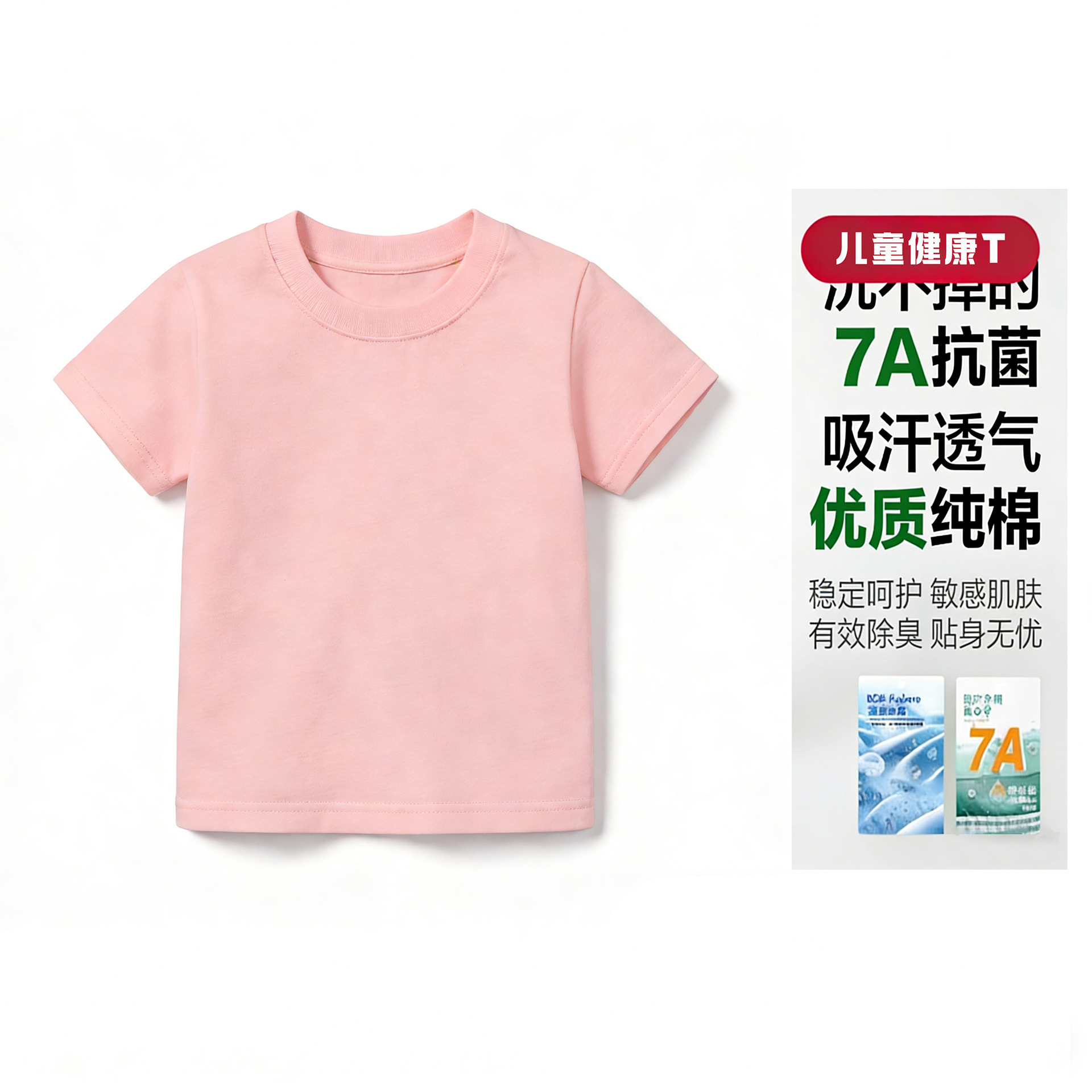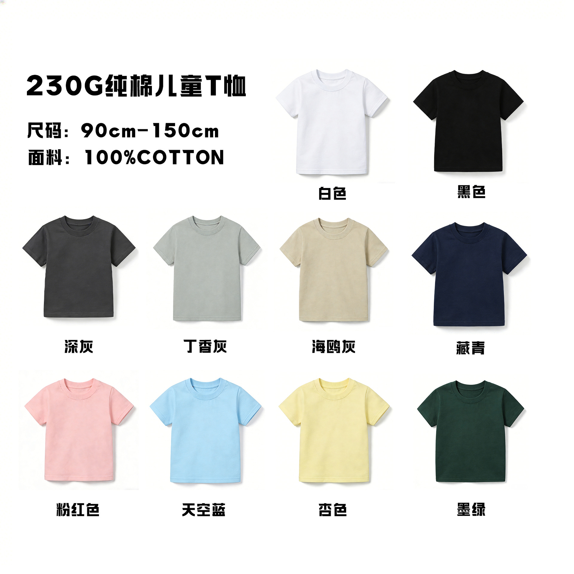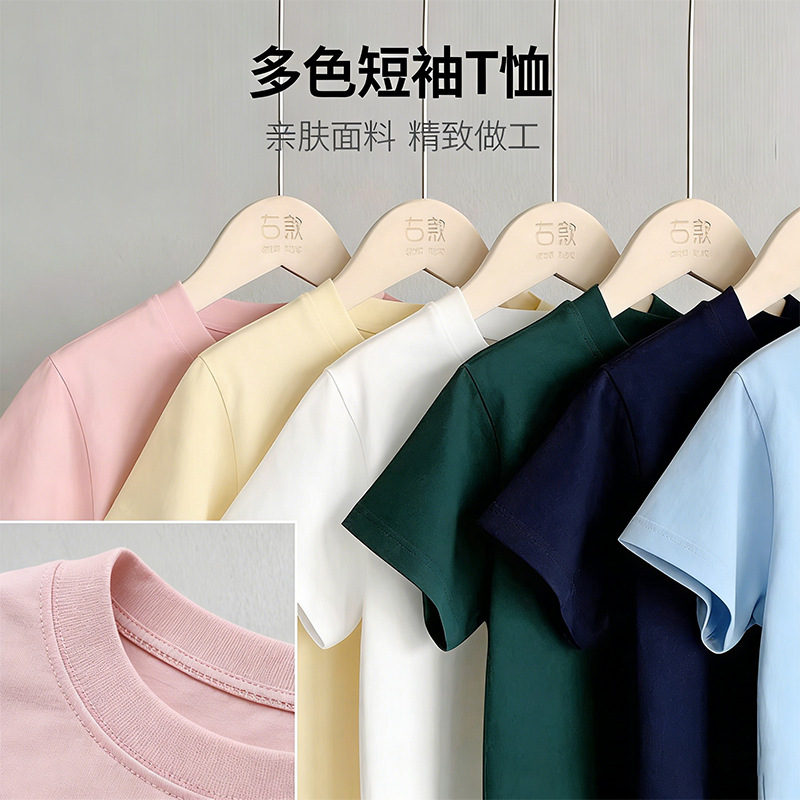 230G纯棉儿童纯色短袖t恤2026夏季男女童圆领全棉童装内搭打底衫