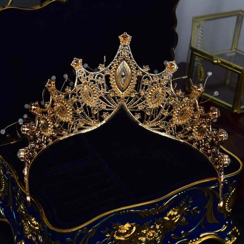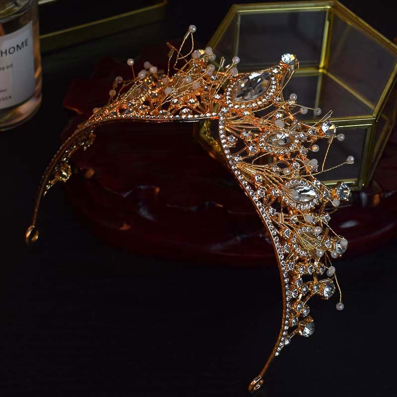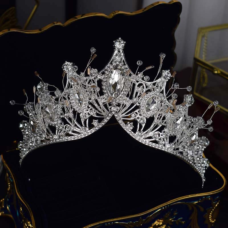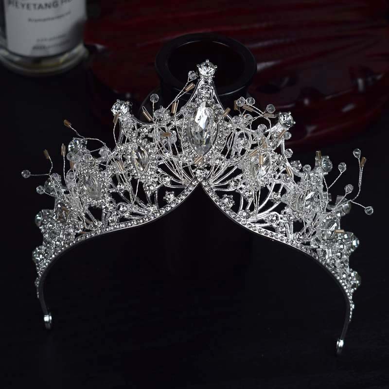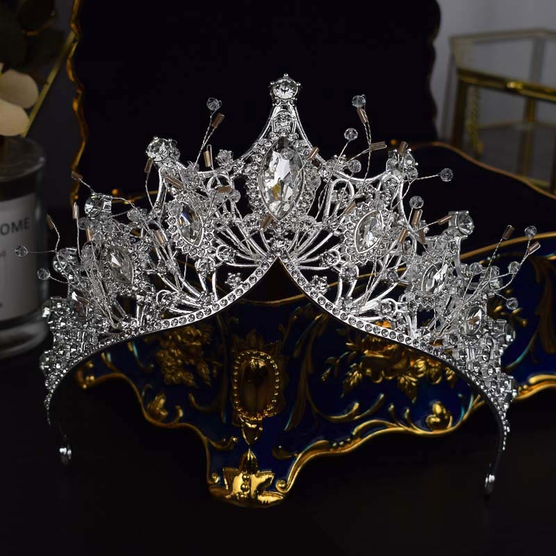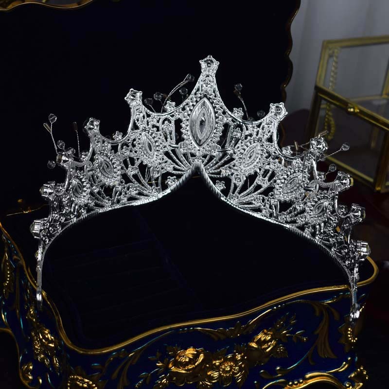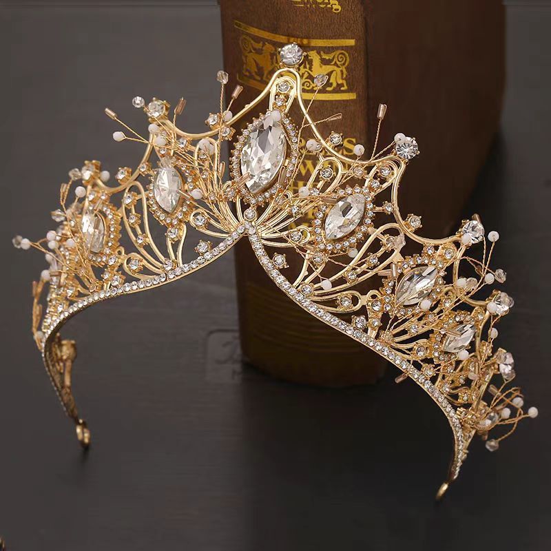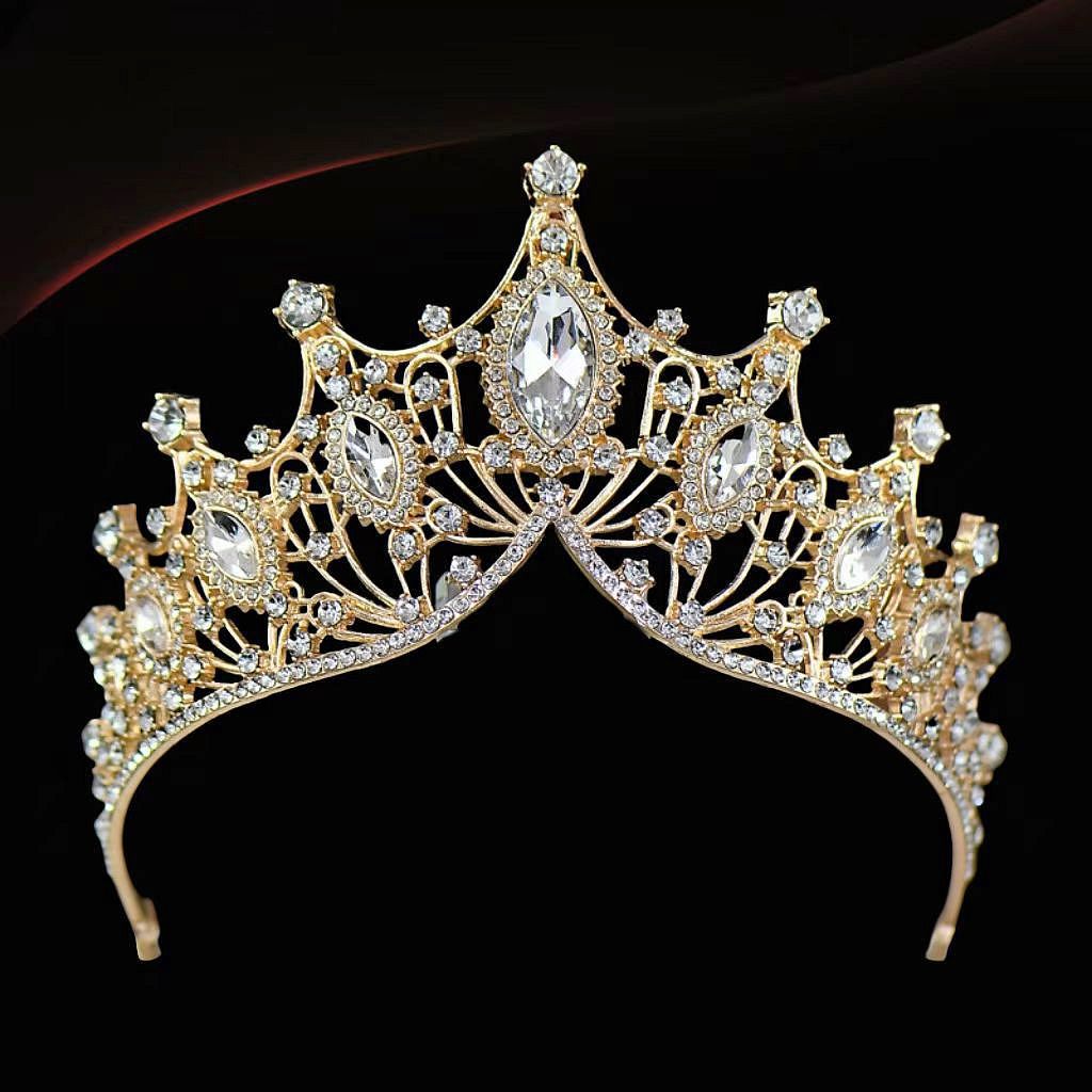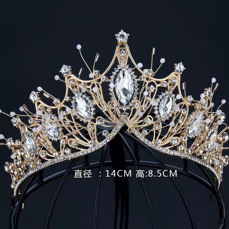 跨境欧美大皇冠水晶手工发饰女王风头冠新娘婚纱配饰冠军颁奖王冠