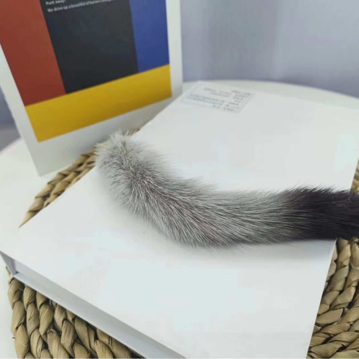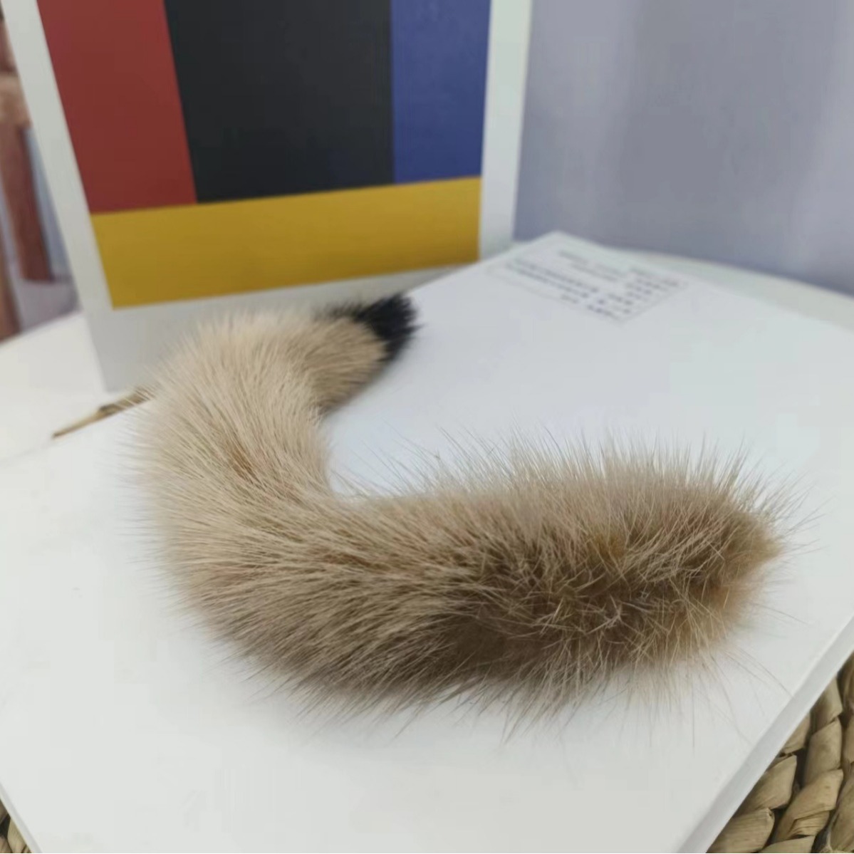 水貂尾巴汽车钥匙配饰挂件钥匙坠钥匙扣自然白色银钻扣子潮流毛球