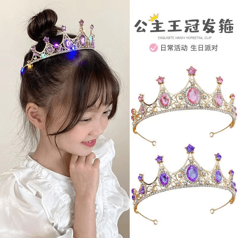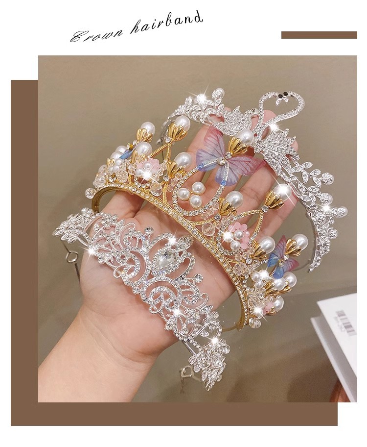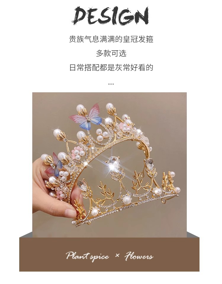 女童生日皇冠头饰女公主高端王冠发卡发箍儿童演出小女孩头箍发饰