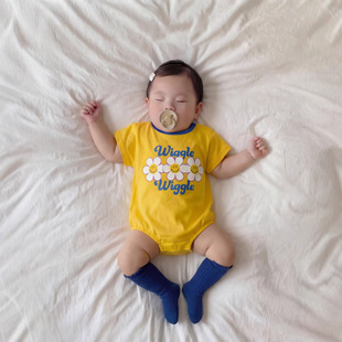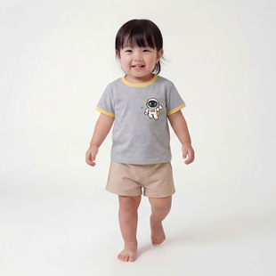 日韩童装款2025年夏季新款薄款可爱儿童纯色幼儿圆领纯色短袖