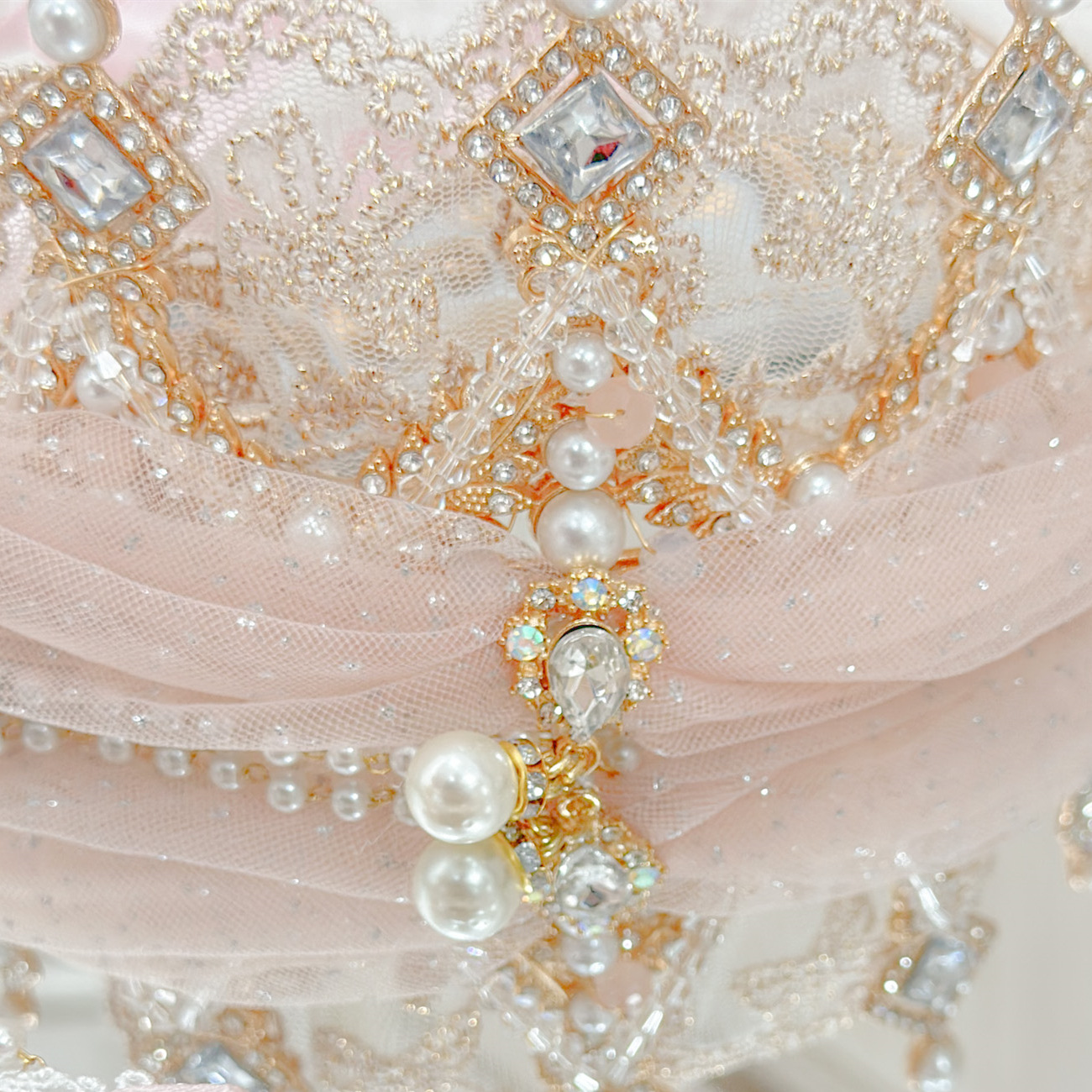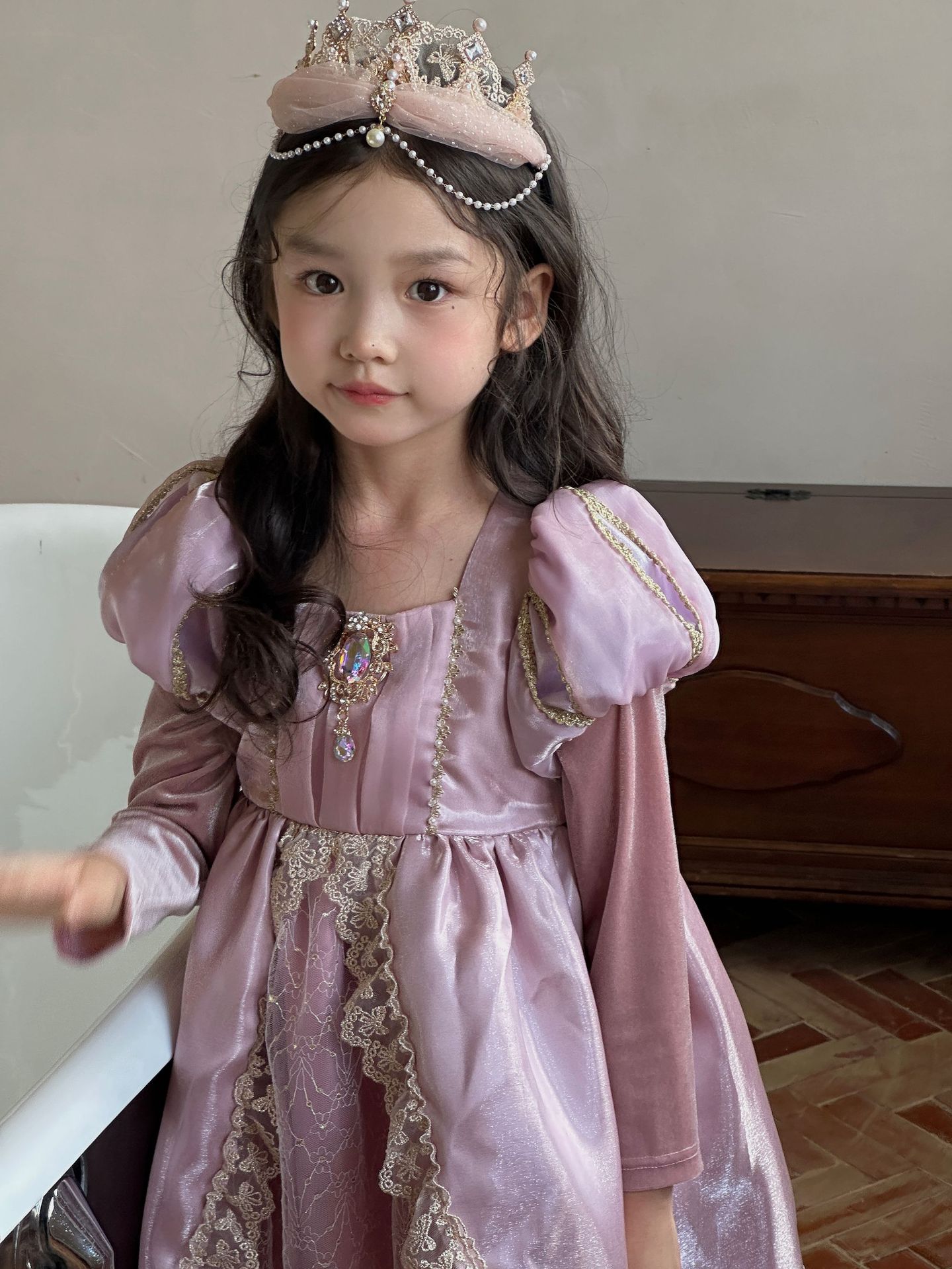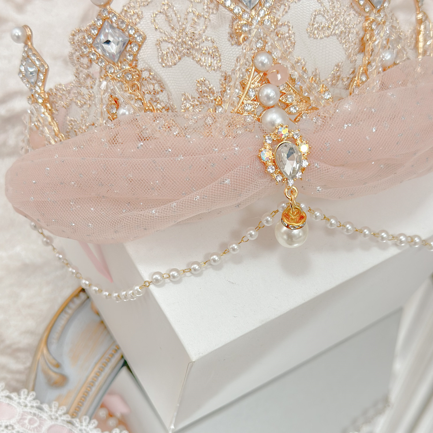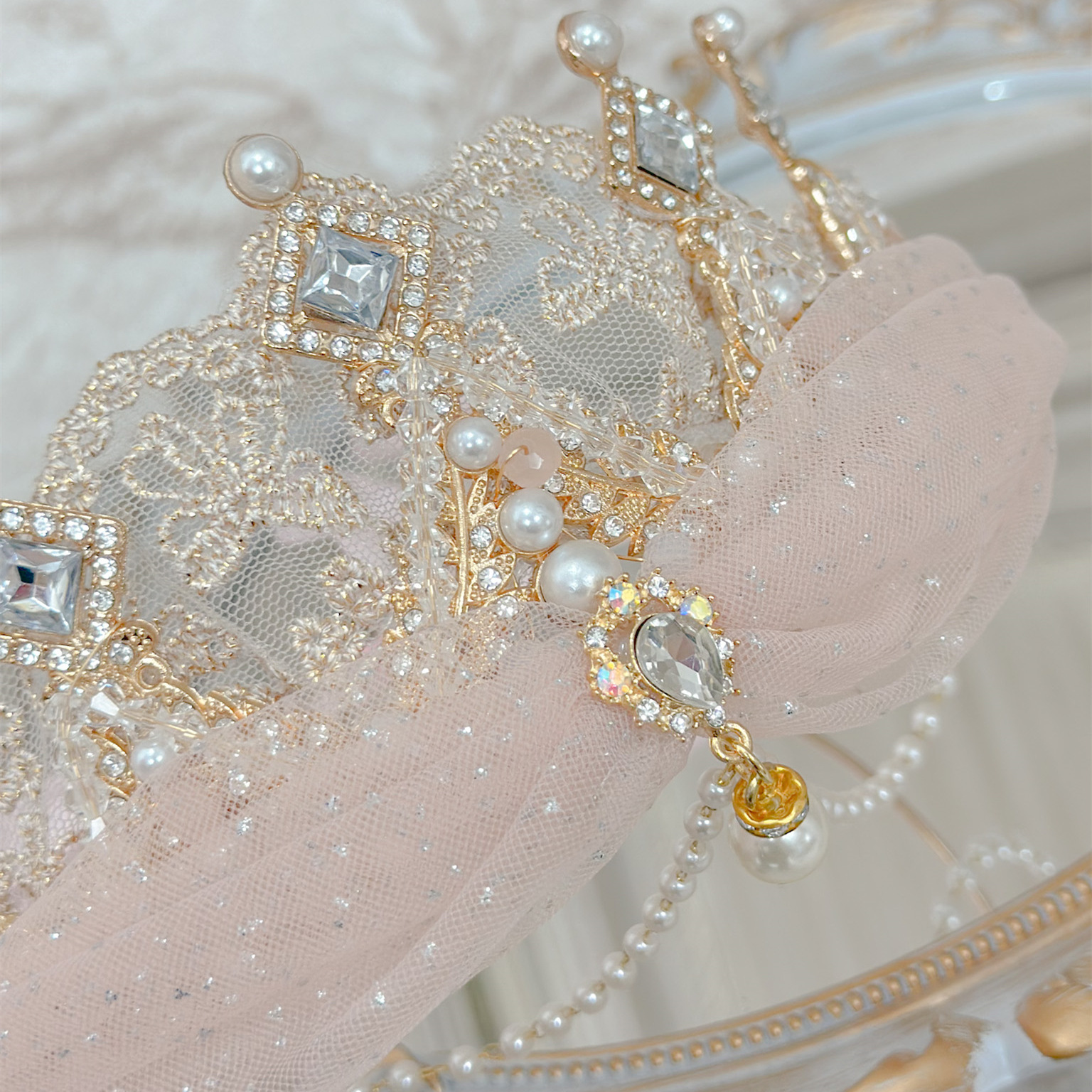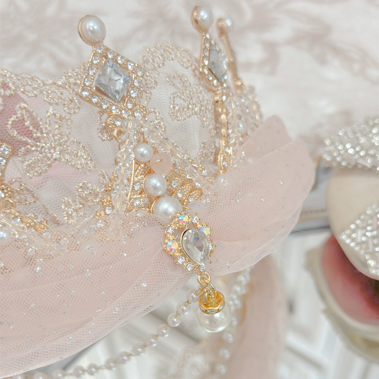 儿童宫廷风公主皇冠发饰发箍粉色蕾丝网纱珍珠宝石花边头饰超仙