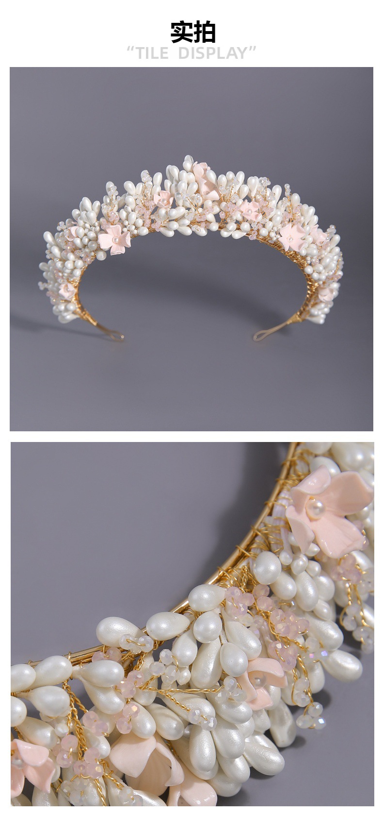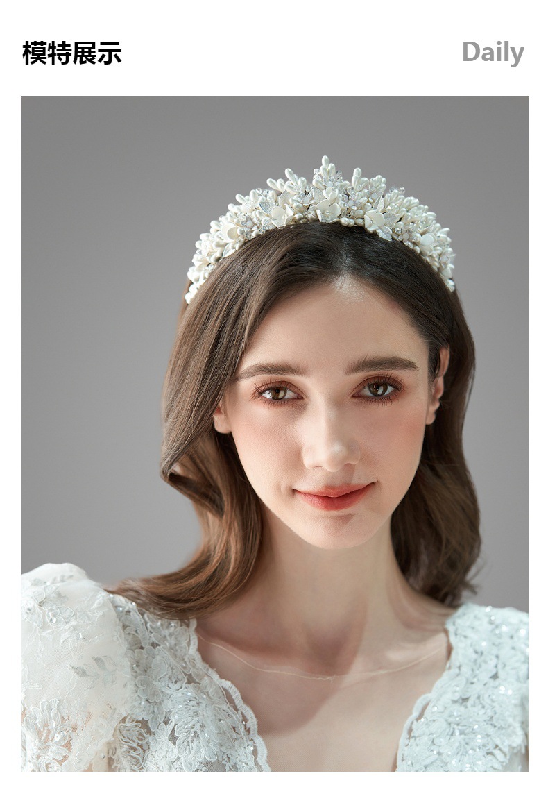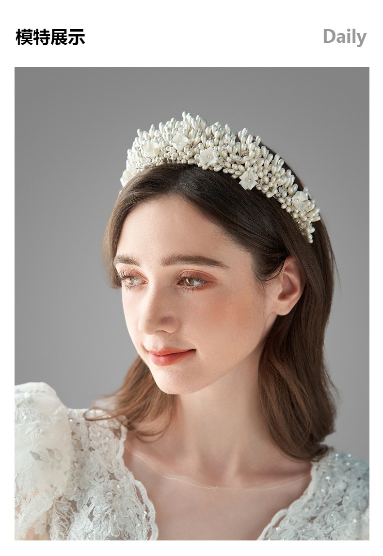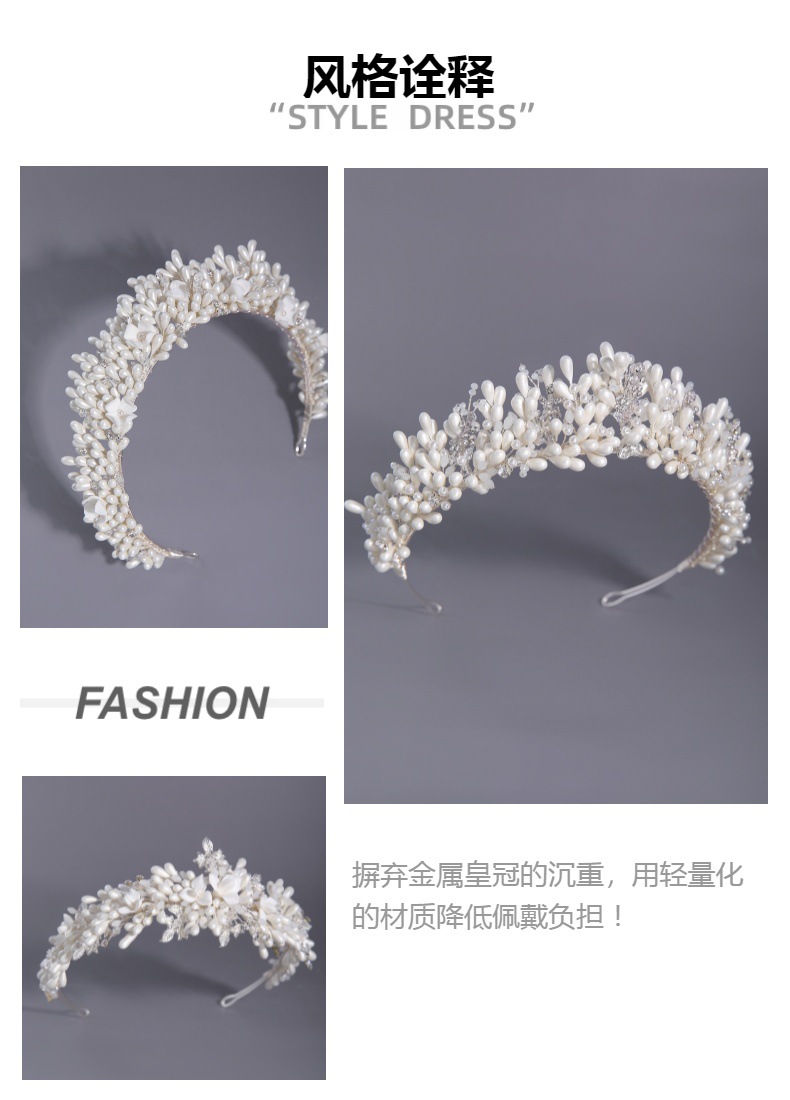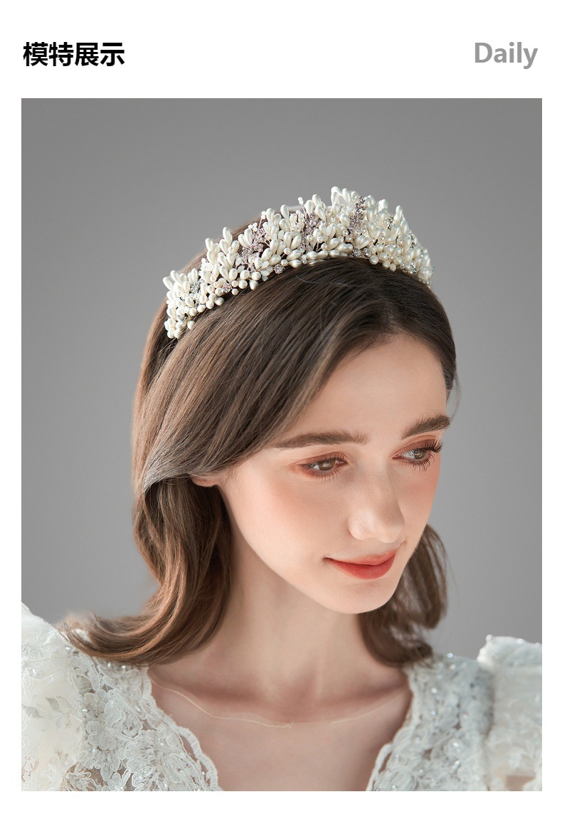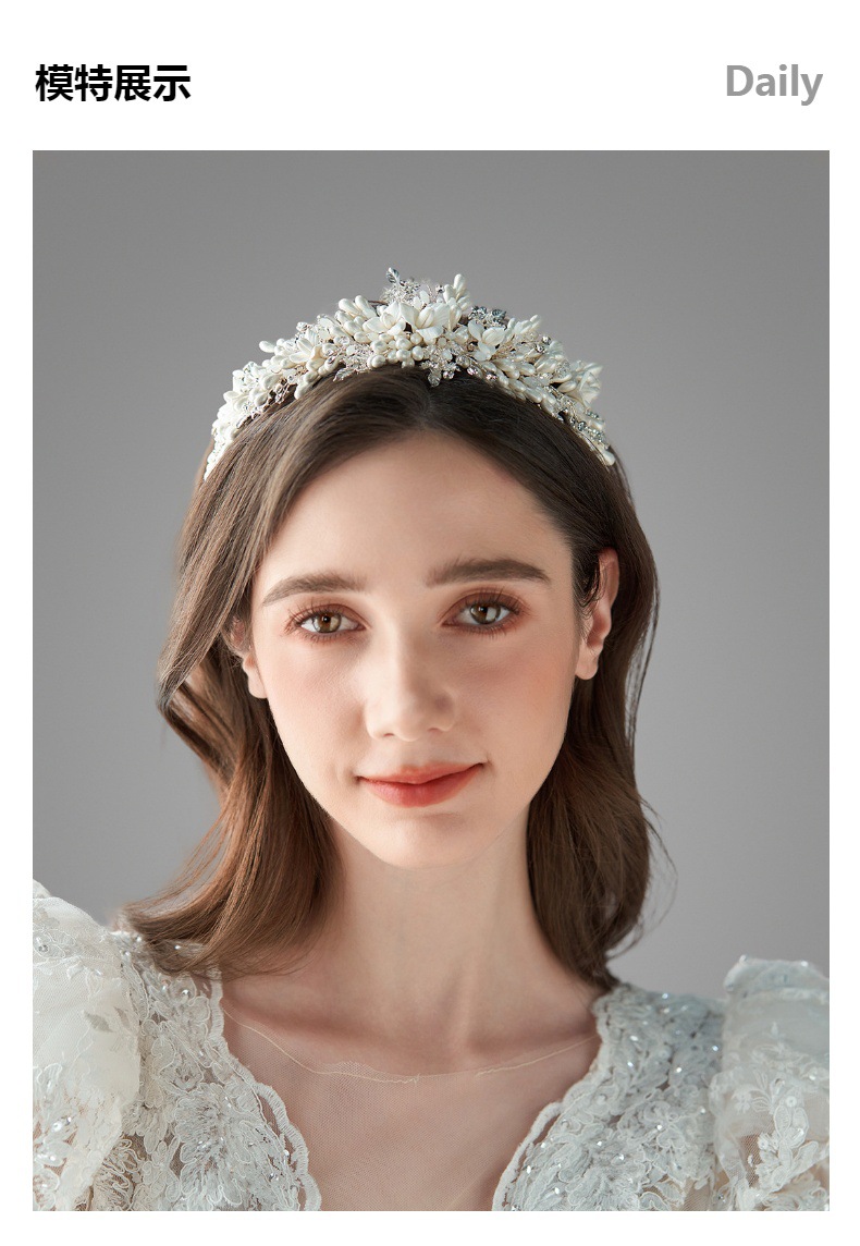 新娘头饰奢华优雅皇冠石膏花蕊公主王冠生日订婚礼服婚礼跟妆发饰