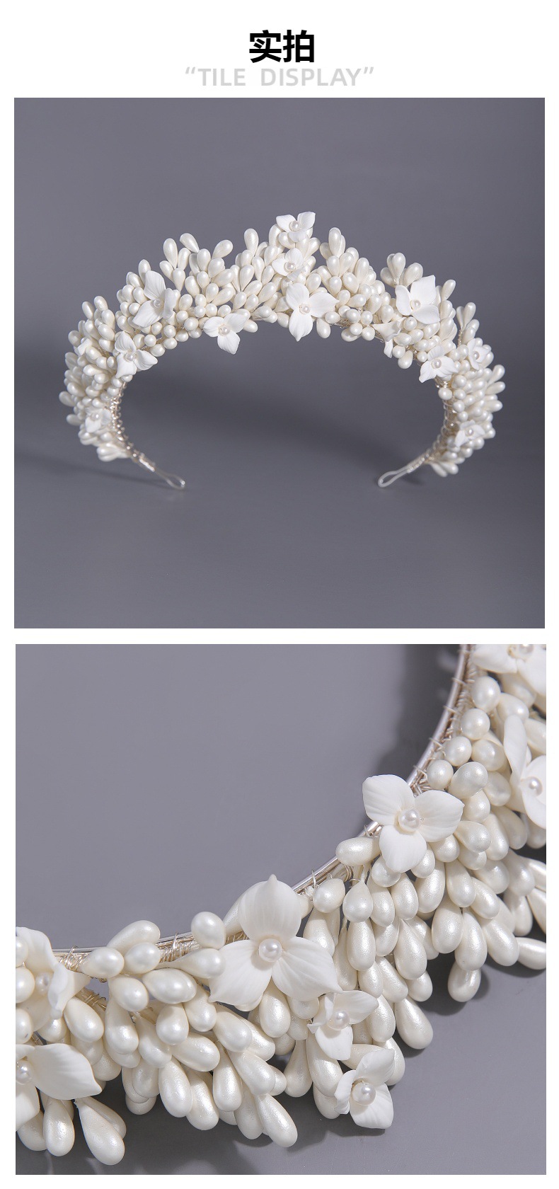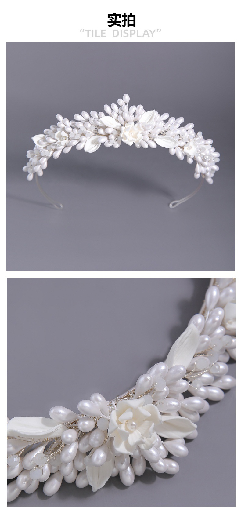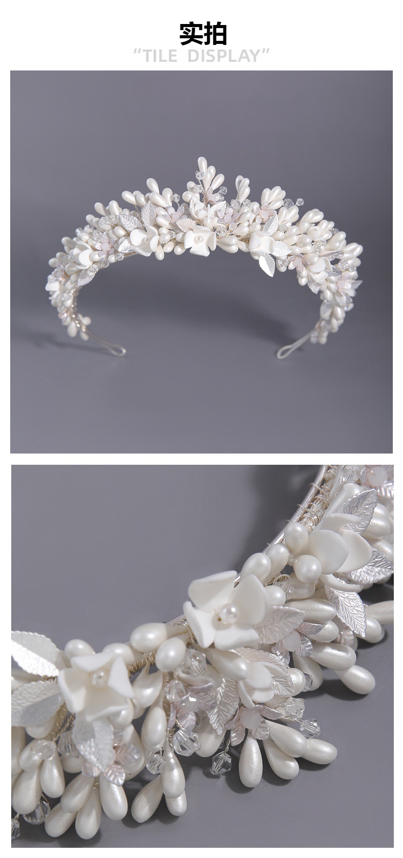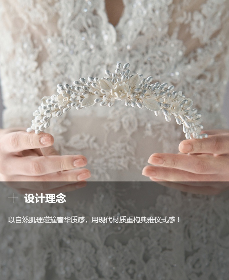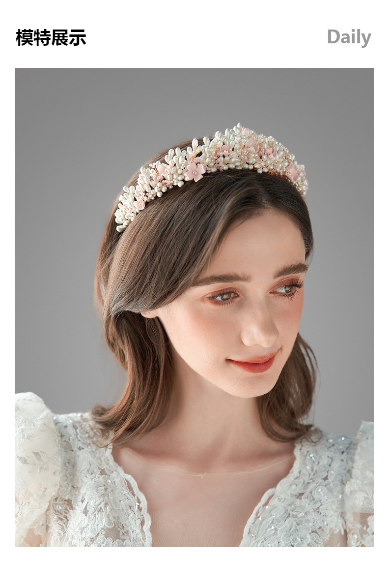 新娘头饰奢华优雅皇冠石膏花蕊公主王冠生日订婚礼服婚礼跟妆发饰