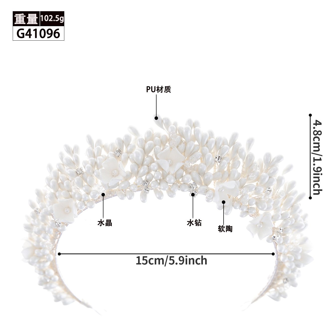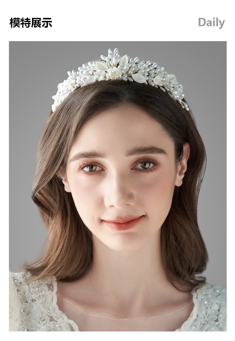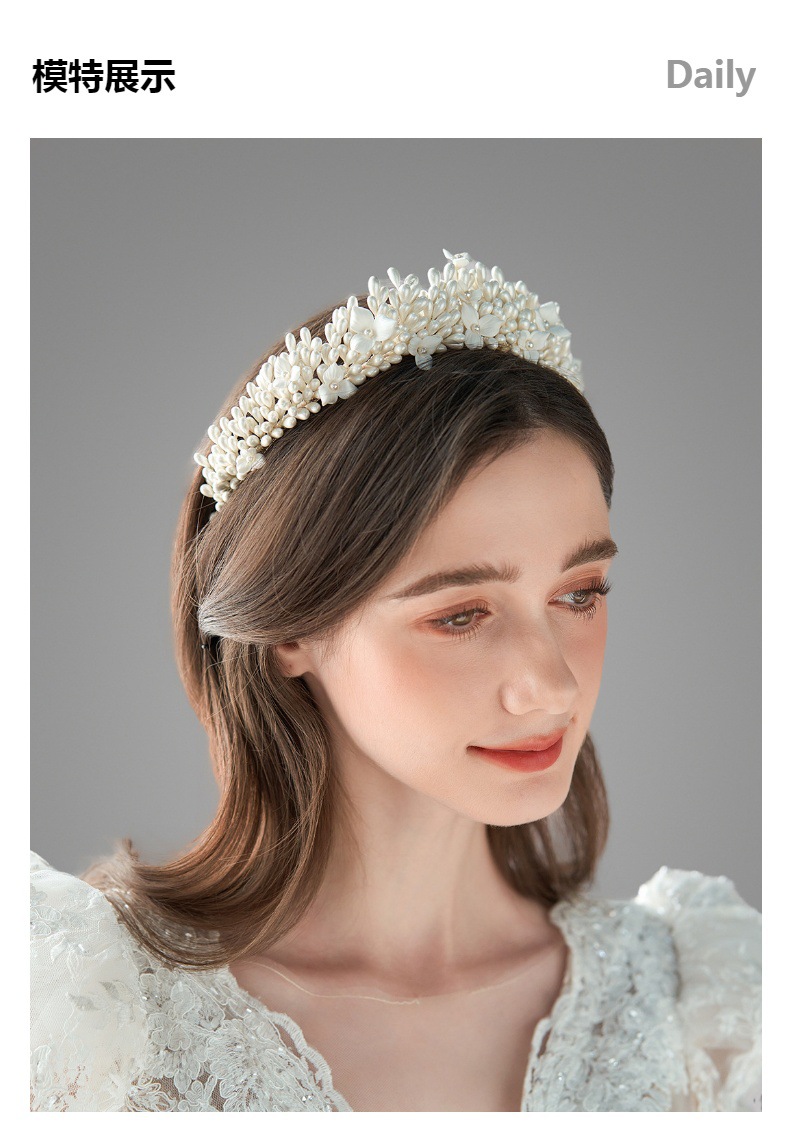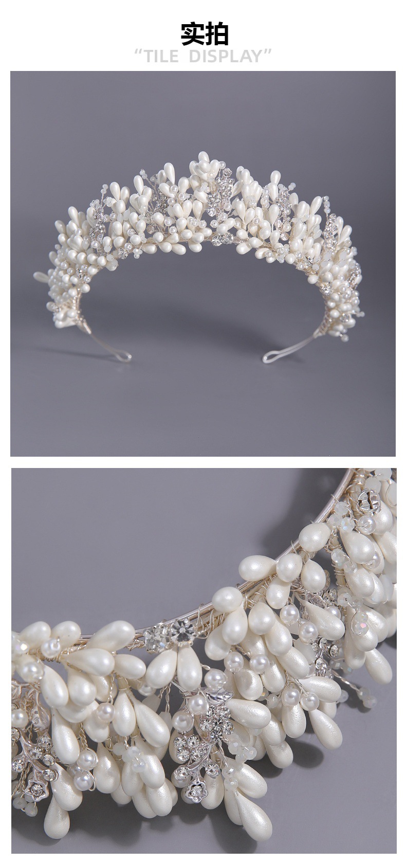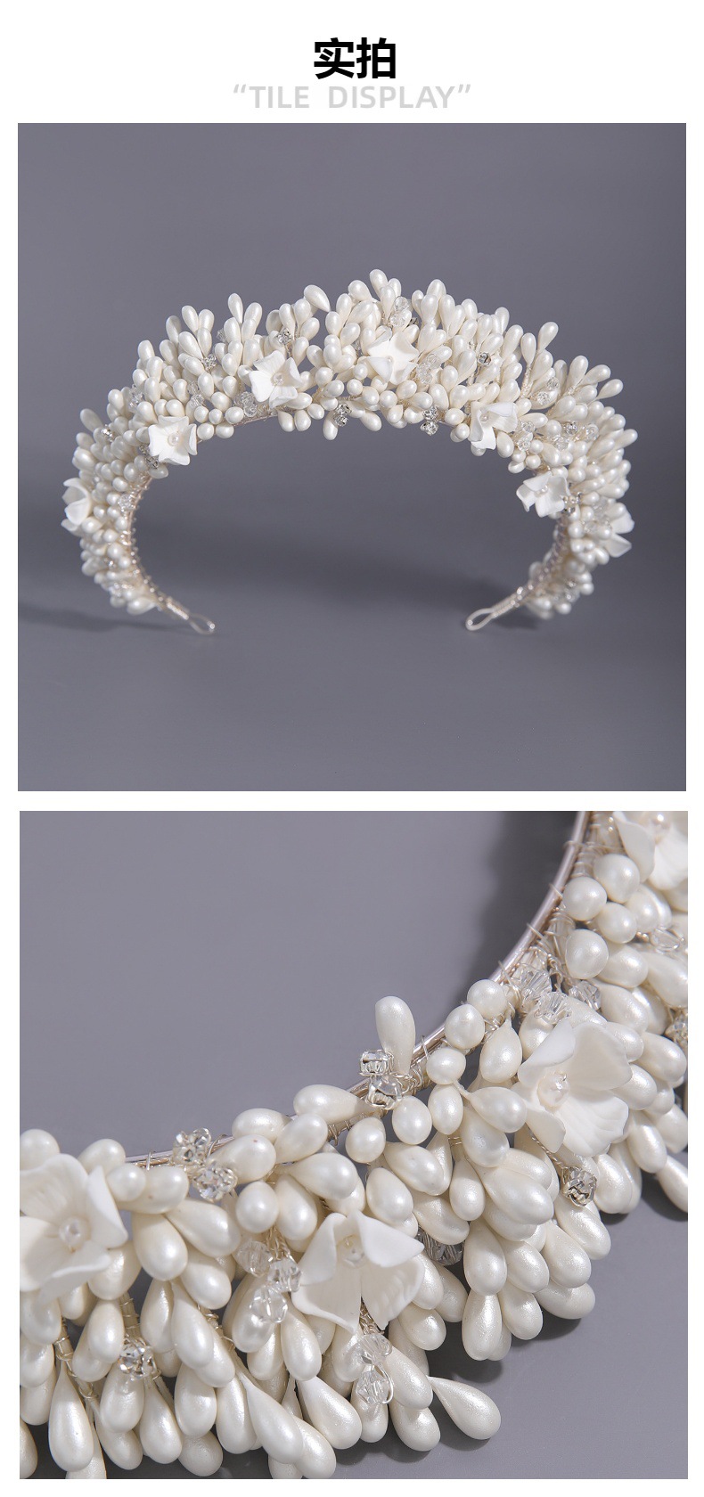 新娘头饰奢华优雅皇冠石膏花蕊公主王冠生日订婚礼服婚礼跟妆发饰