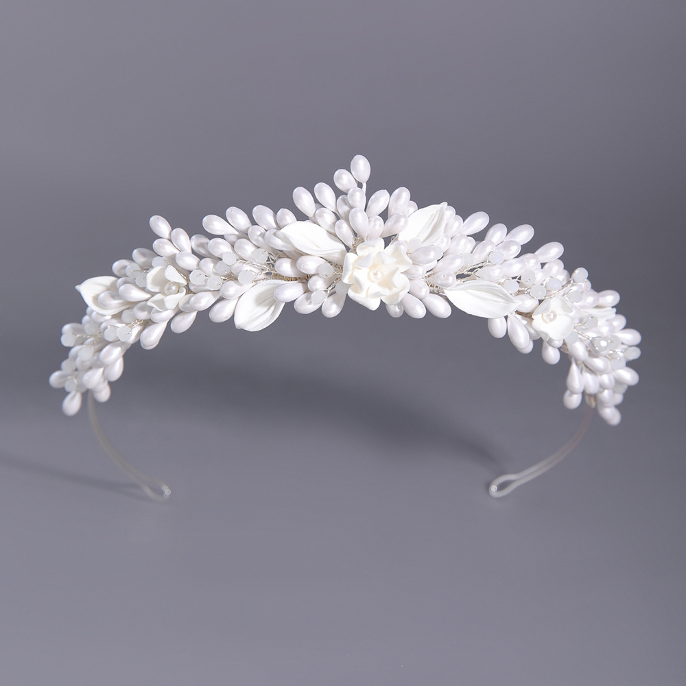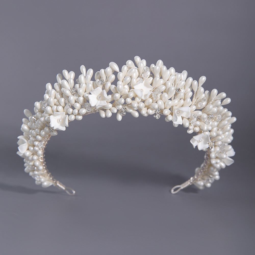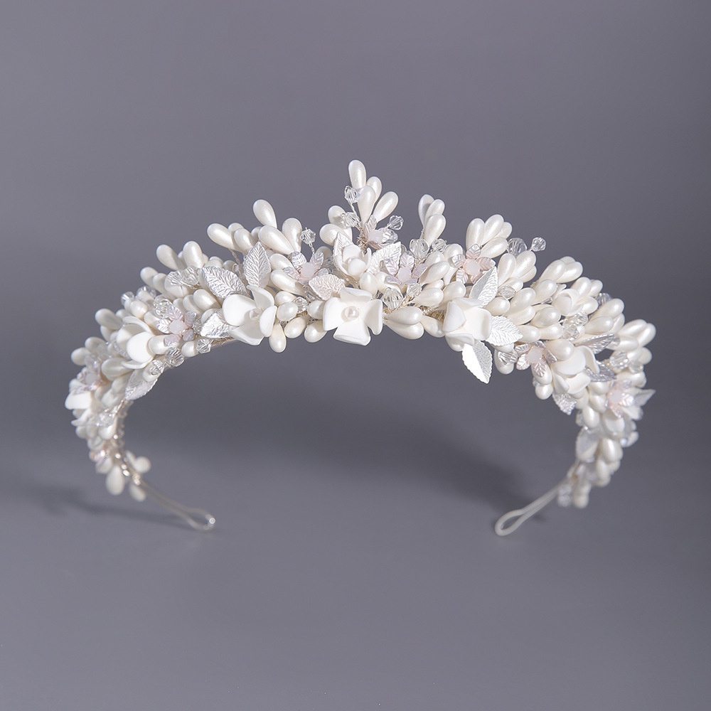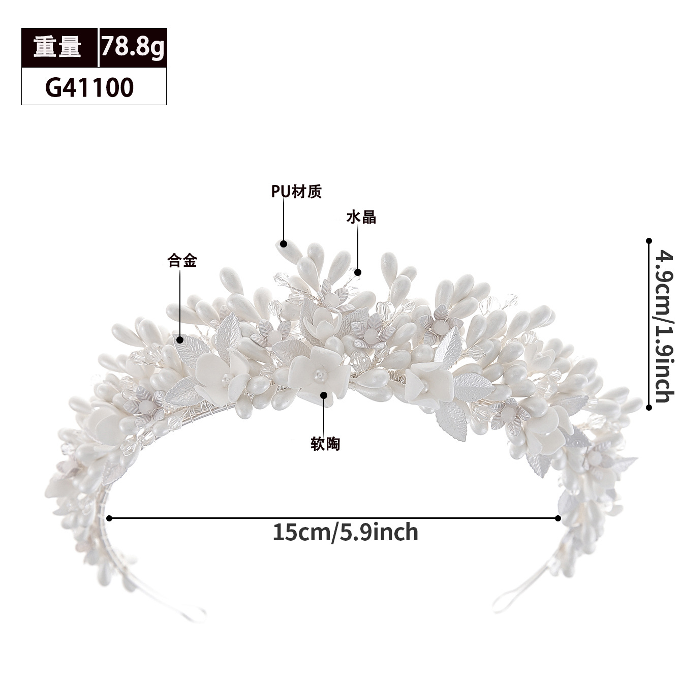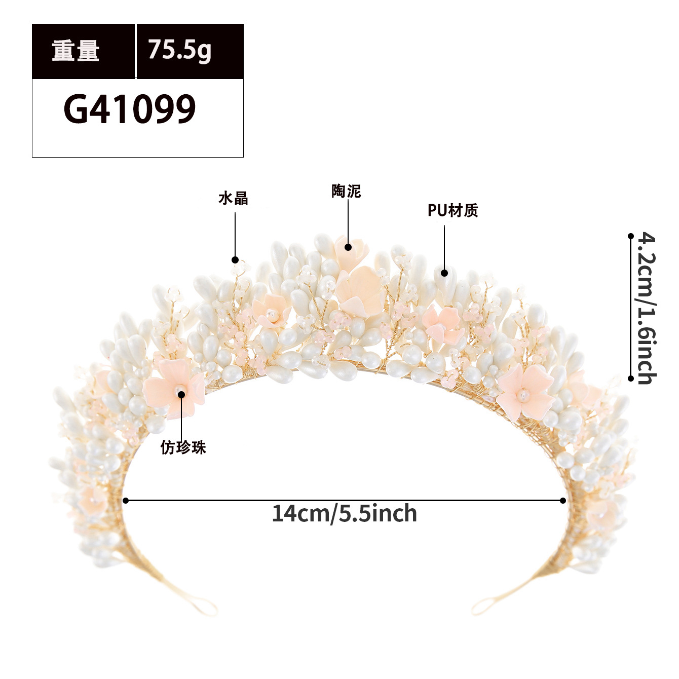 新娘头饰奢华优雅皇冠石膏花蕊公主王冠生日订婚礼服婚礼跟妆发饰