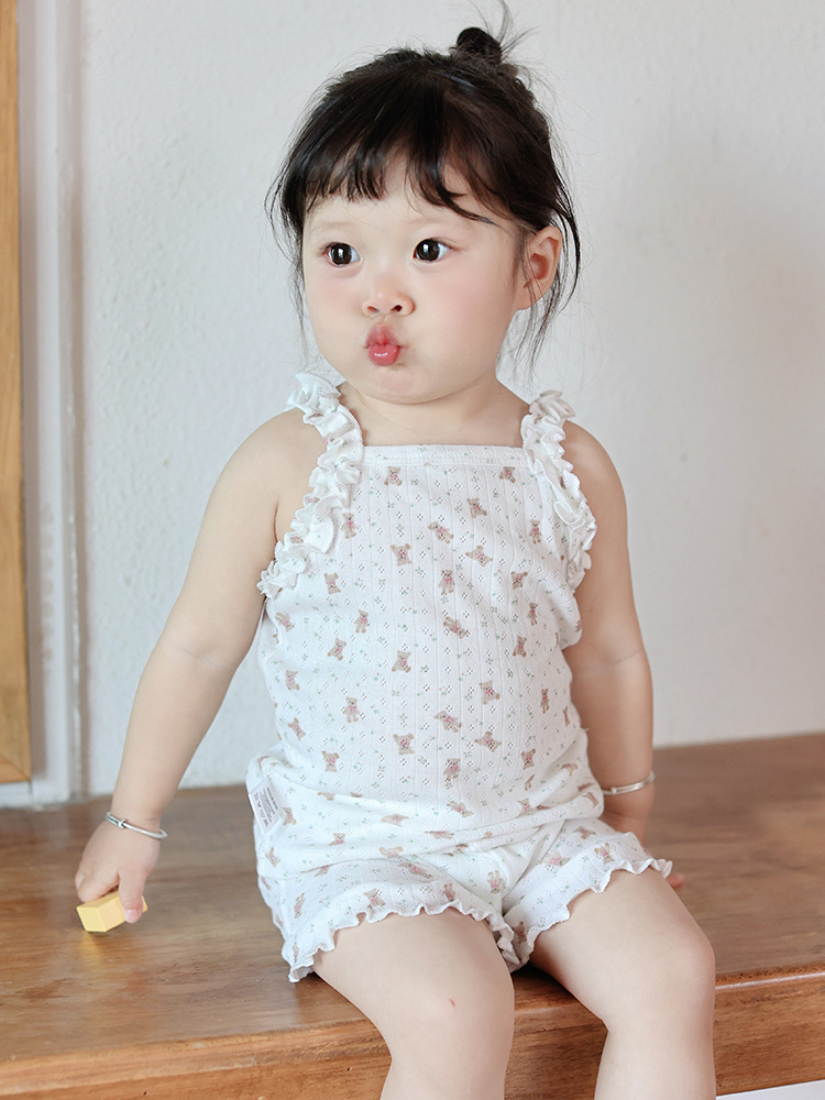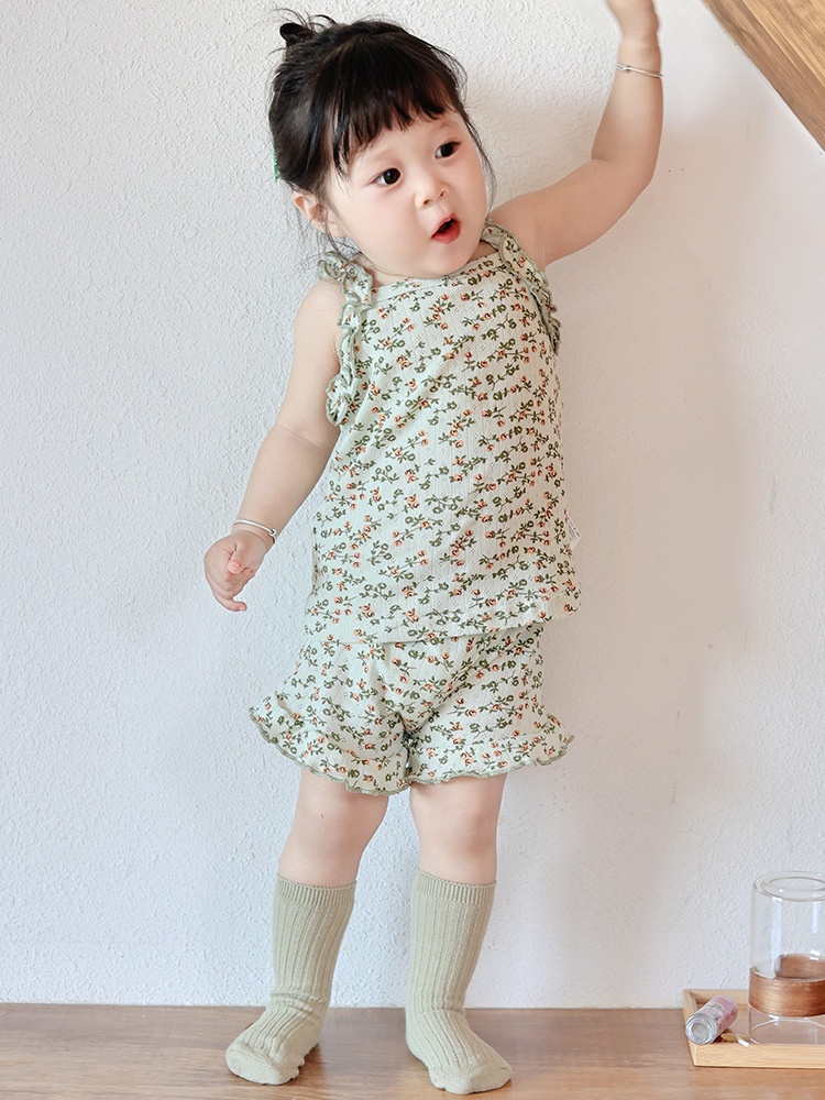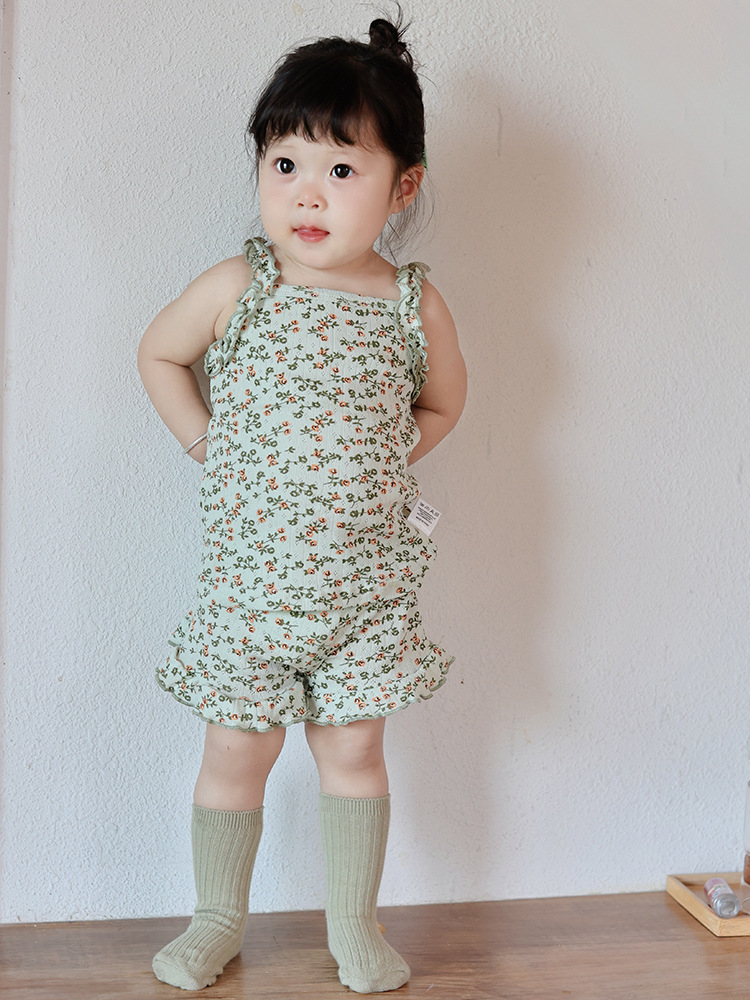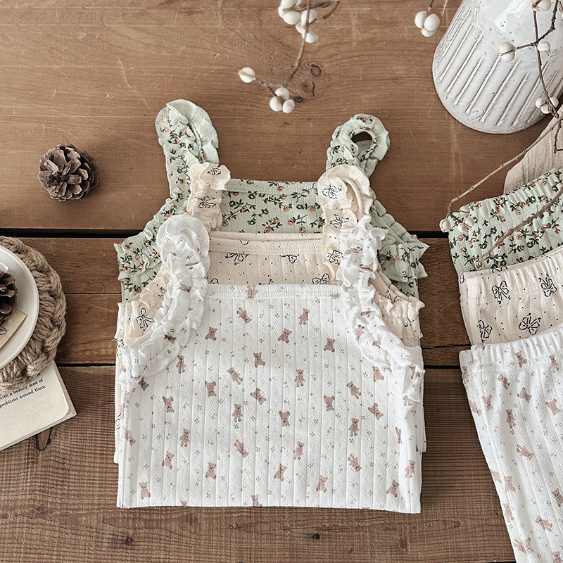 橡果童装女童套装2026夏款女童夏装纯棉花边甜美儿童套装女童衣服