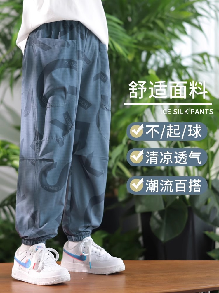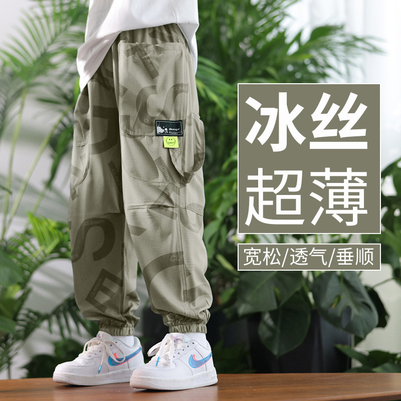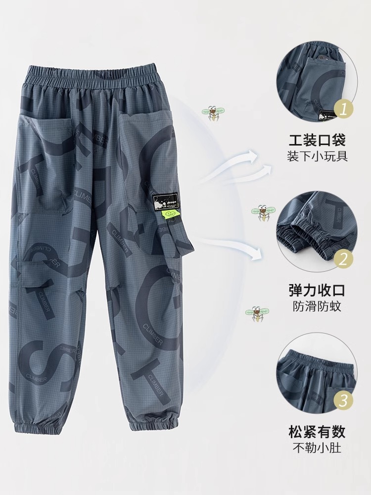 男童休闲裤子夏季2025新款儿童冰丝速干防蚊裤大童工装运动裤夏装